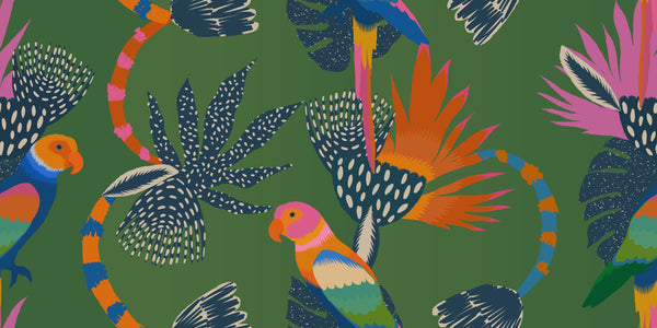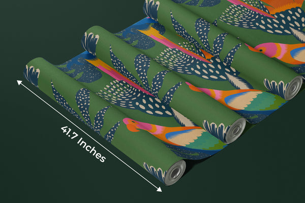 Exotic Abstract Wallpaper, Parrots Mural, Oversized Custom Size Wall Art, Non-Woven, Non-Adhesive, Modern Wall Paper, Removable