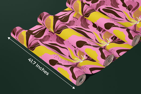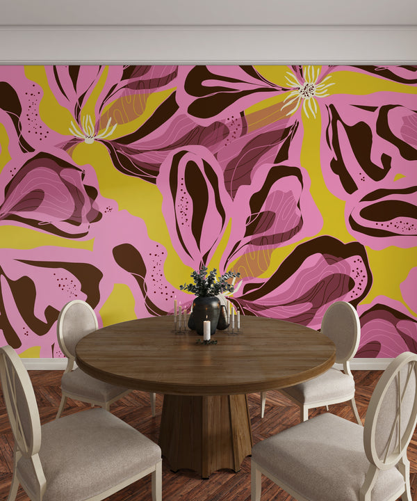 Abstract Pink Flowers Wallpaper, Seamless Pattern Mural, Oversized Custom Size Wall Art, Non-Woven, Non-Adhesive, Modern Wall Paper, Removable