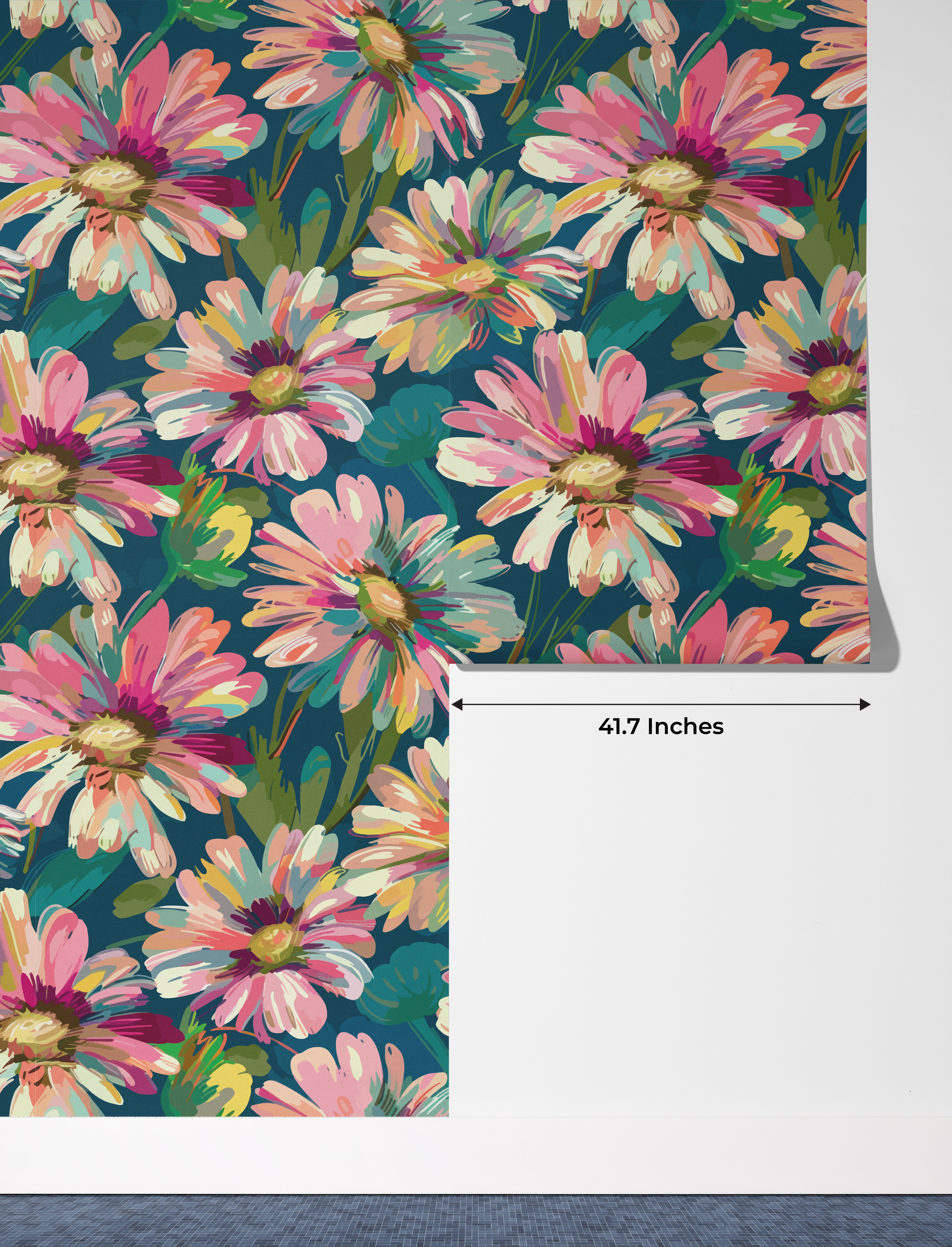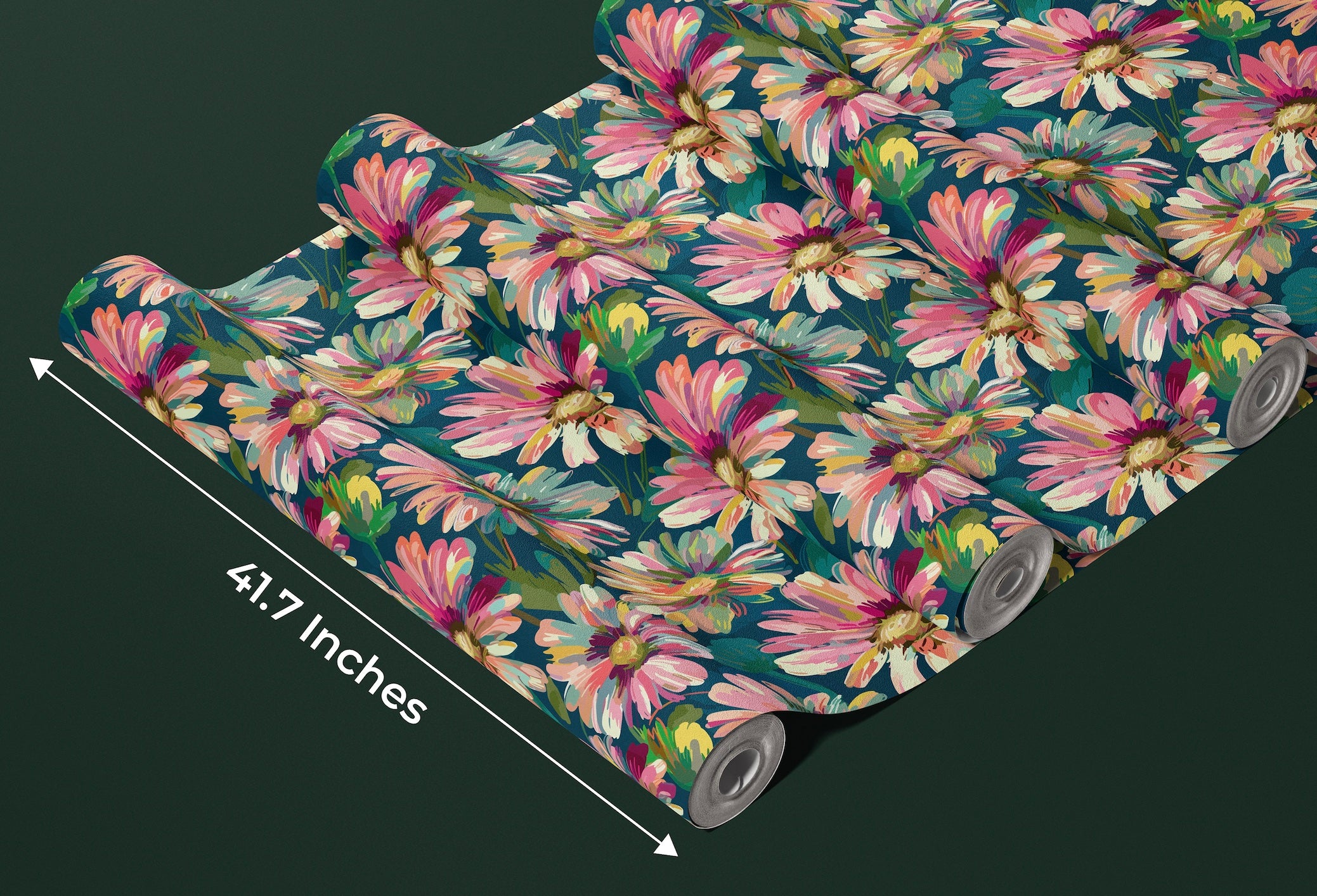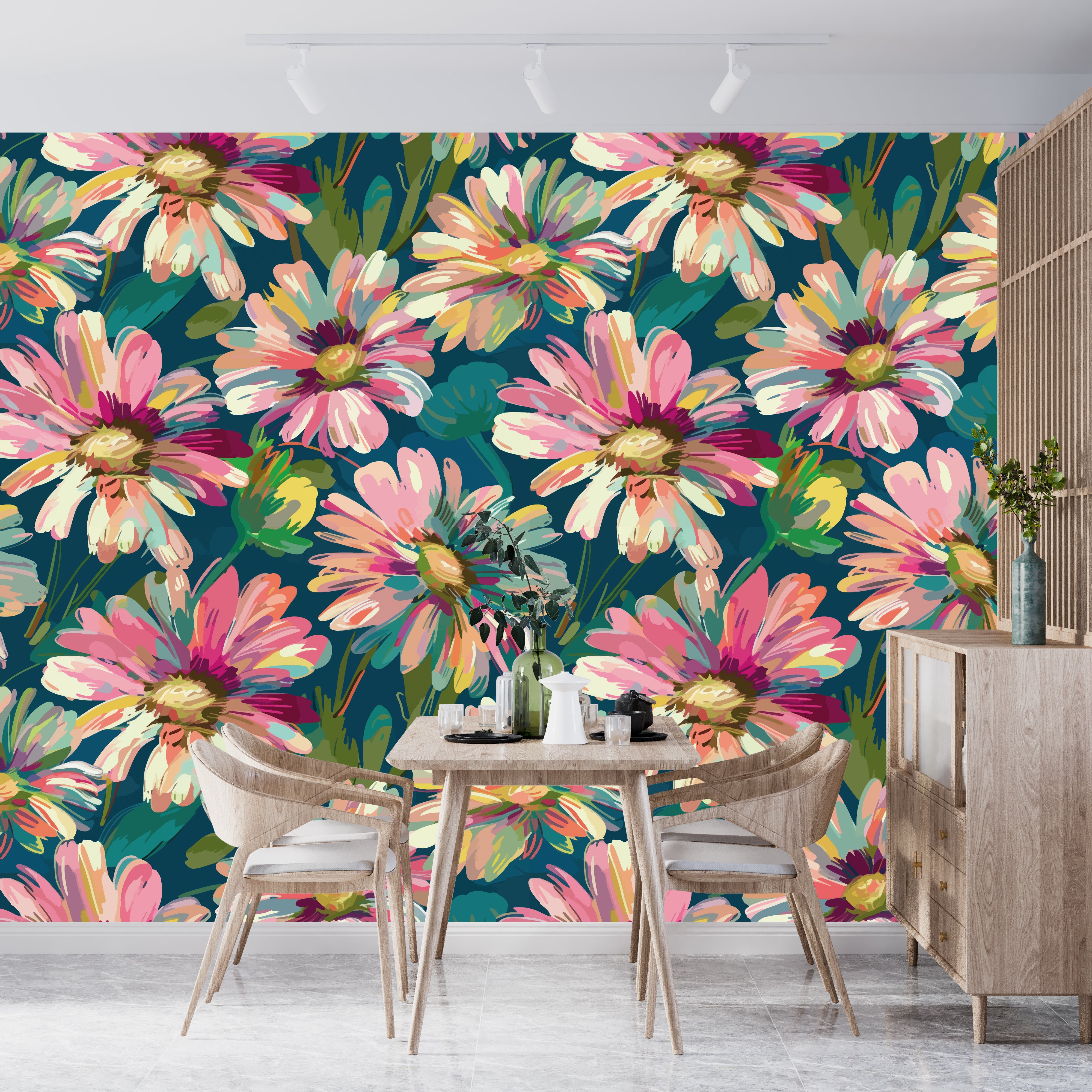 Abstract Flowers Blooming Wallpaper, Seamless Pattern Mural, Oversized Custom Size Wall Art, Non-Woven, Non-Adhesive, Modern Wall Paper, Removable