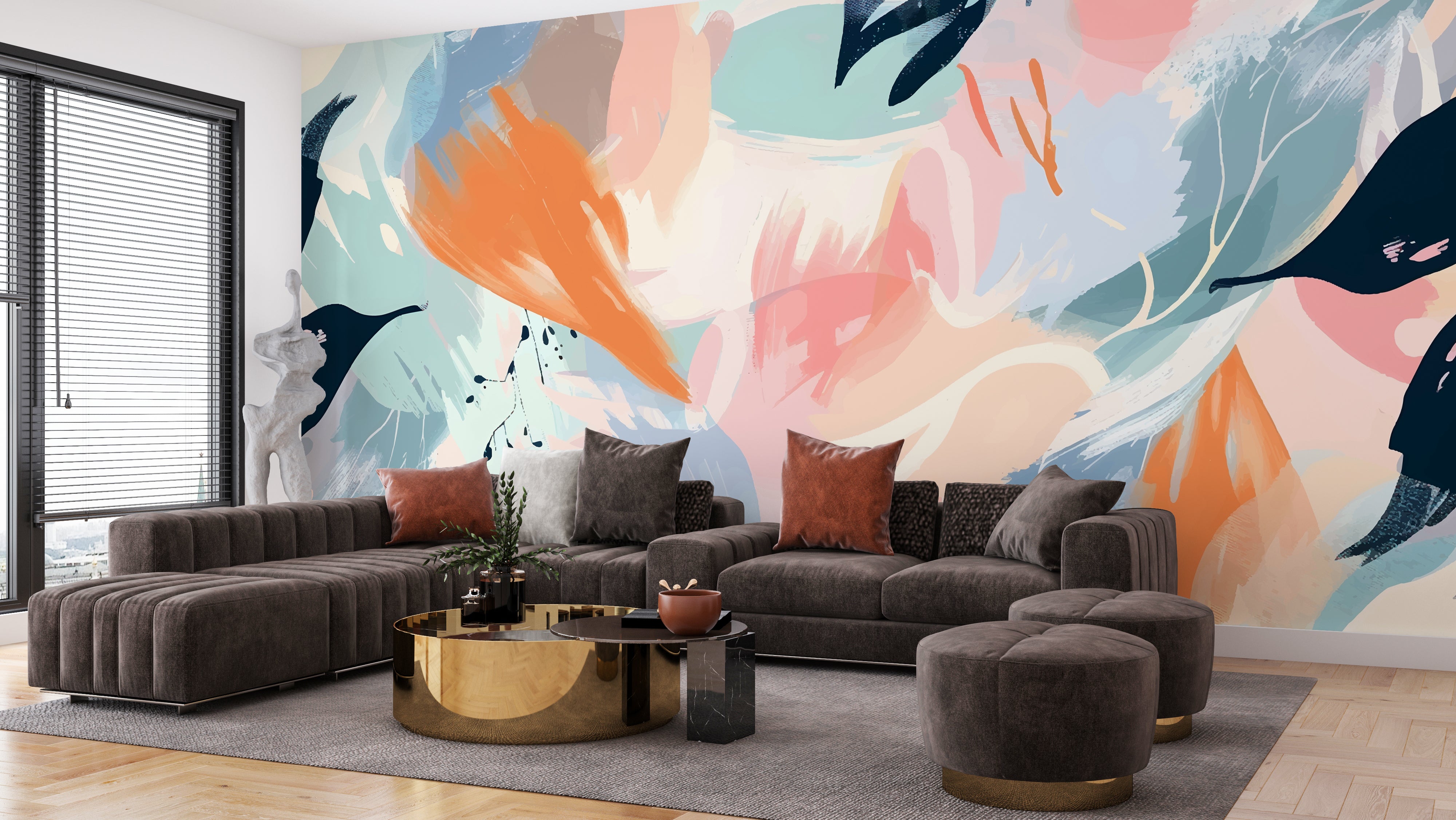 Pastel Abstract Summer Wallpaper, Seamless Pattern Mural, Oversized Custom Size Wall Art, Non-Woven, Non-Adhesive, Modern Wall Paper, Removable