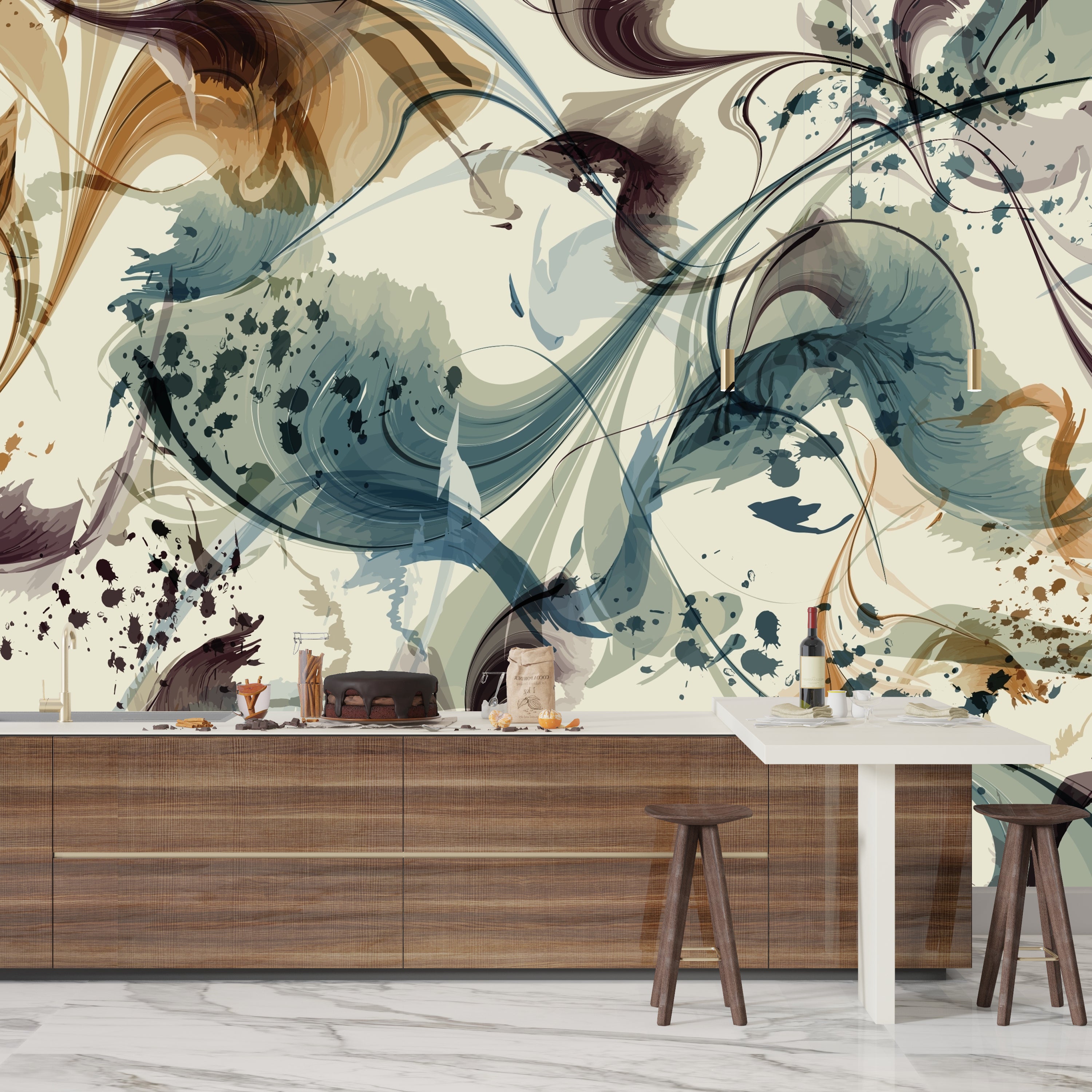 Liquid Watercolor Wallpaper, Abstract Flow Mural, Oversized Custom Size Wall Art, Non-Woven, Non-Adhesive, Modern Wall Paper, Removable