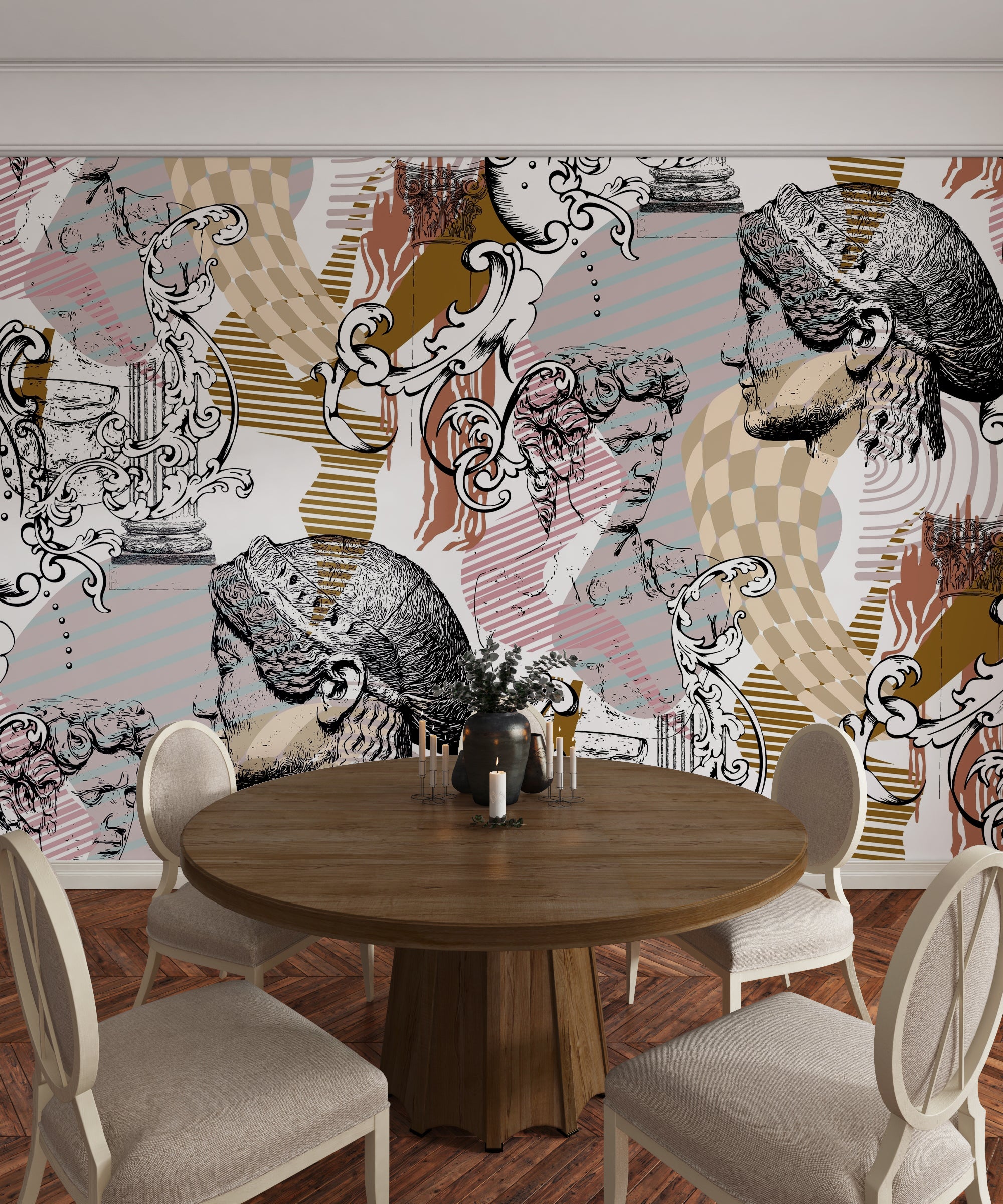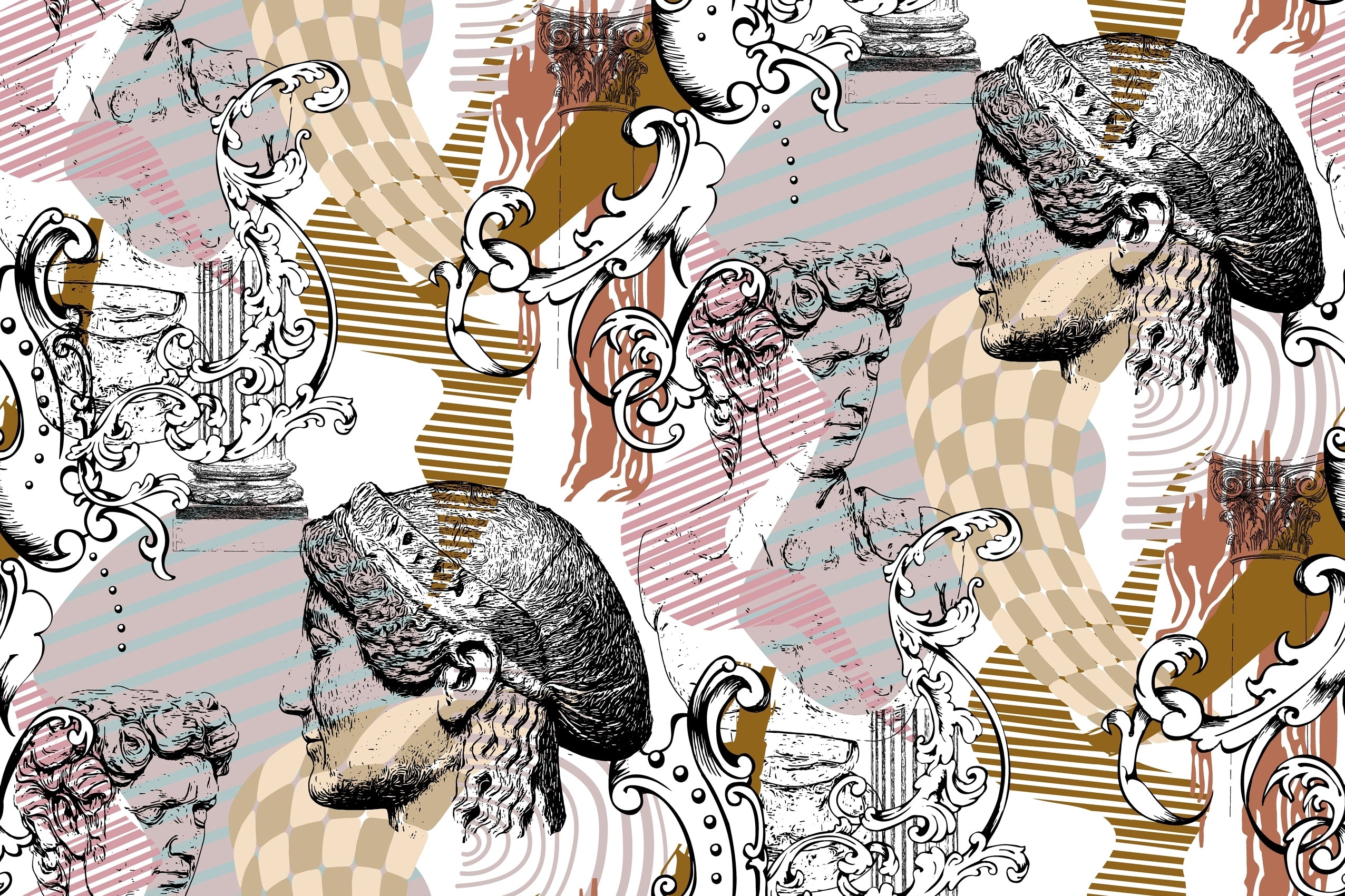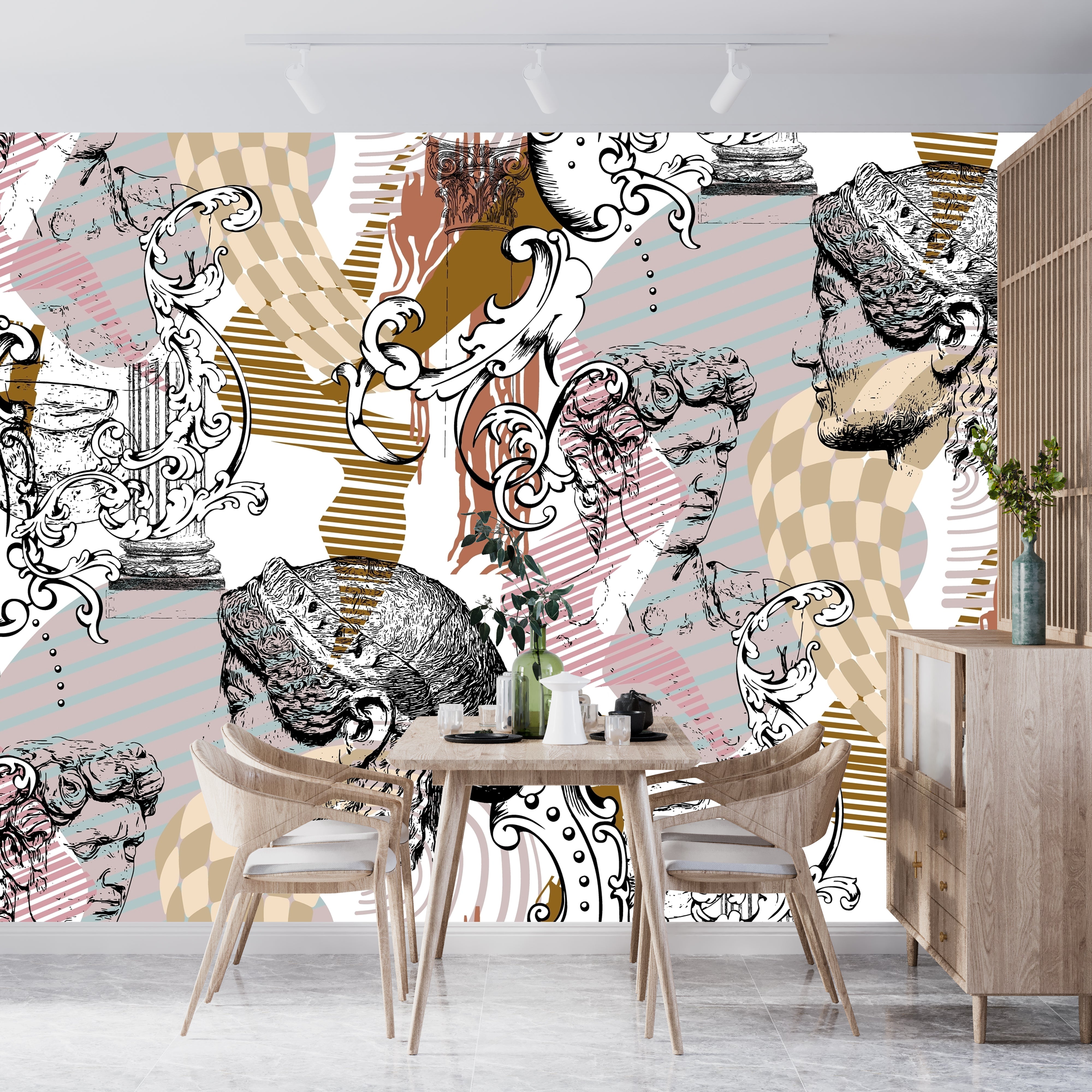 Abstract Sculpture Wallpaper, Seamless Pattern Mural, Oversized Custom Size Wall Art, Non-Woven, Non-Adhesive, Modern Wall Paper, Removable