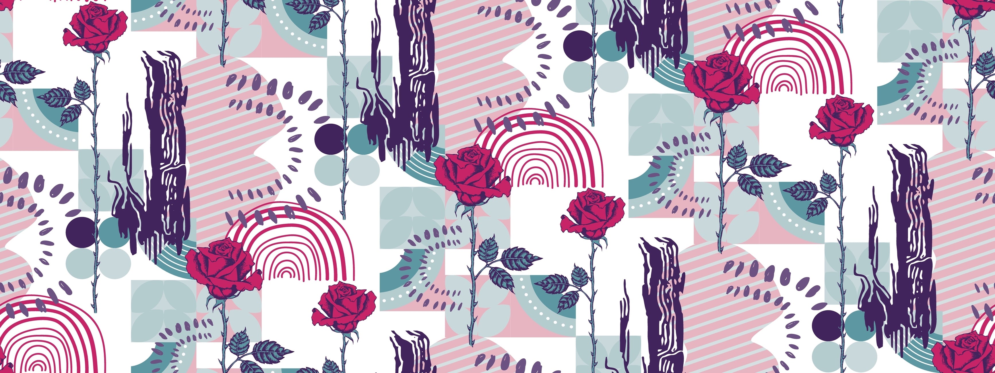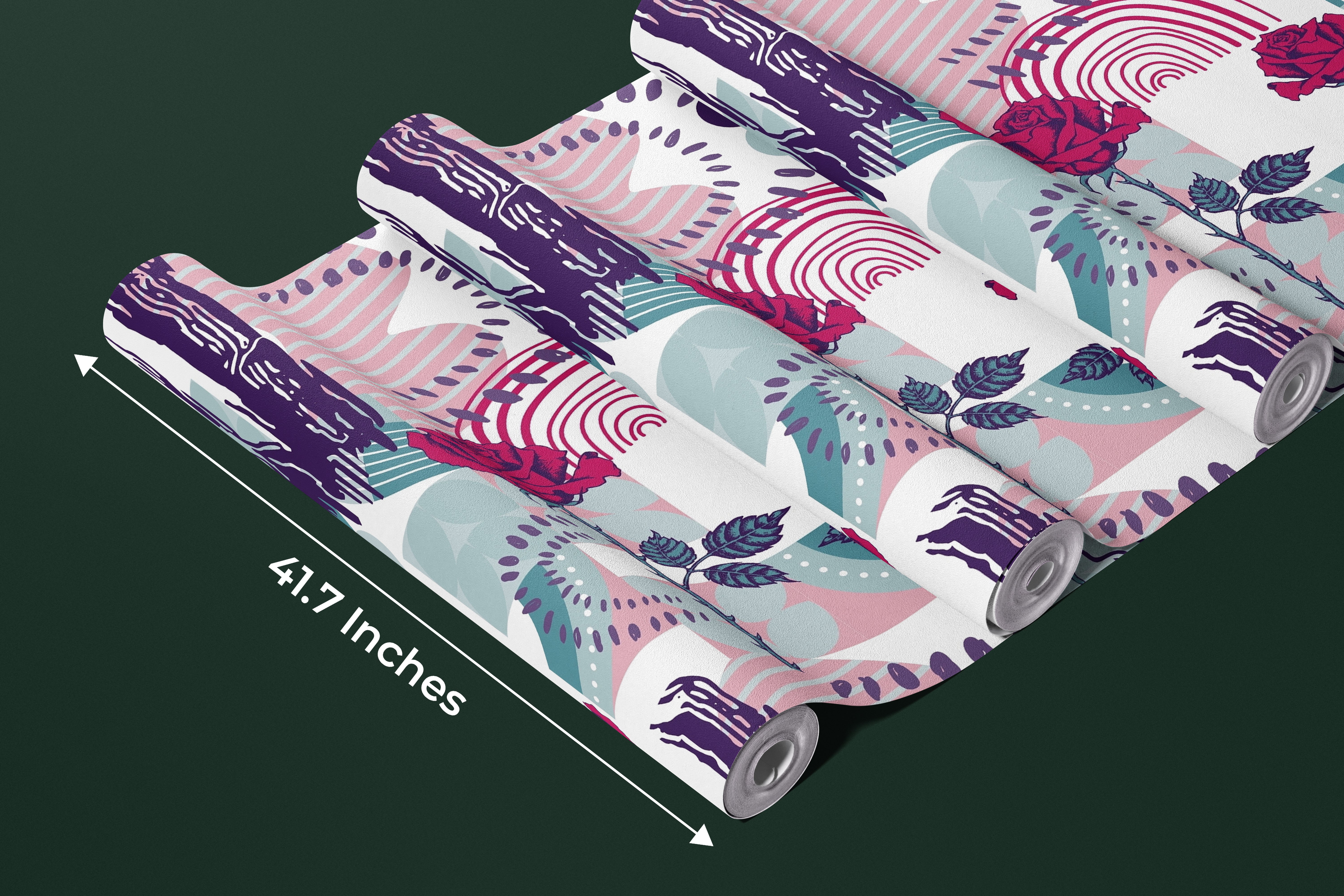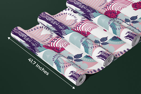 Rose and Abstract Figures Wallpaper, Seamless Pattern Mural, Oversized Custom Size Wall Art, Non-Woven, Non-Adhesive, Modern Wall Paper, Removable
