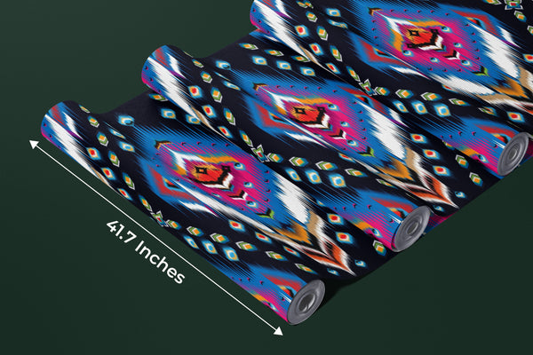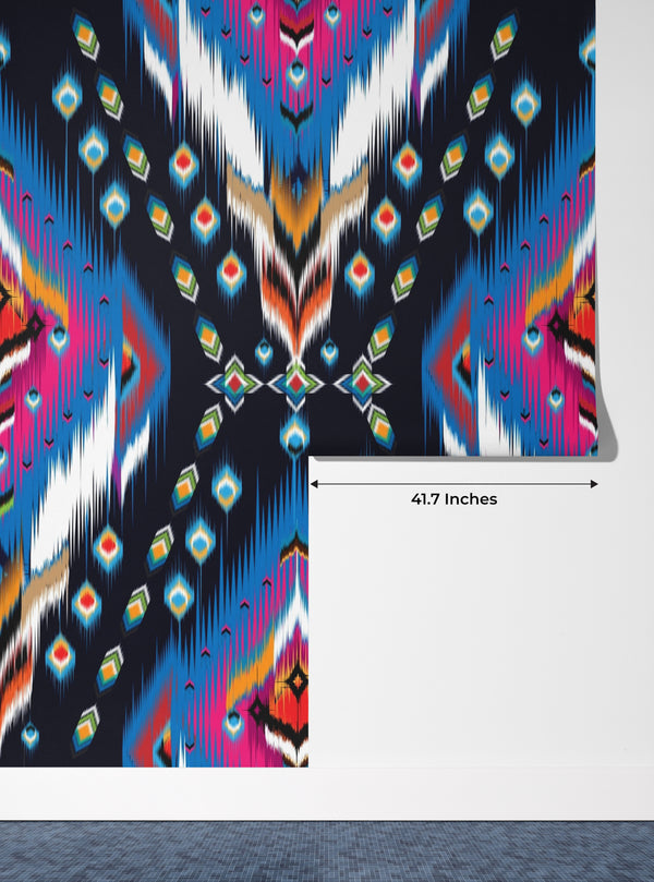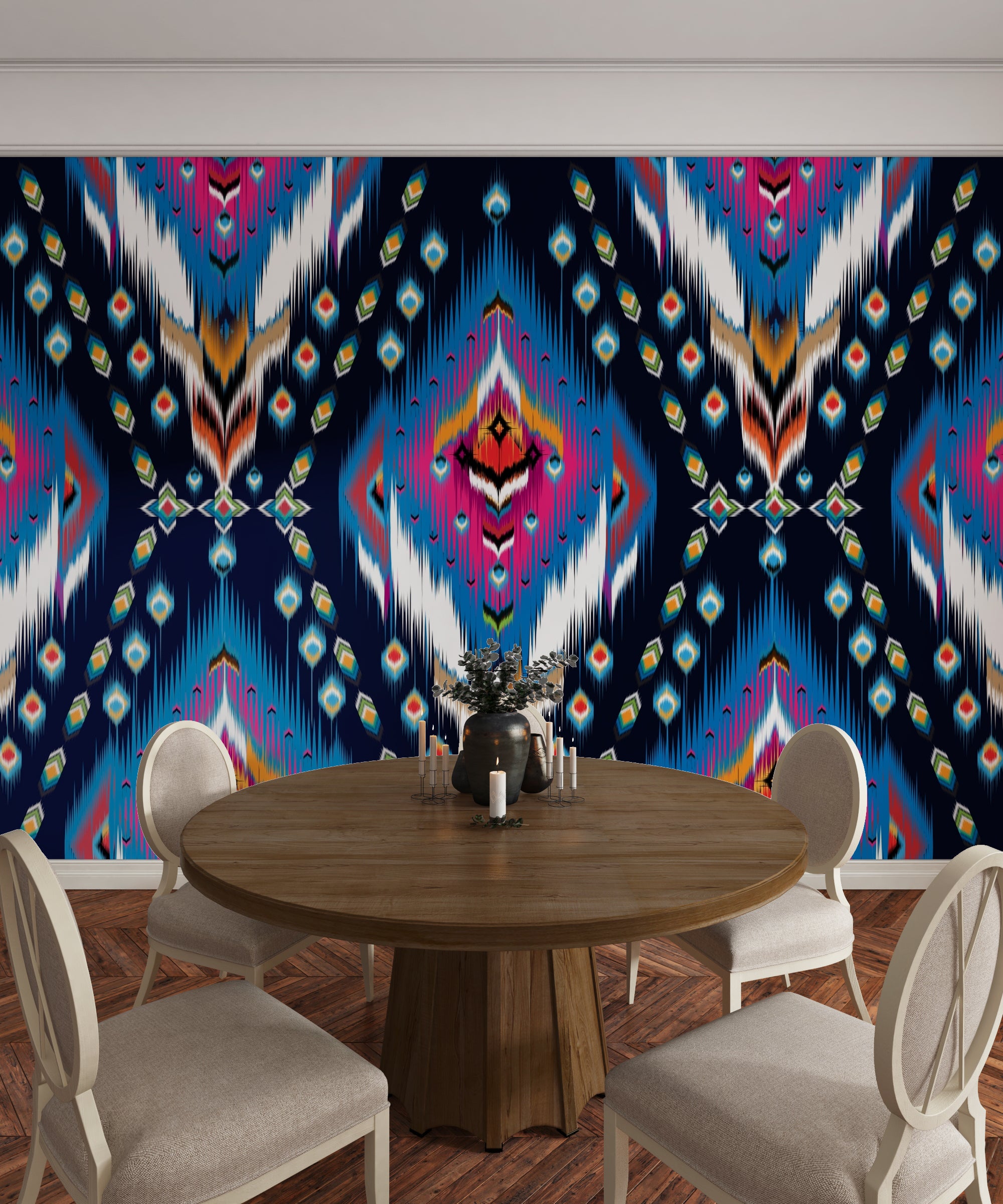 Ikat Ethnic Wallpaper, Abstract Tribal Mural, Oversized Custom Size Wall Art, Non-Woven, Non-Adhesive, Modern Wall Paper, Removable