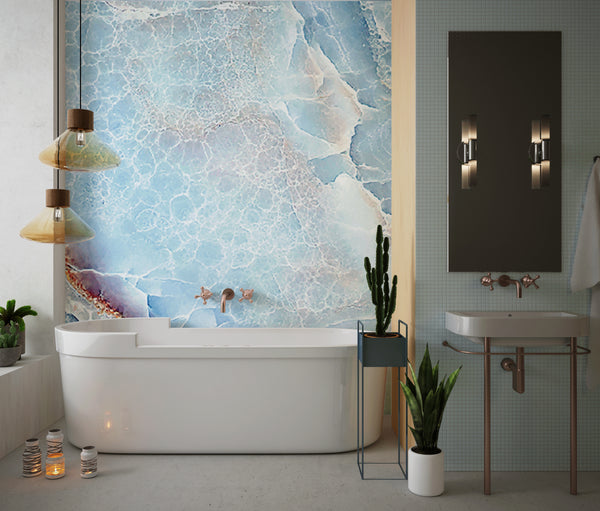 Light Blue Marble Wallpaper, Abstract Mural, Oversized Custom Size Wall Art, Non-Woven, Non-Adhesive, Modern Wall Paper, Removable