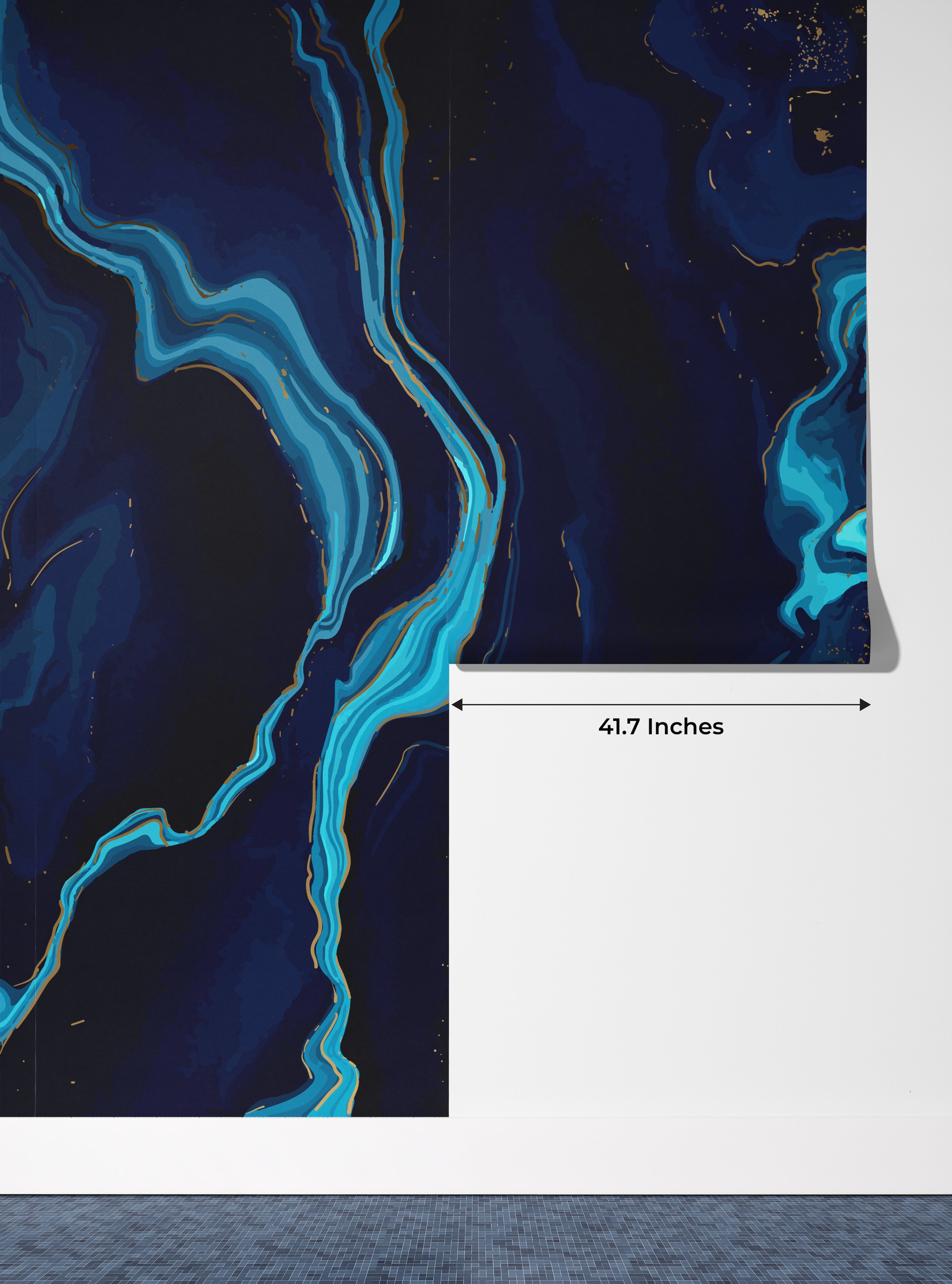 Dark Blue Marble Wallpaper, Gold Abstract Mural, Oversized Custom Size Wall Art, Non-Woven, Non-Adhesive, Modern Wall Paper, Removable