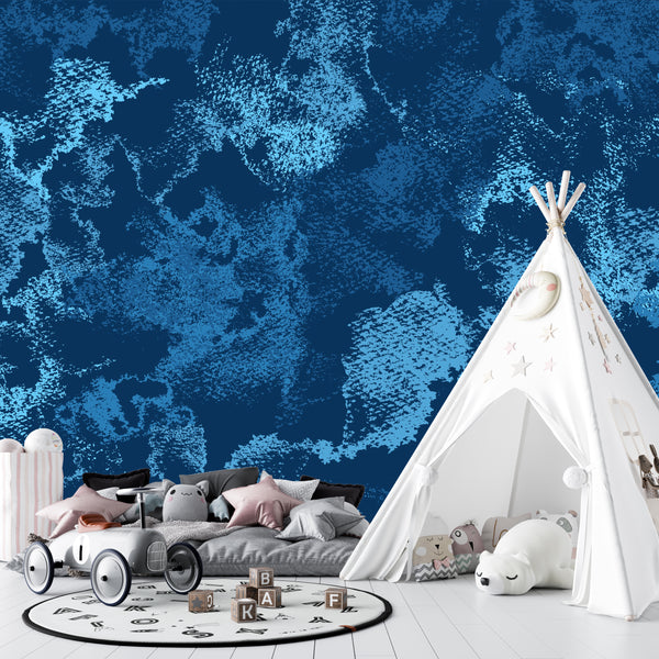 Dirty Blue Wallpaper, Navy Pattern Mural, Oversized Custom Size Wall Art, Non-Woven, Non-Adhesive, Modern Wall Paper, Removable