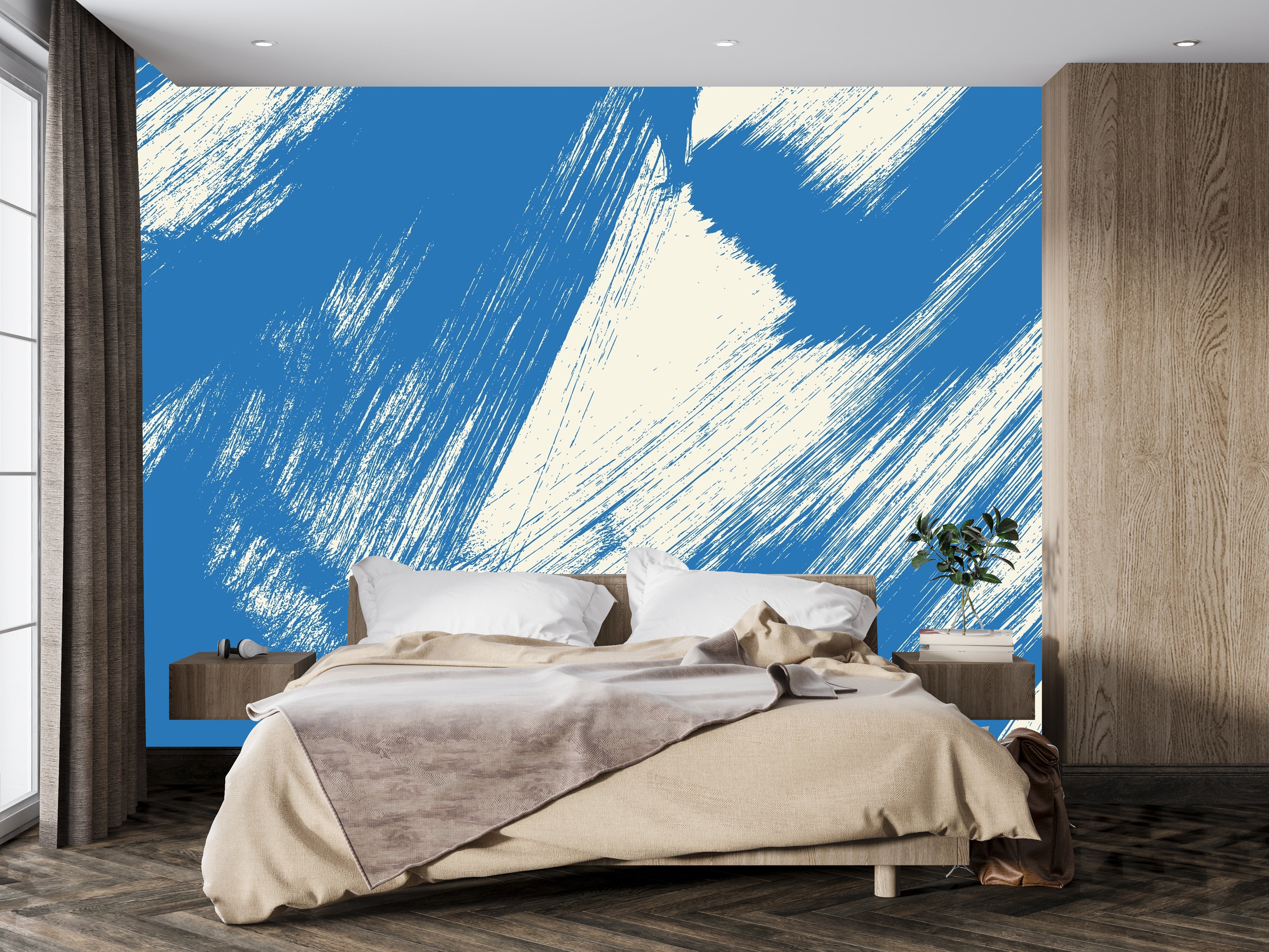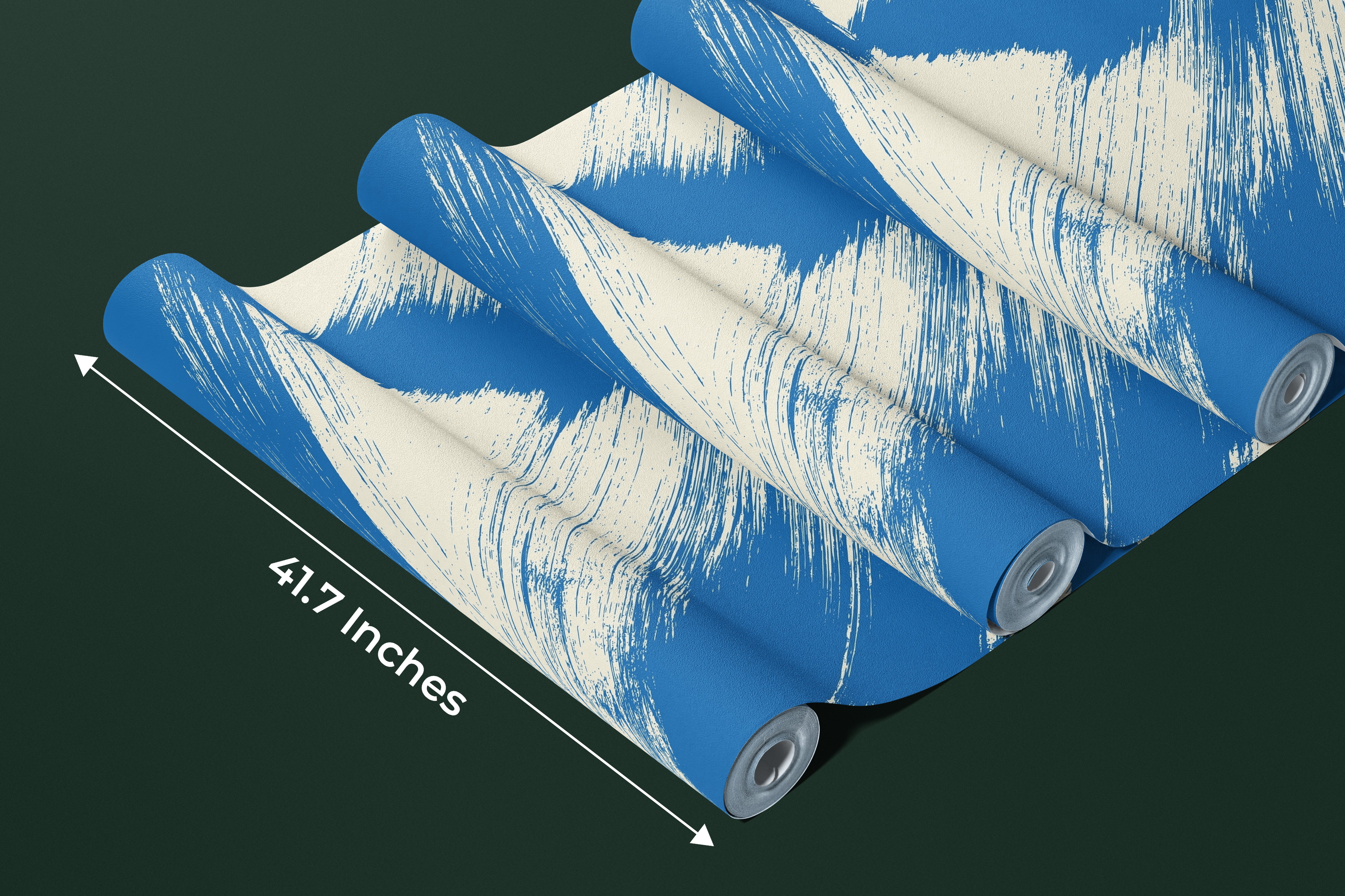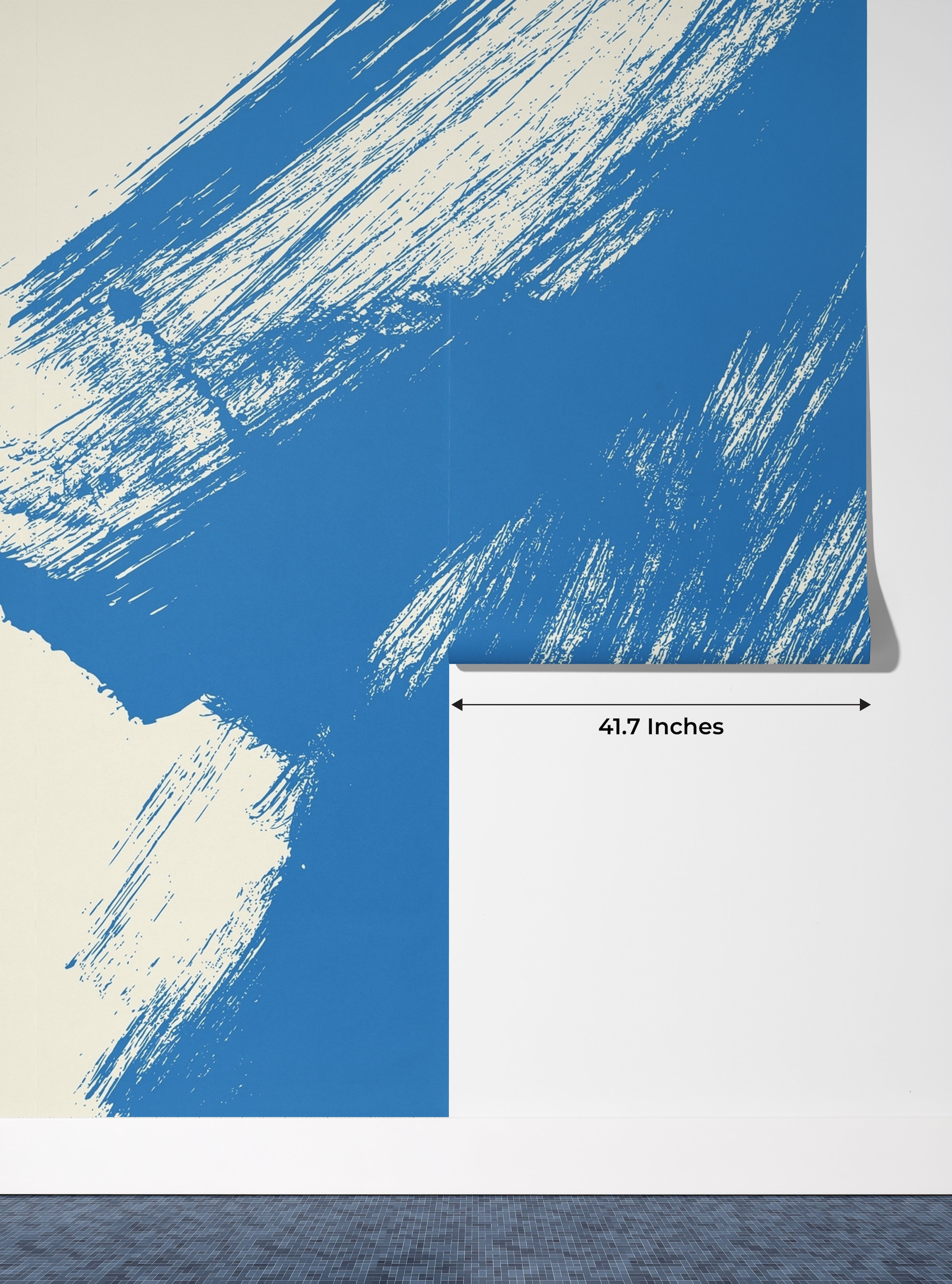 Grainy Blue Wallpaper, Brush Stroke Mural, Oversized Custom Size Wall Art, Non-Woven, Non-Adhesive, Modern Wall Paper, Removable