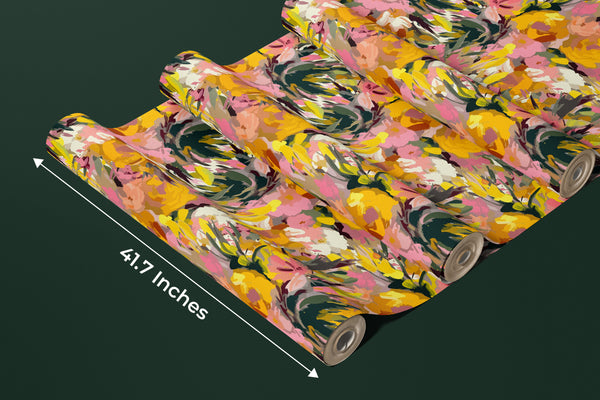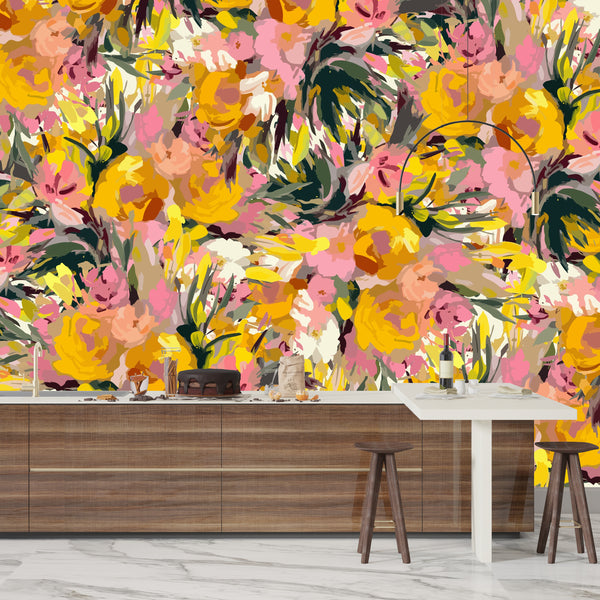 Oil Painted Floral Wallpaper, Seamless Pattern Mural, Oversized Custom Size Wall Art, Non-Woven, Non-Adhesive, Modern Wall Paper, Removable