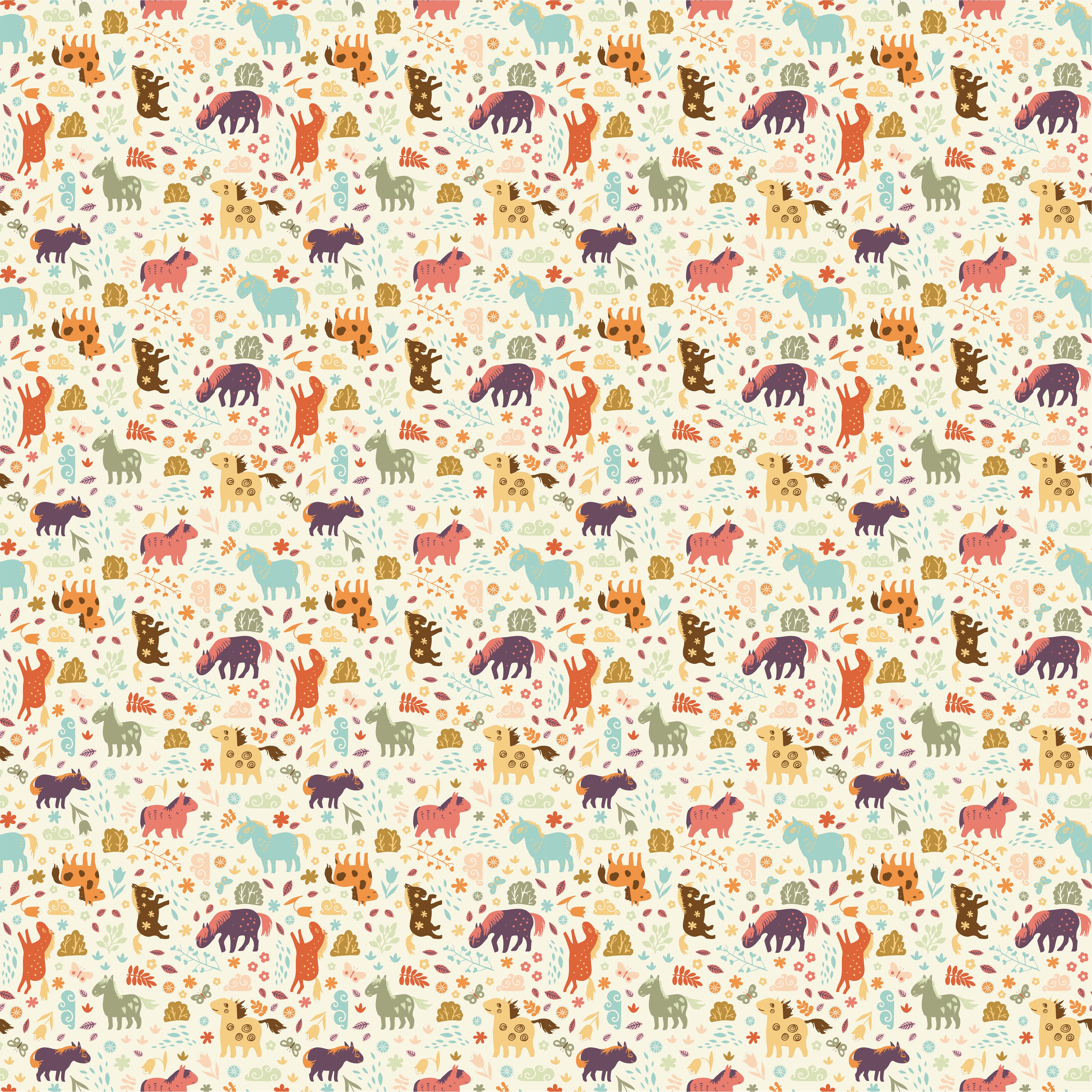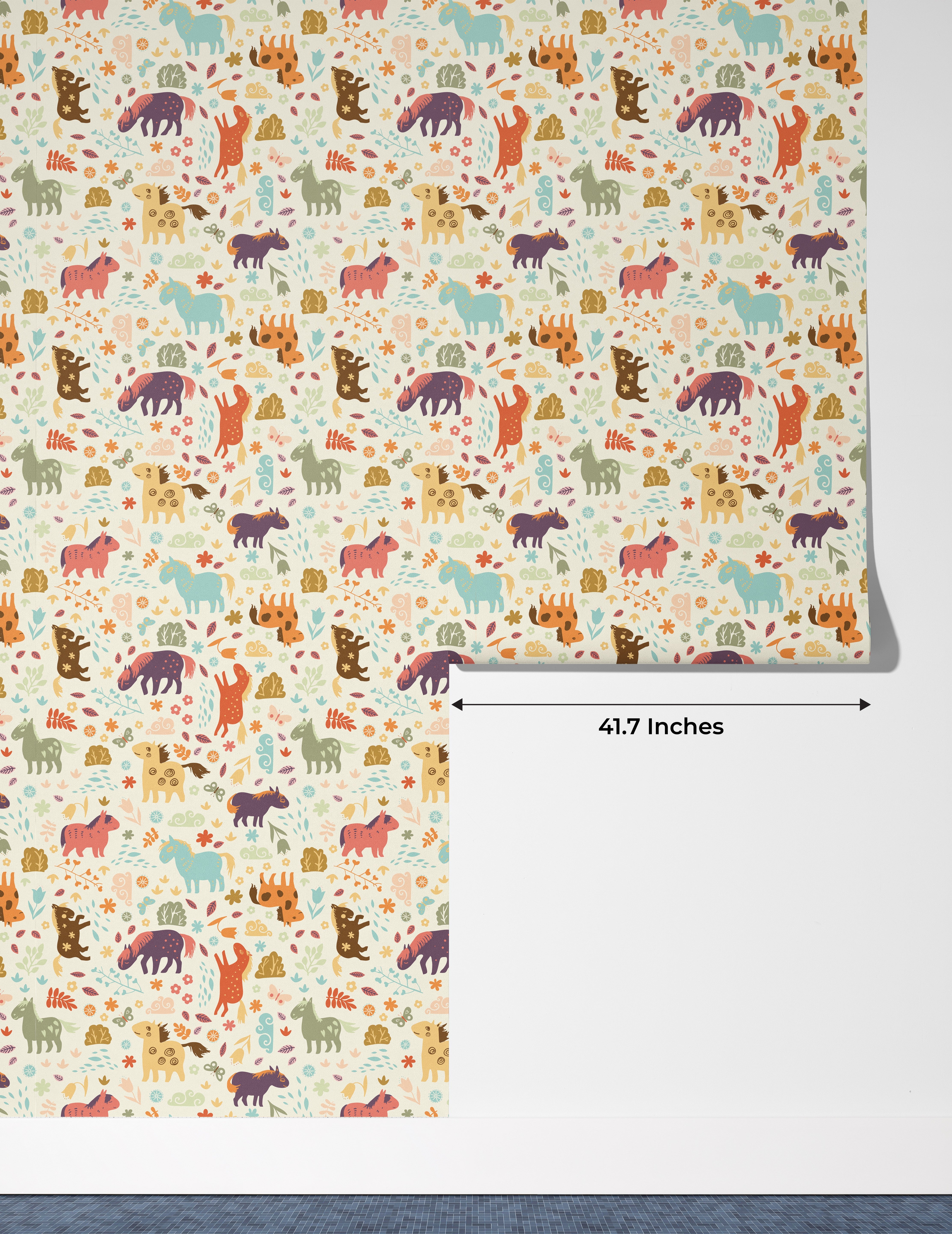 Horses, Clouds, Flowers Wallpaper, Sweet Seamless Pattern Mural, Oversized Custom Size Wall Art, Non-Woven, Non-Adhesive, Modern Wall Paper, Removable