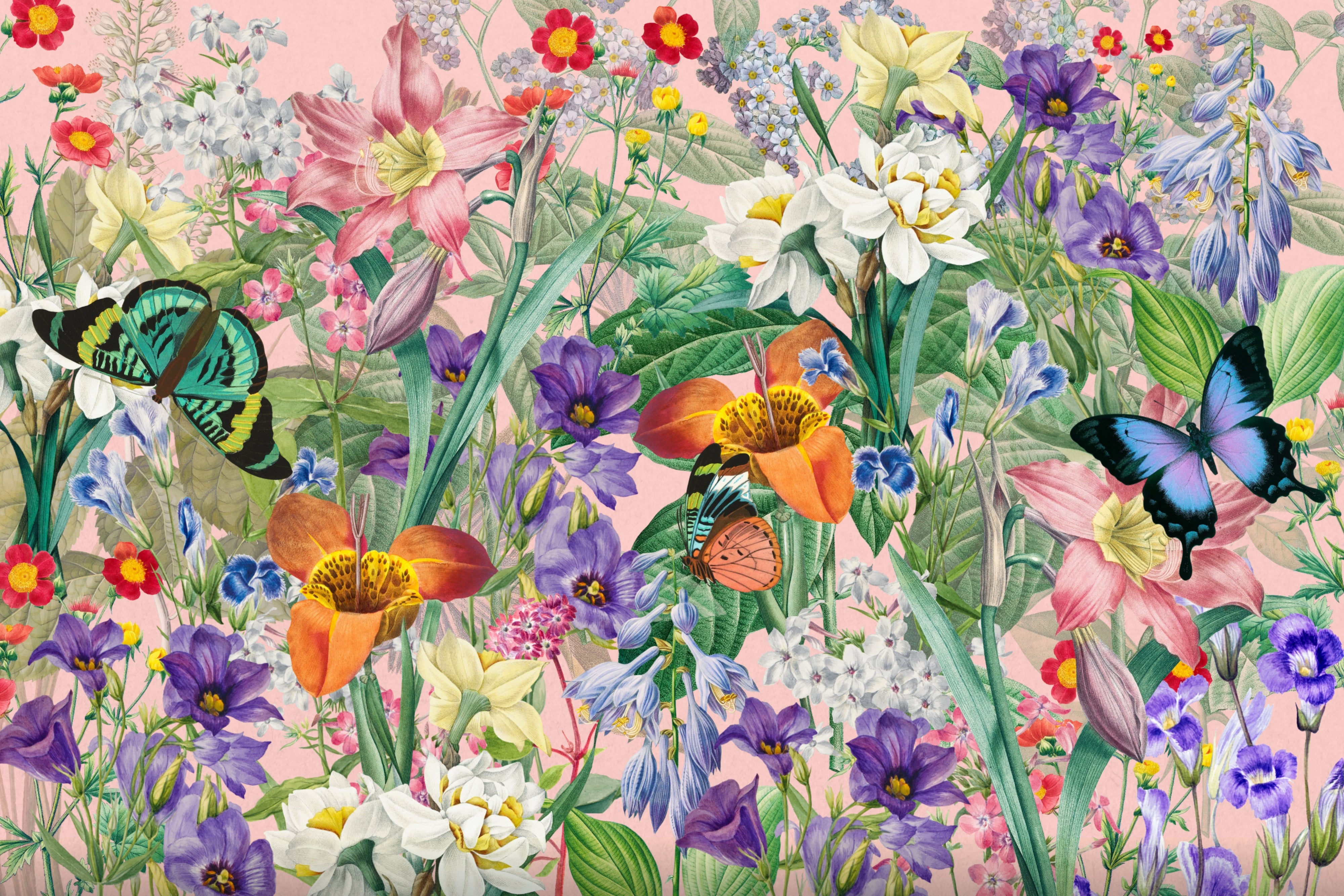 Aesthetic Wildflower Wallpaper, Botanical Mural, Oversized Custom Size Wall Art, Non-Woven, Non-Adhesive, Modern Wall Paper, Removable
