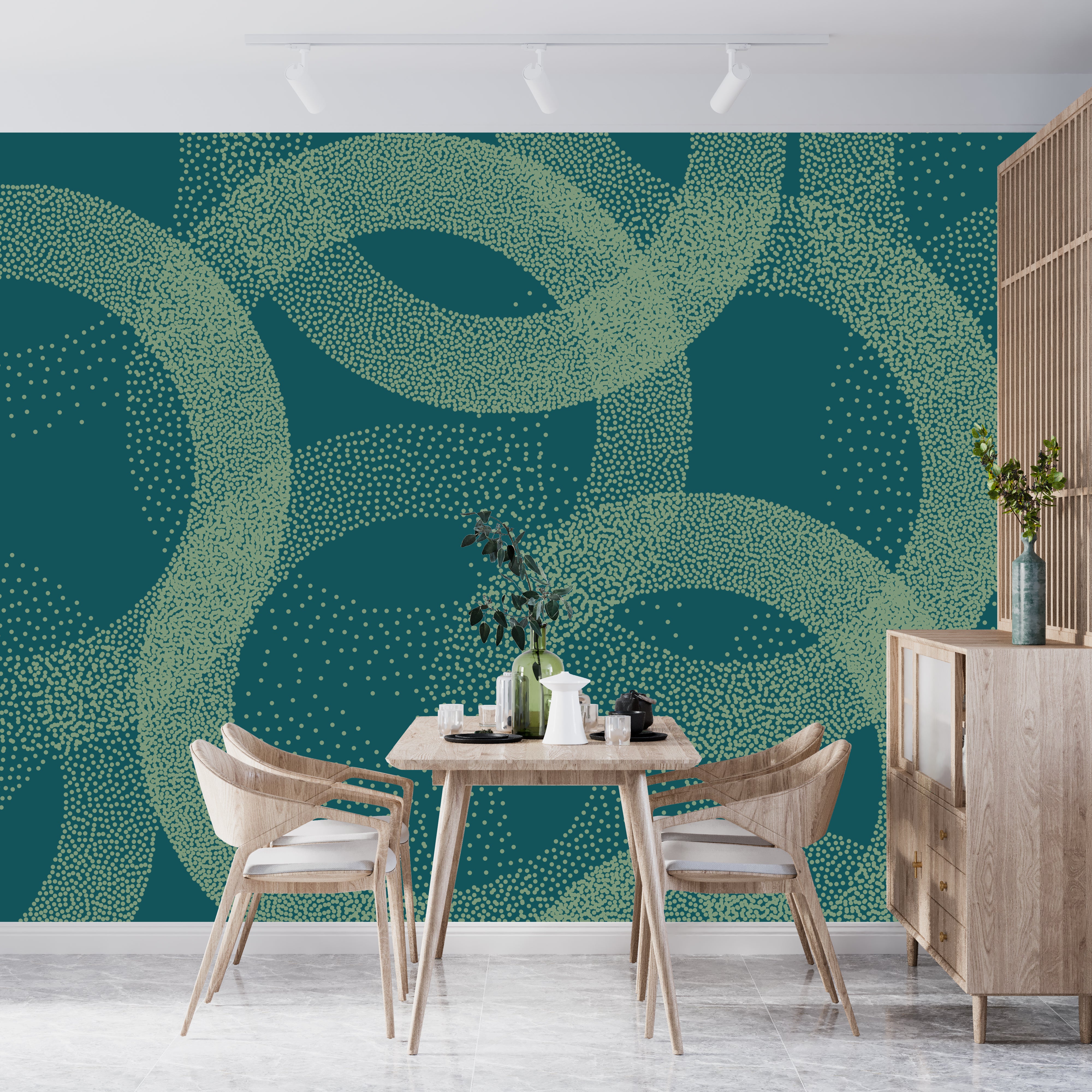 Green Stippled Circles Wallpaper, Seamless Pattern Mural, Oversized Custom Size Wall Art, Non-Woven, Non-Adhesive, Modern Wall Paper, Removable