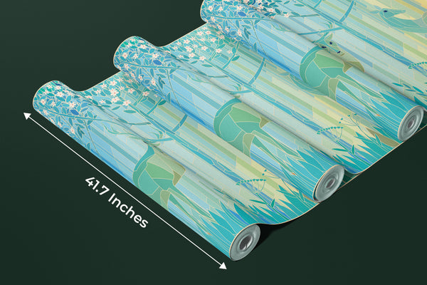 Stained Glass Deers Wallpaper, Spring Forest Mural, Oversized Custom Size Wall Art, Non-Woven, Non-Adhesive, Modern Wall Paper, Removable