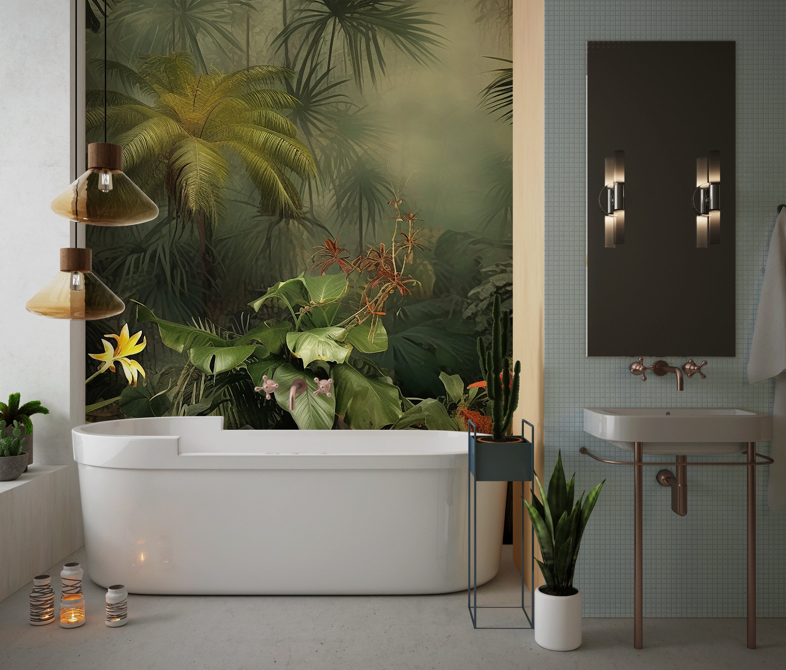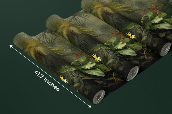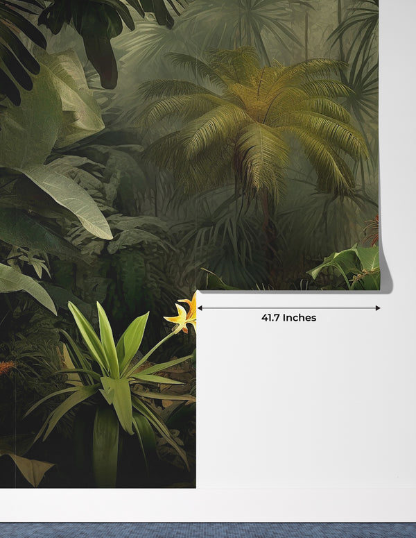 Green Forest Landscape Wallpaper, Tropical Plants Wall Mural, Oversized Custom Size Wall Art, Non-Woven, Non-Adhesive, Modern Wall Paper, Removable