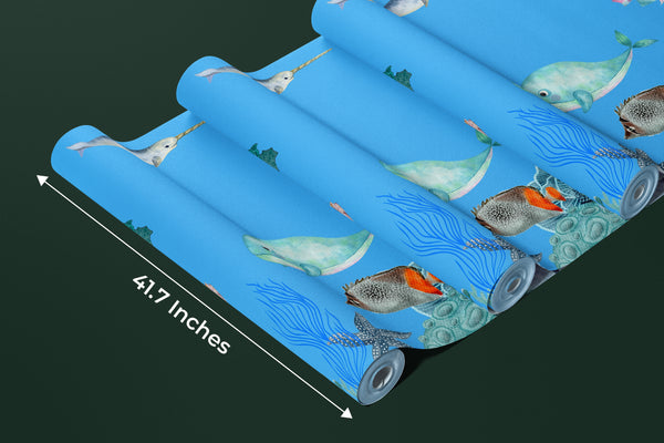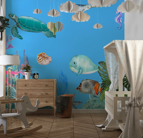 Underwater Wallpaper, Sea Animals Mural, Oversized Custom Size Wall Art, Non-Woven, Non-Adhesive, Modern Wall Paper, Removable