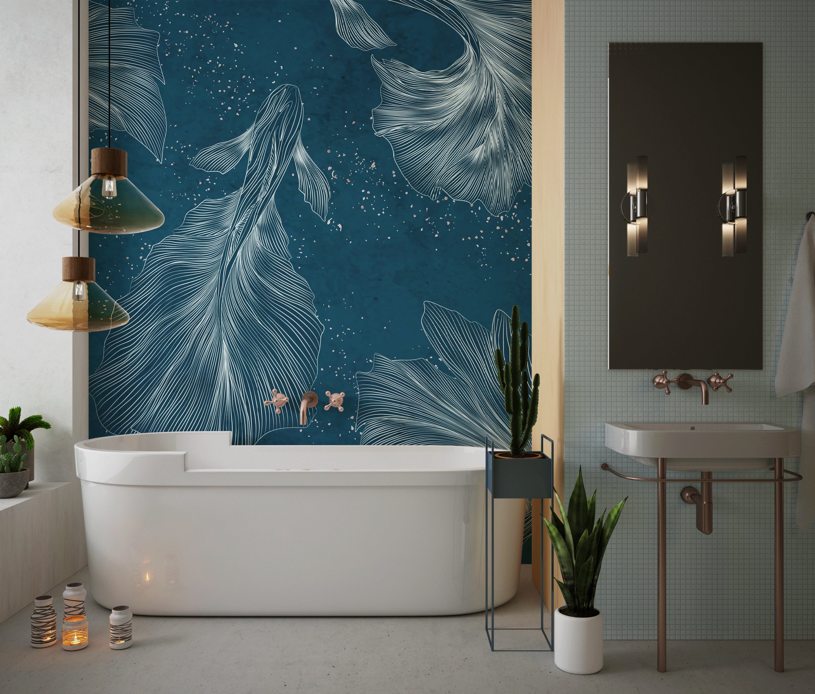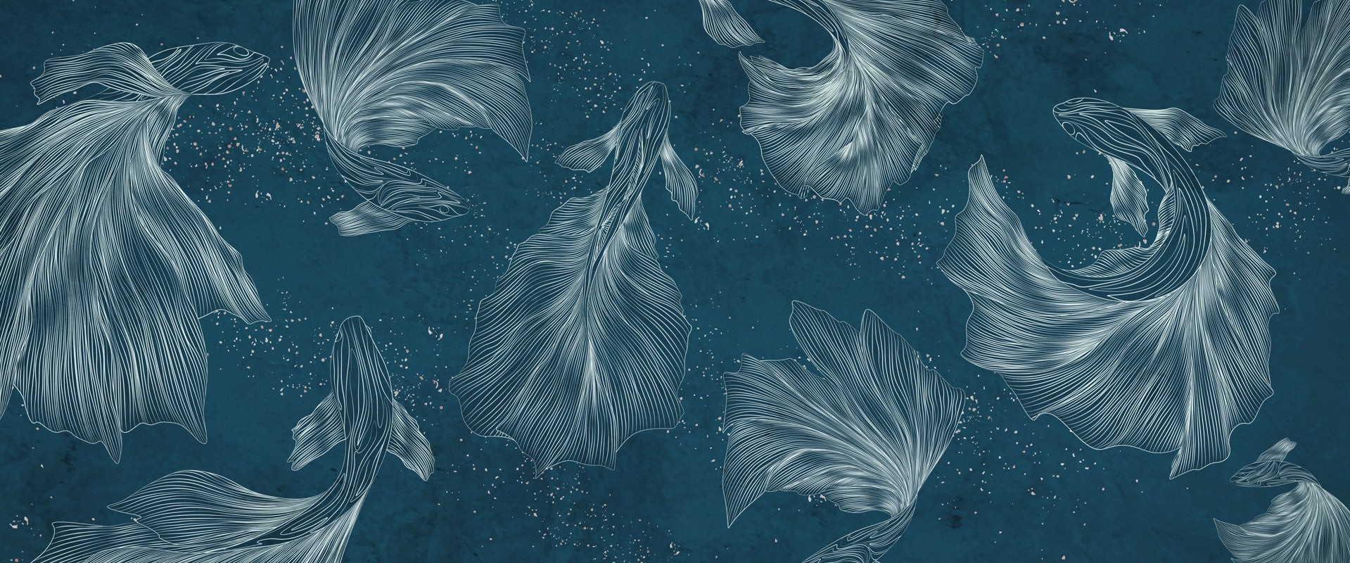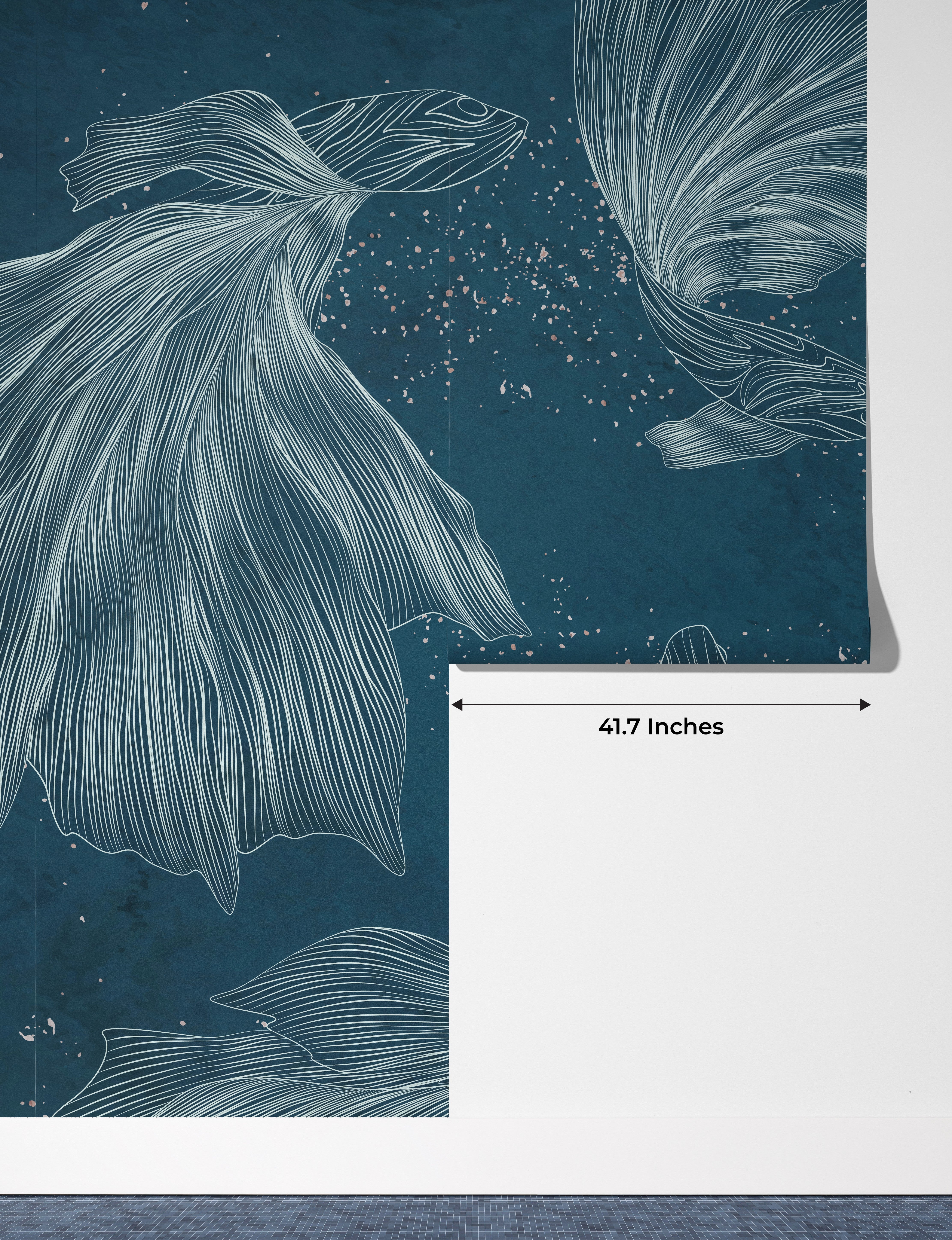 Koi Fish Wallpaper, Silver Line Style Wall Mural, Oversized Custom Size Wall Art, Non-Woven, Non-Adhesive, Modern Wall Paper, Removable
