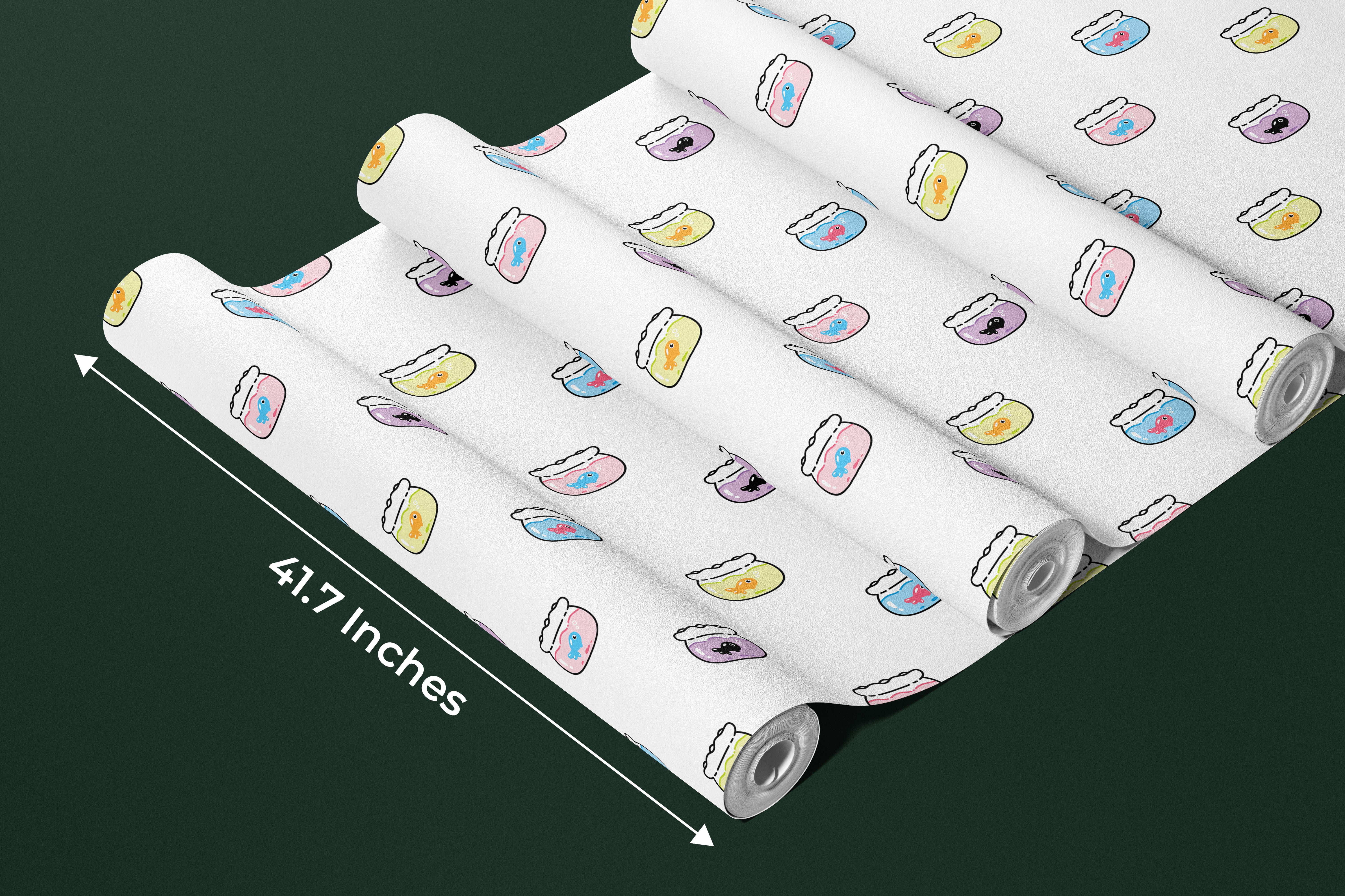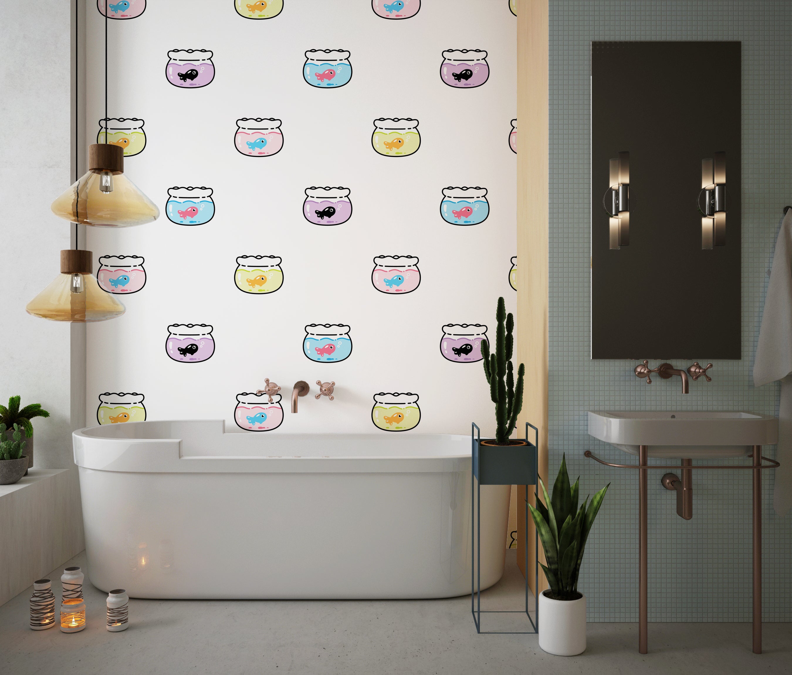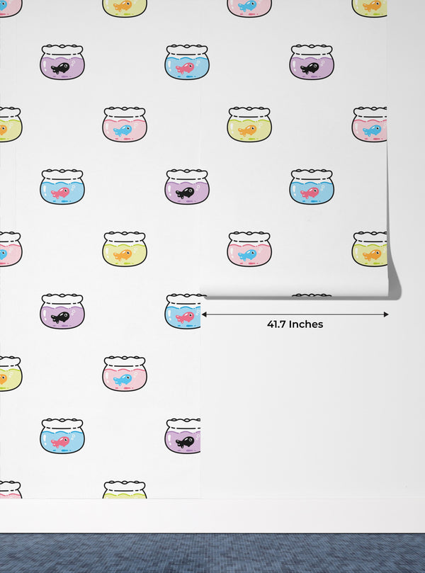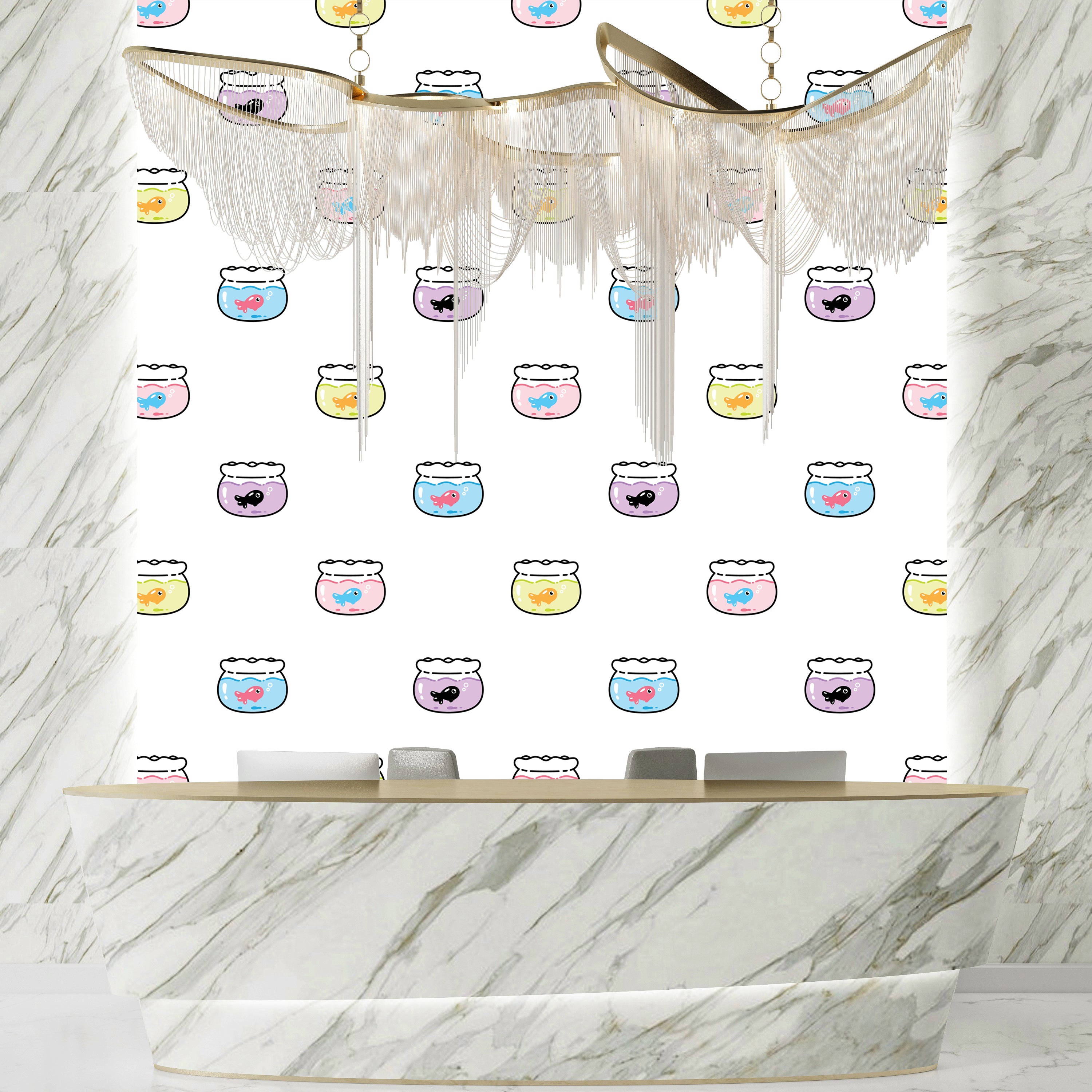 Goldfishes Doodle Wallpaper, Seamless Pattern Mural, Oversized Custom Size Wall Art, Non-Woven, Non-Adhesive, Modern Wall Paper, Removable