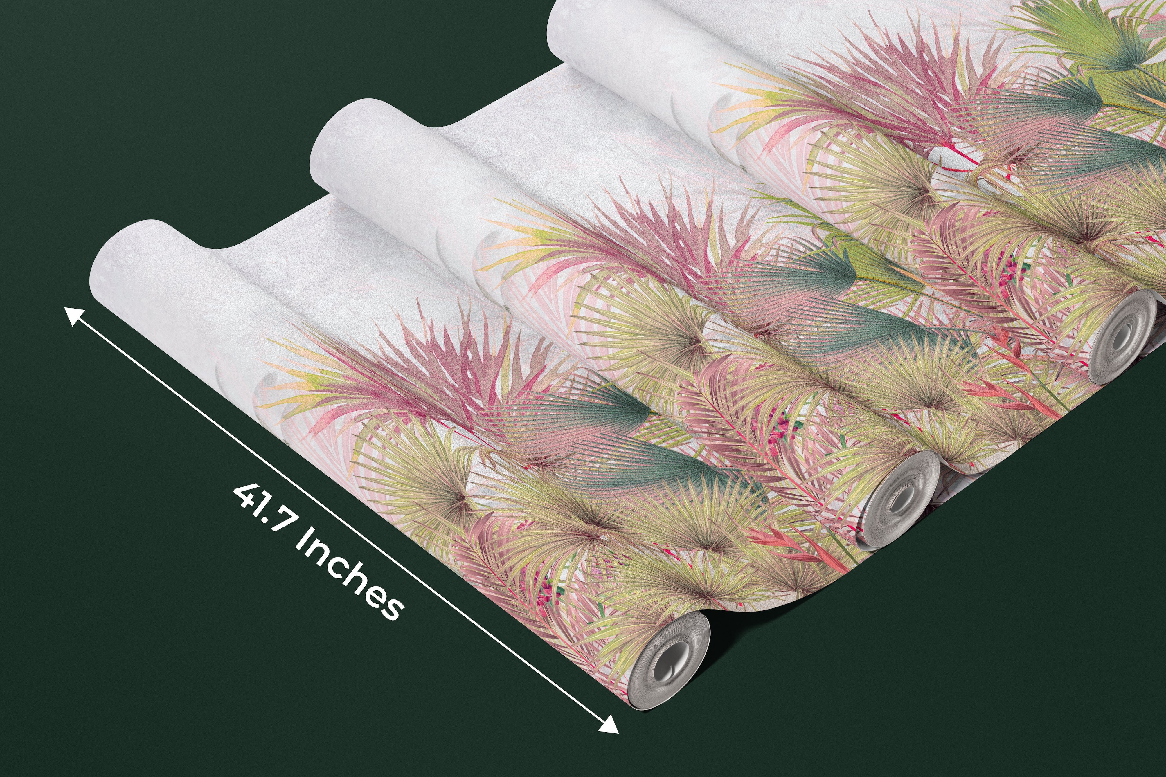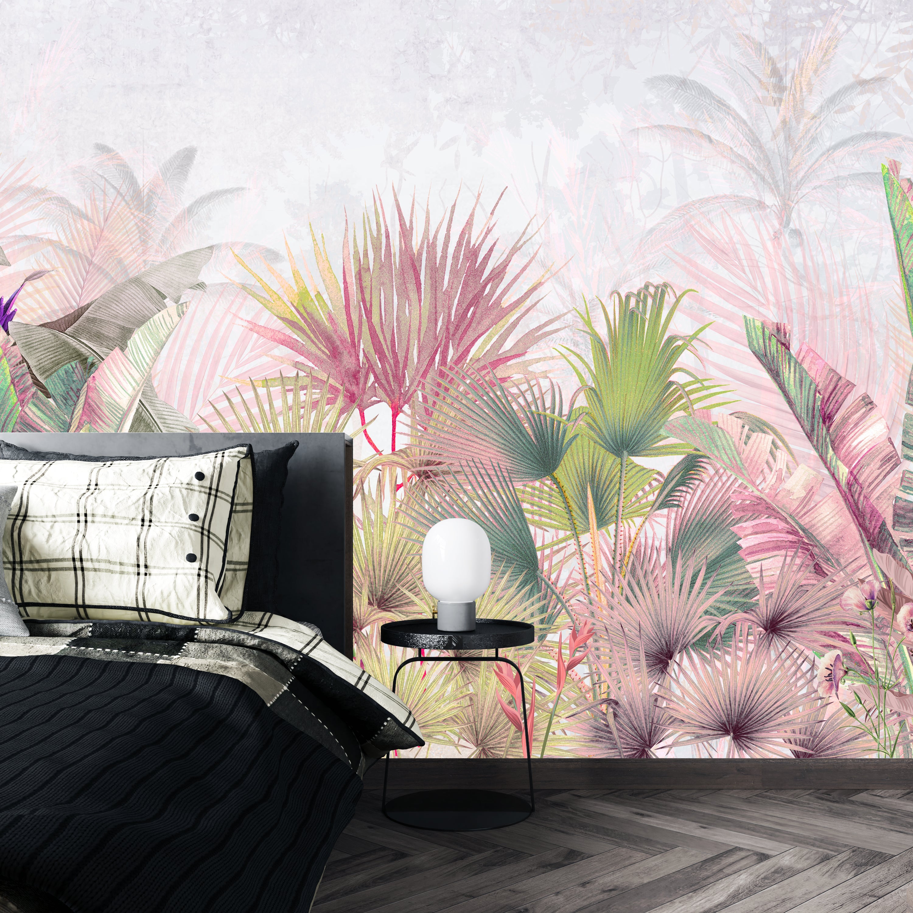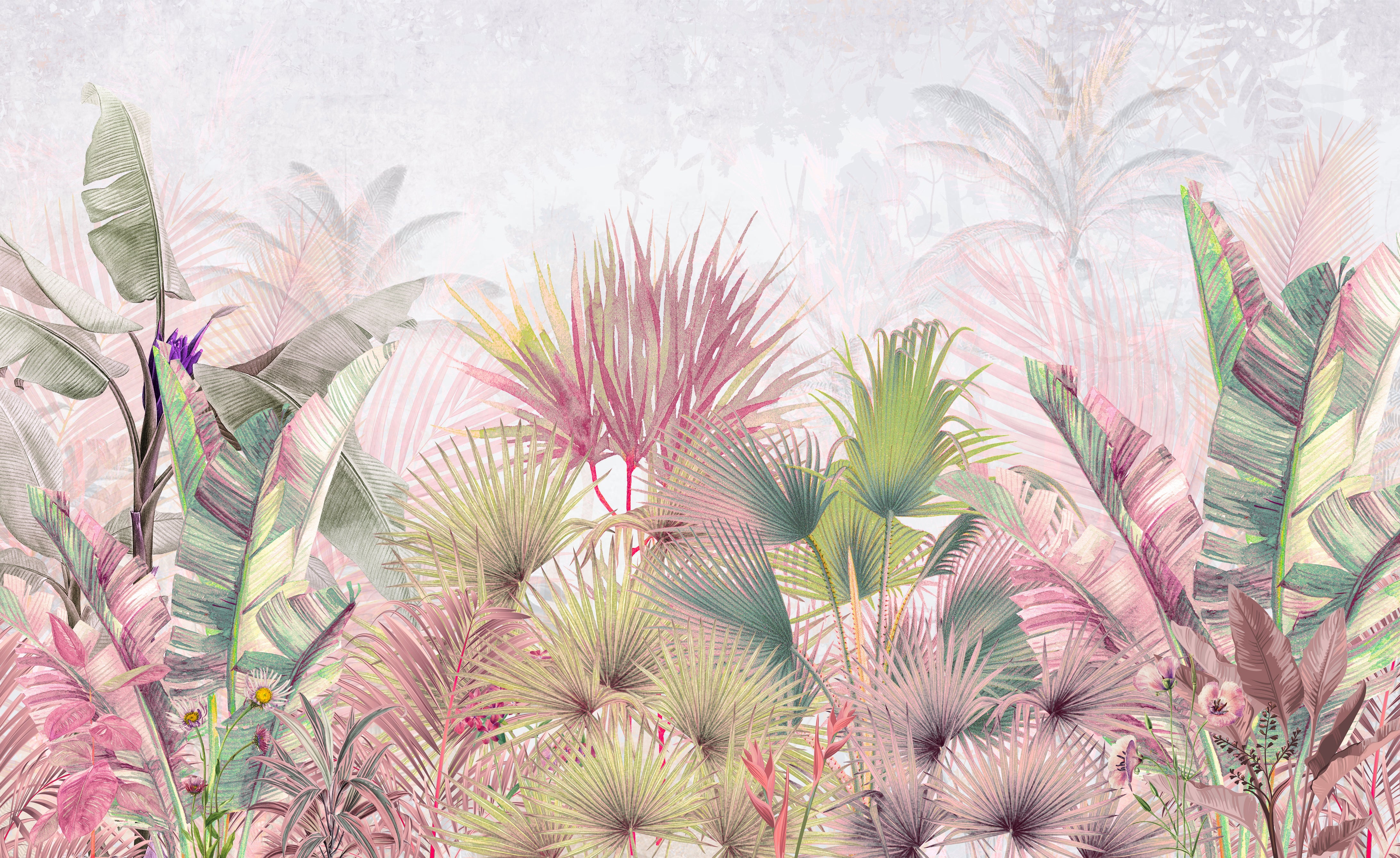 Tropical Forest, Pastel Colors Wallpaper, Leaves and Trees Mural, Oversized Custom Size Wall Art, Non-Woven, Non-Adhesive, Modern Wall Paper, Removable