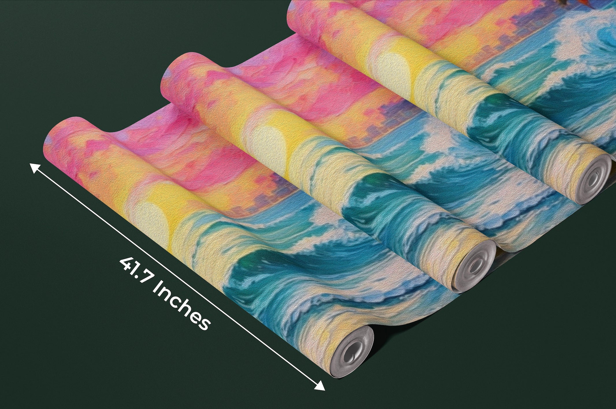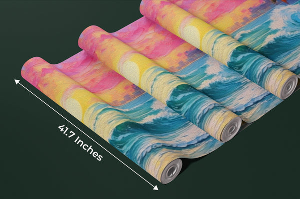 Pink Sky, Sunrise and Sea View Wallpaper, Oil Painting Mural, Oversized Custom Size Wall Art, Non-Woven, Non-Adhesive, Modern Wall Paper, Removable