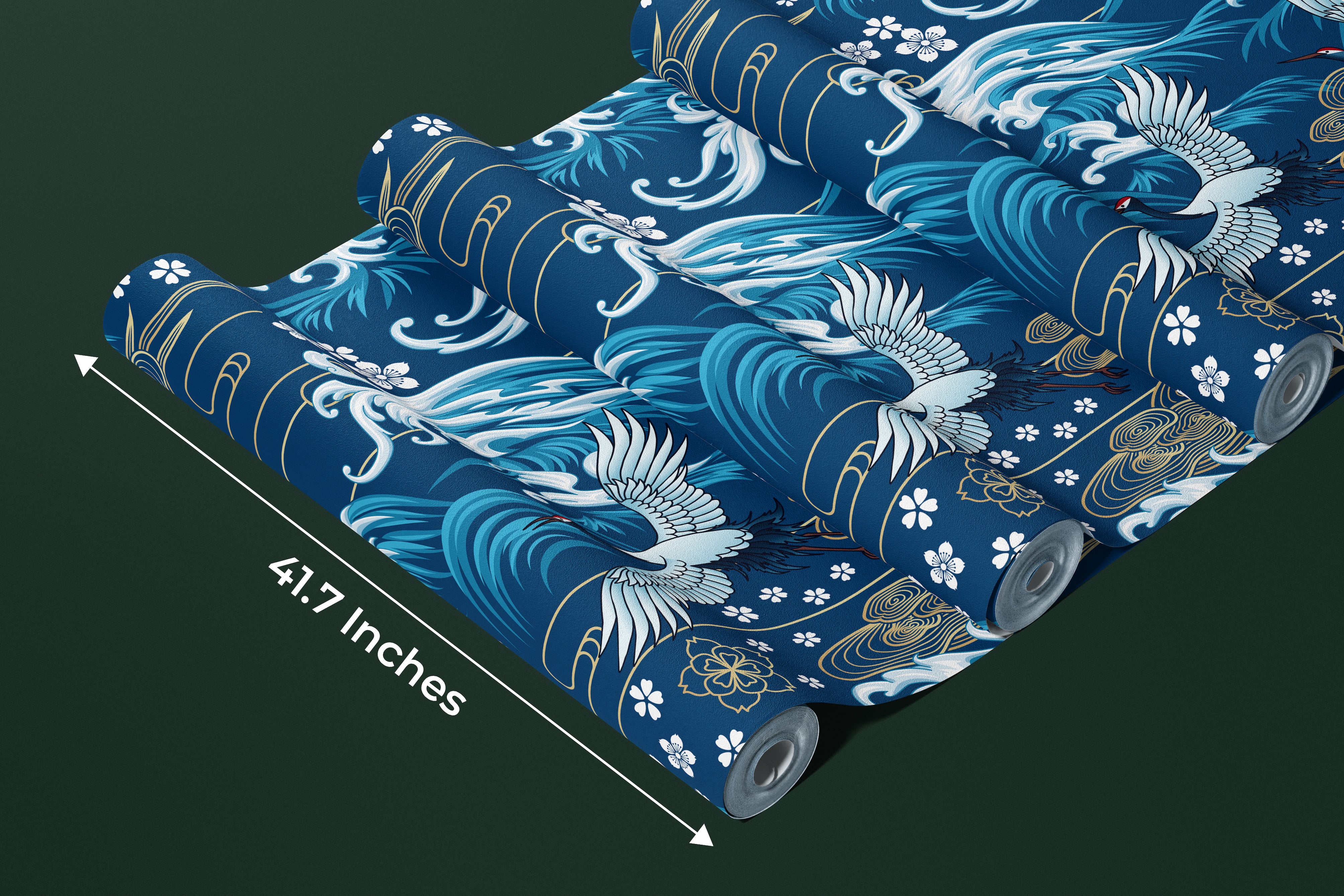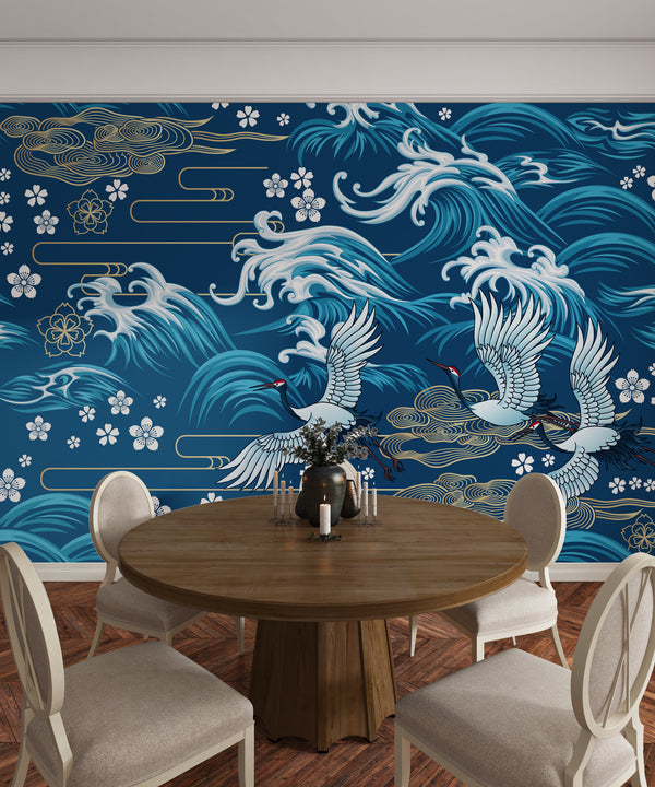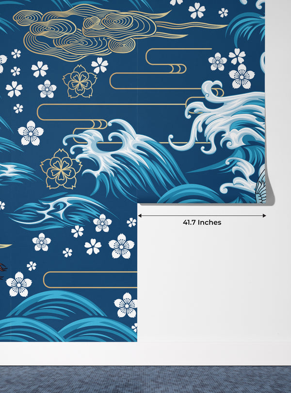 Oriental Sea Wallpaper, Seamless Pattern Mural, Oversized Custom Size Wall Art, Non-Woven, Non-Adhesive, Modern Wall Paper, Removable