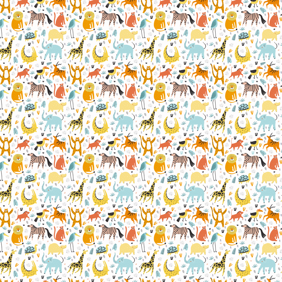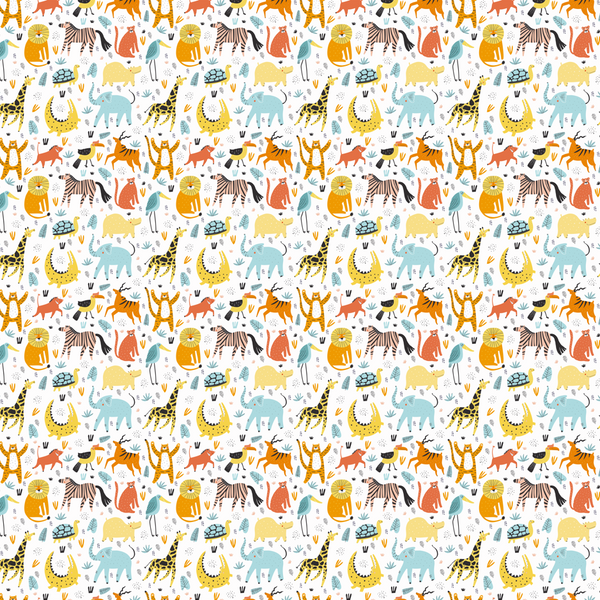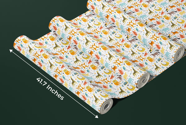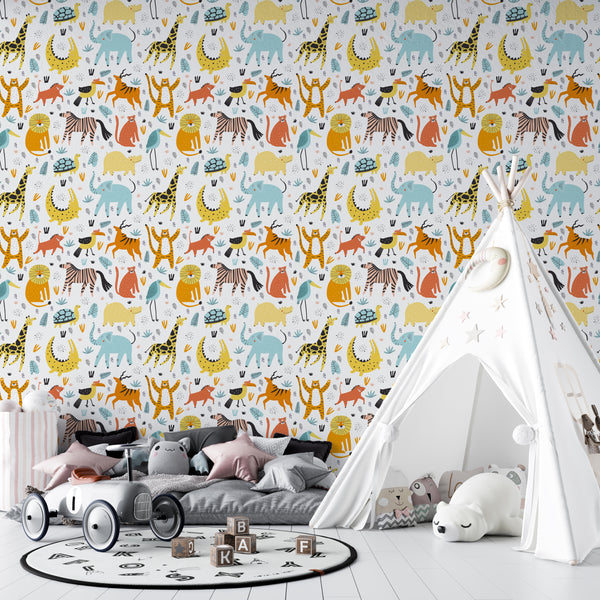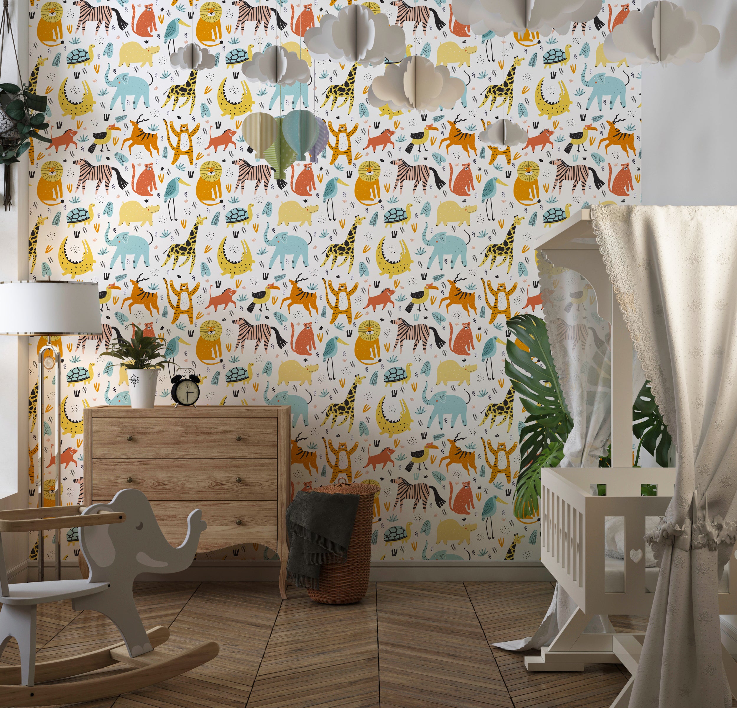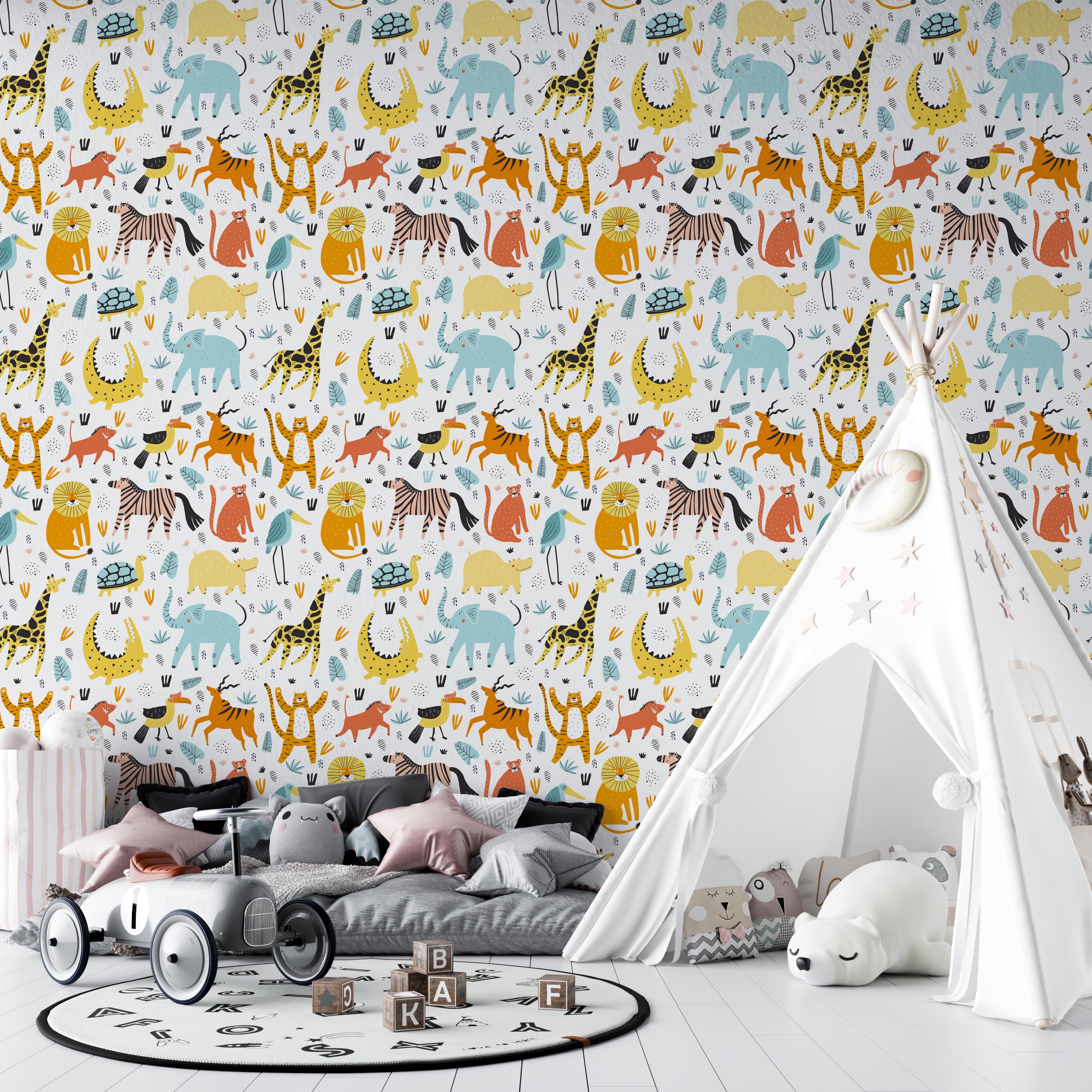 Wild African Animals Wallpaper, Seamless Pattern Mural, Oversized Custom Size Wall Art, Non-Woven, Non-Adhesive, Modern Wall Paper, Removable