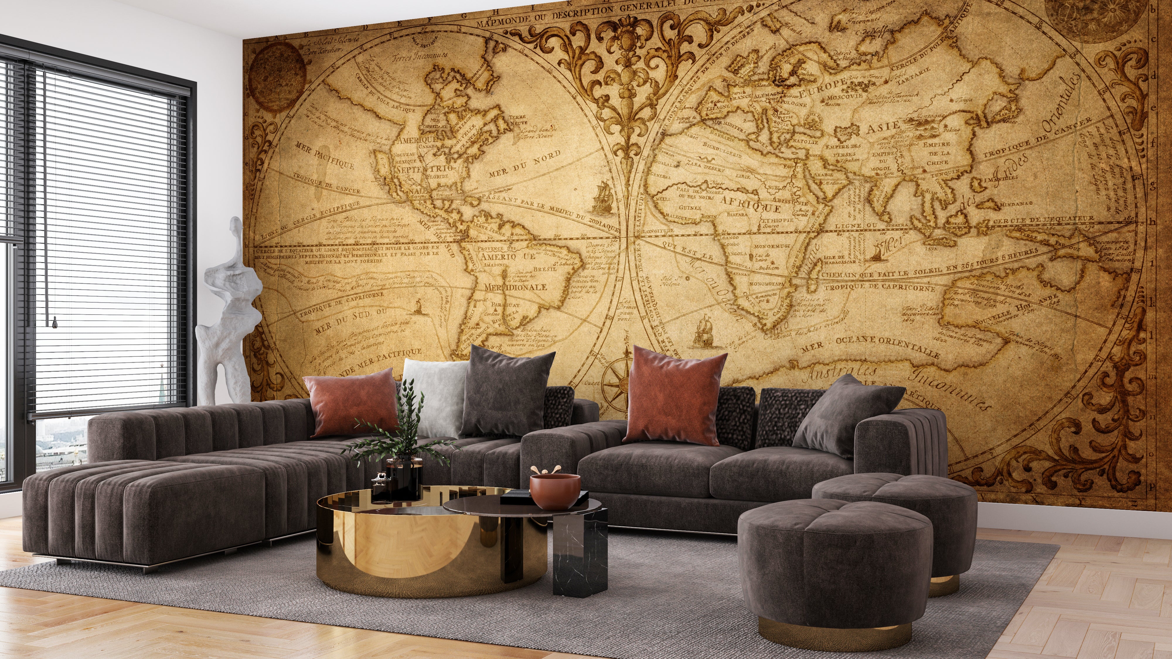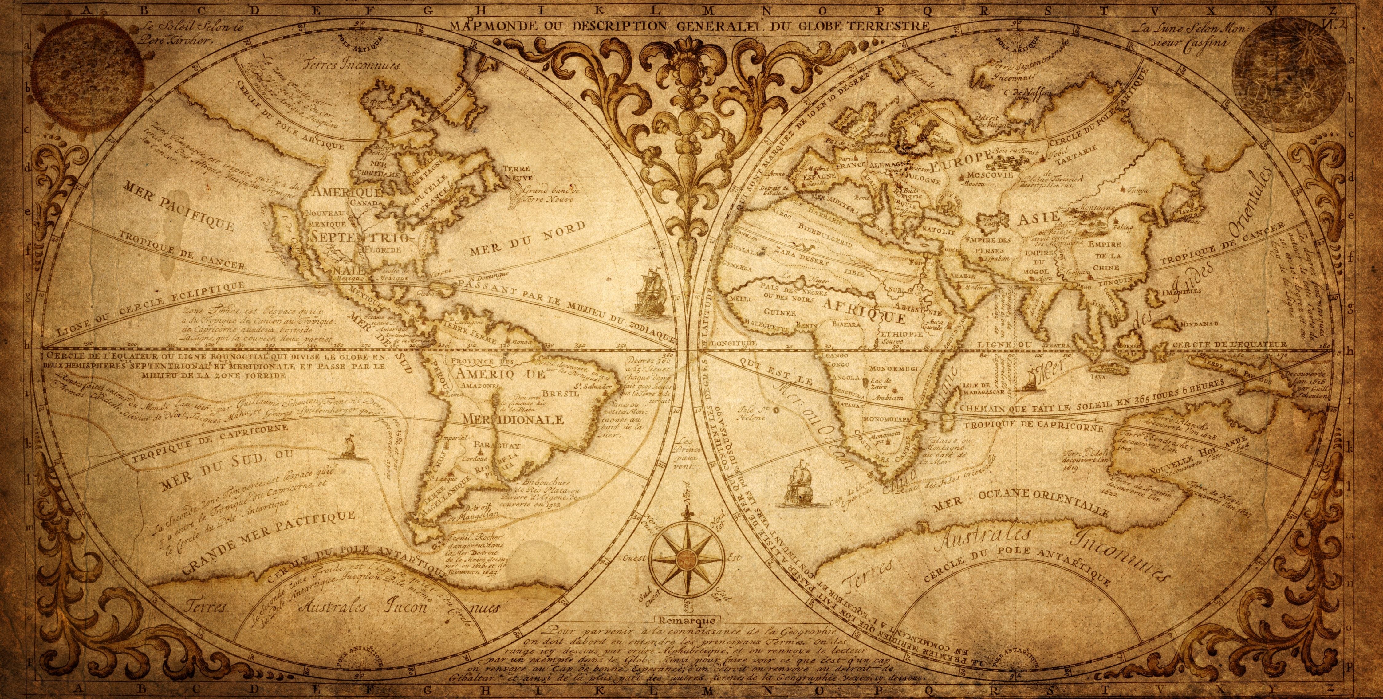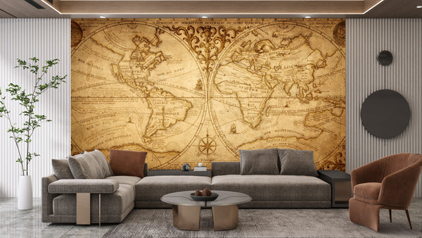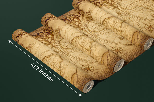 Old Geographical World Map Wallpaper, History, Voyage Mural, Oversized Custom Size Wall Art, Non-Woven, Non-Adhesive, Modern Wall Paper, Removable