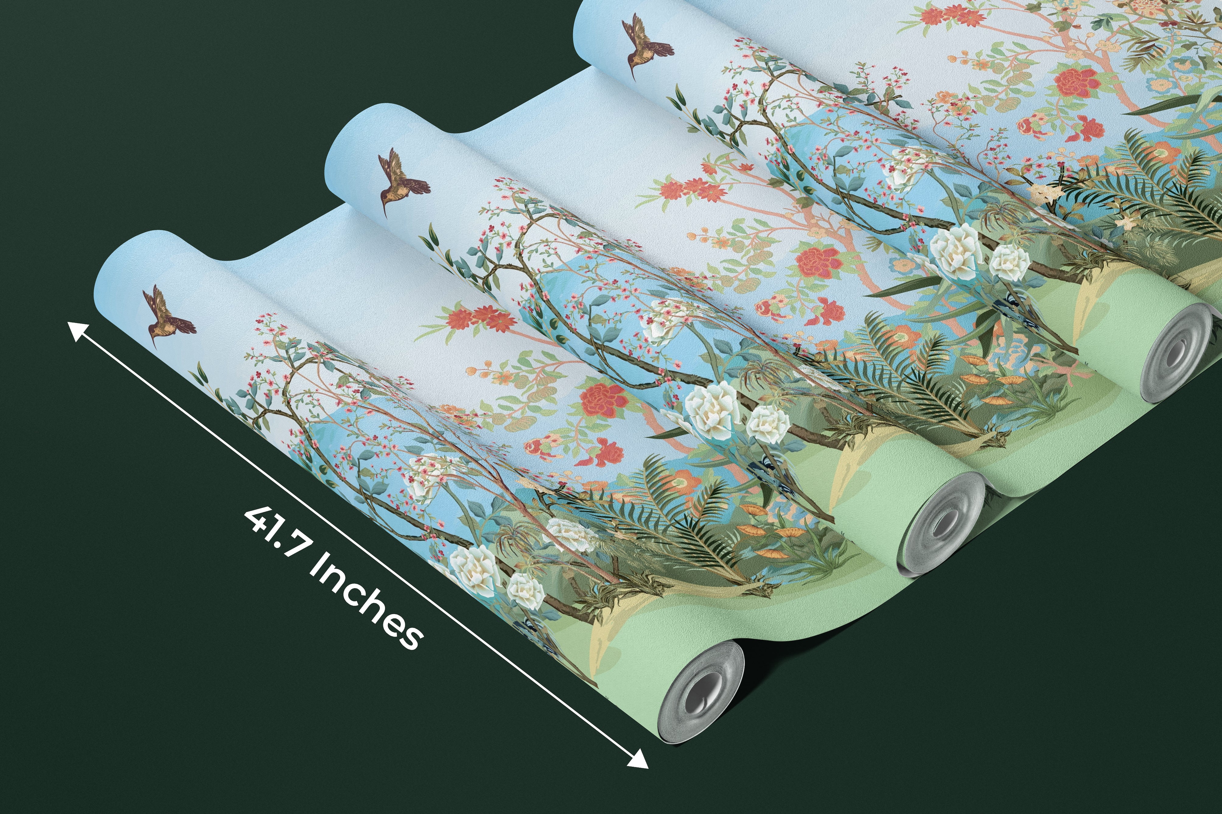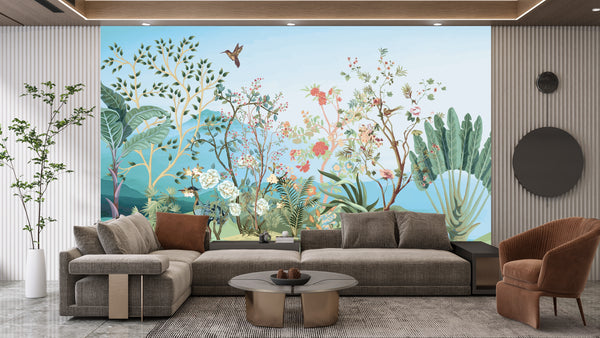 Tropical Jungle Wallpaper, Trees Mural, Oversized Custom Size Wall Art, Non-Woven, Non-Adhesive, Modern Wall Paper, Removable