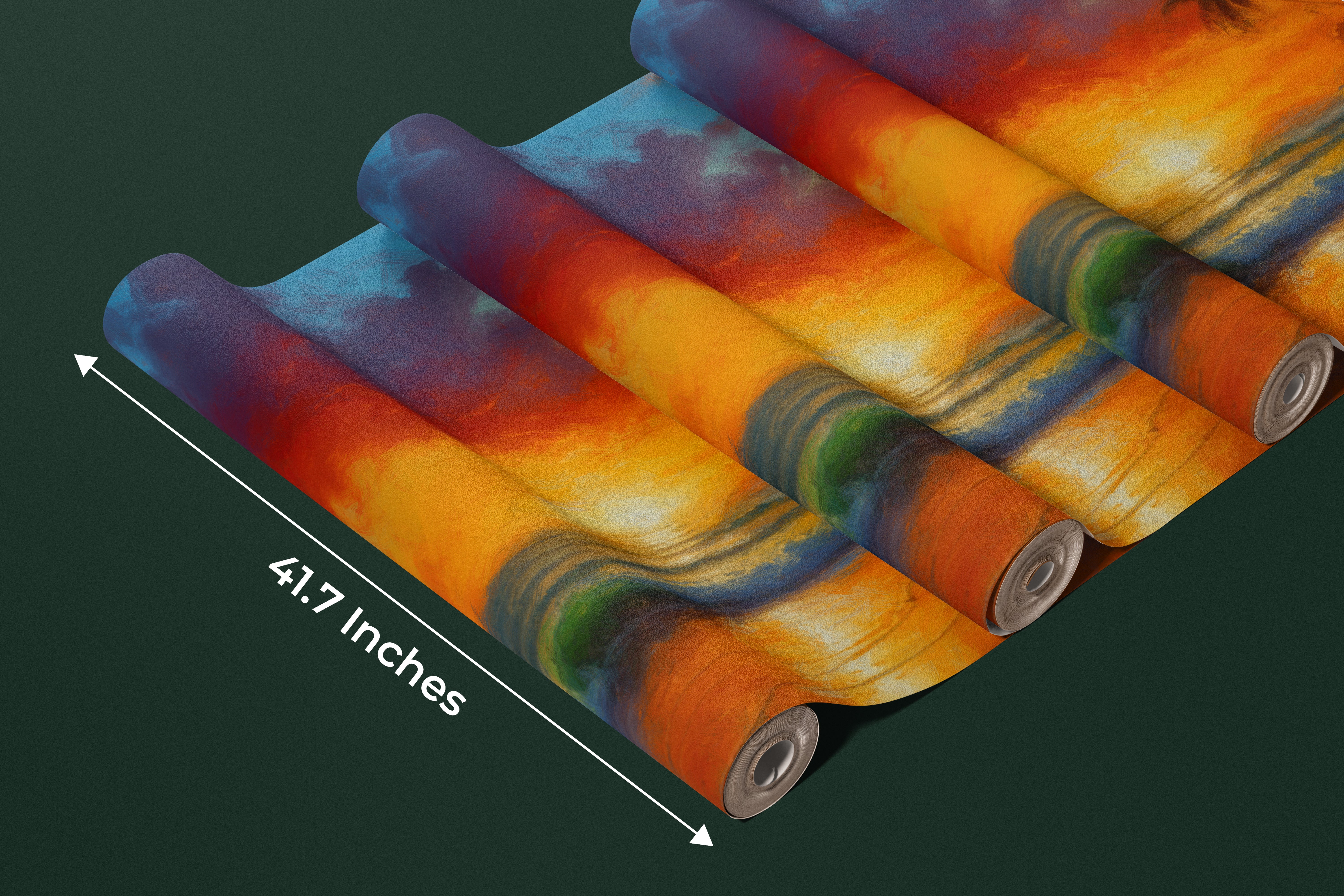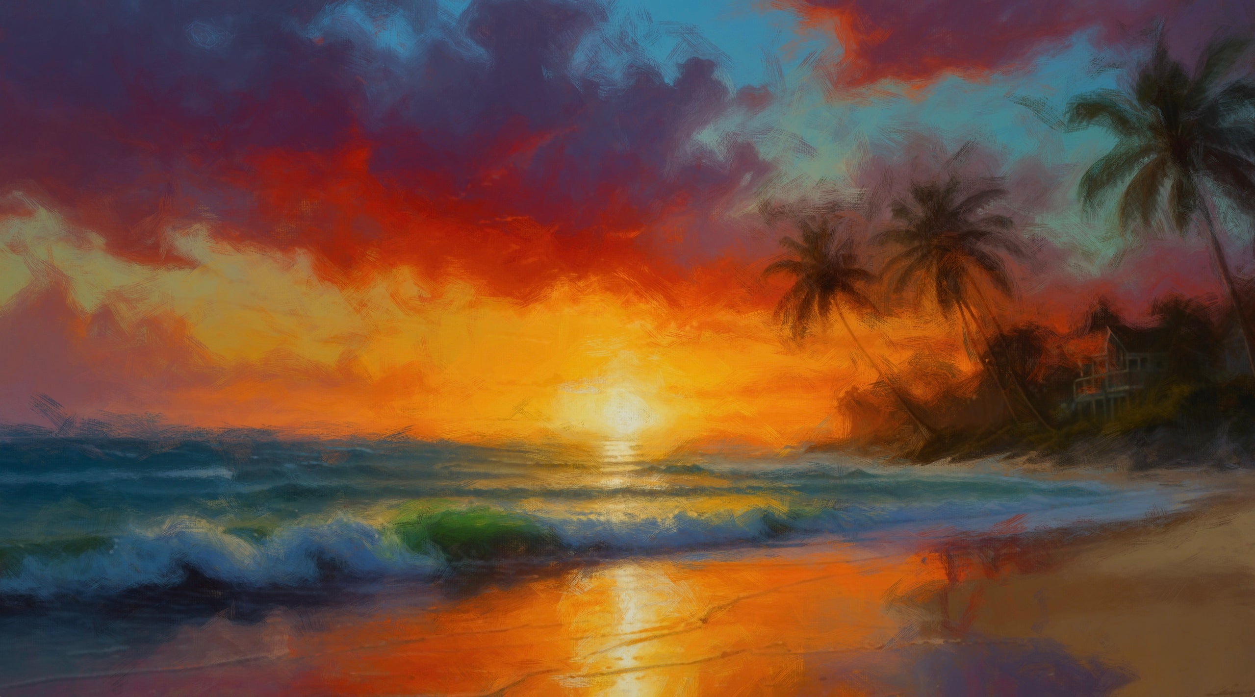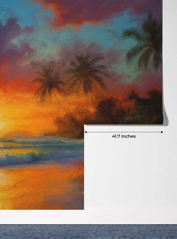 Tropical Beach, Golden Hour Wallpaper, Oil Painting Mural, Oversized Custom Size Wall Art, Non-Woven, Non-Adhesive, Modern Wall Paper, Removable