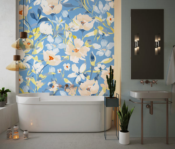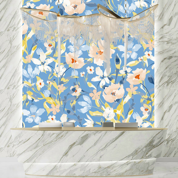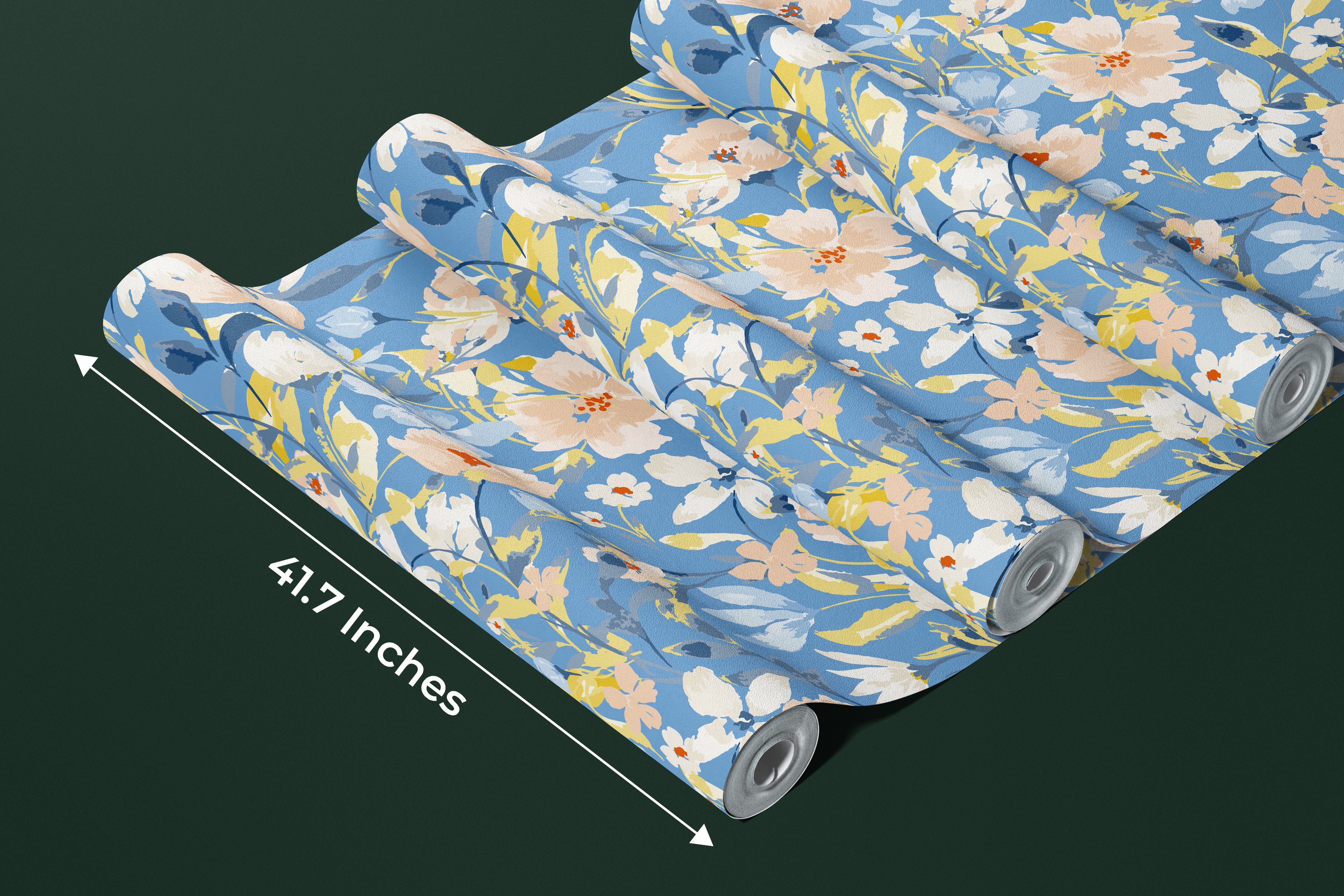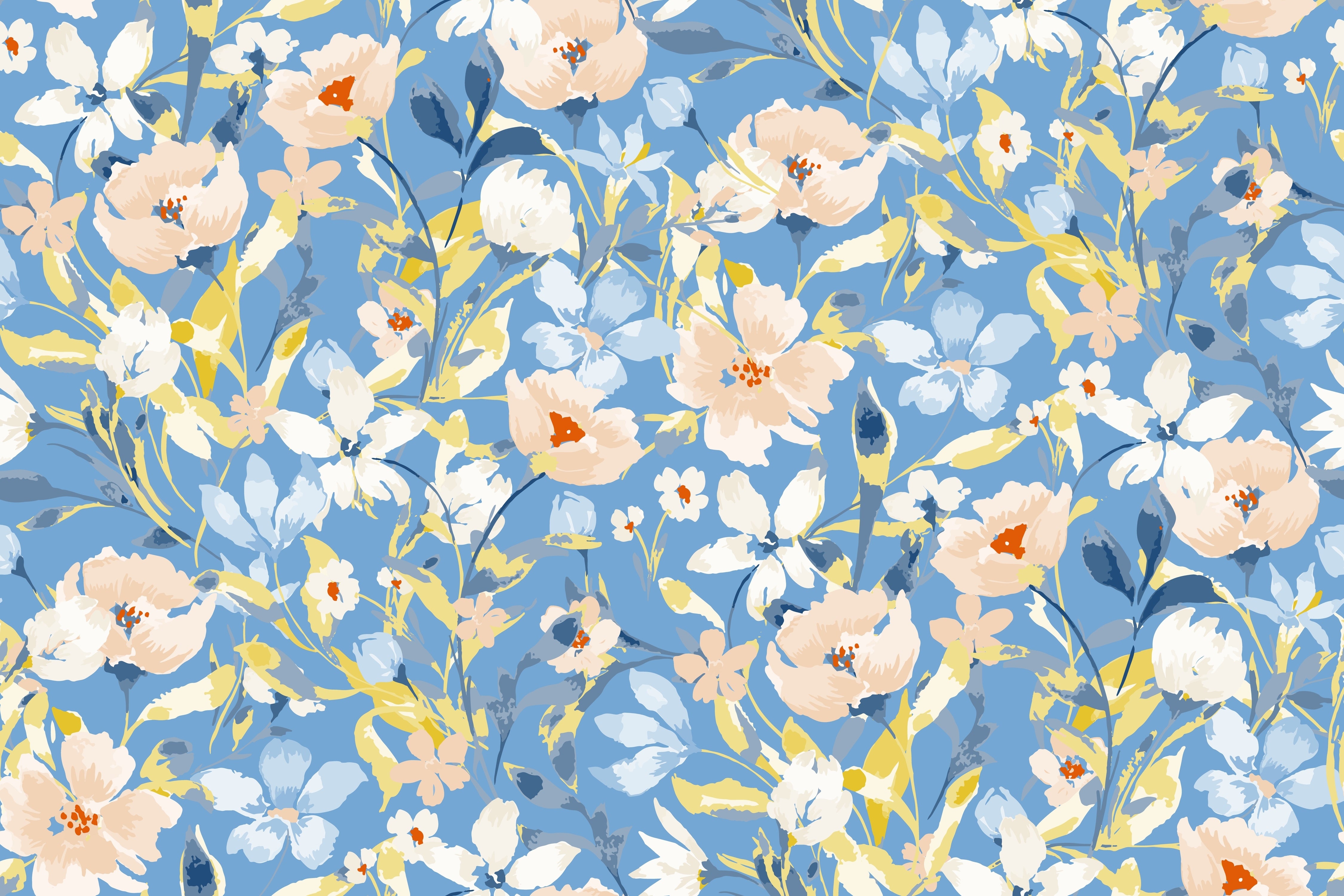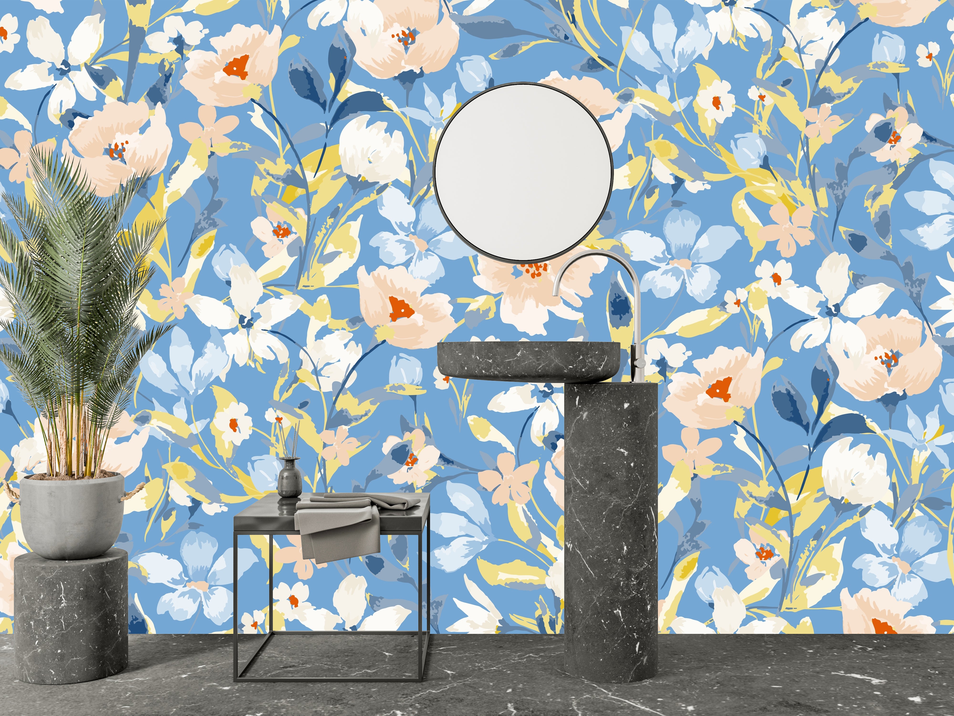 Watercolor Wildflowers Wallpaper, Seamless Pattern Mural, Oversized Custom Size Wall Art, Non-Woven, Non-Adhesive, Modern Wall Paper, Removable