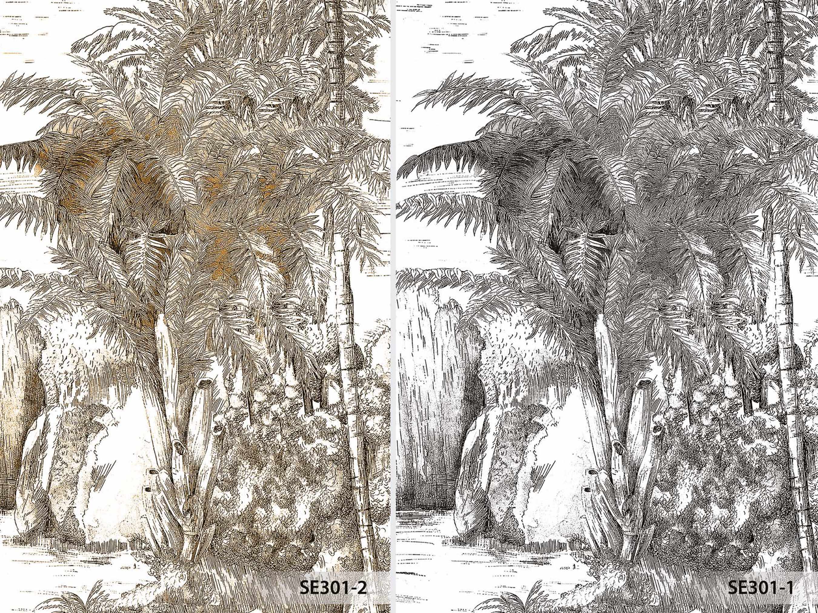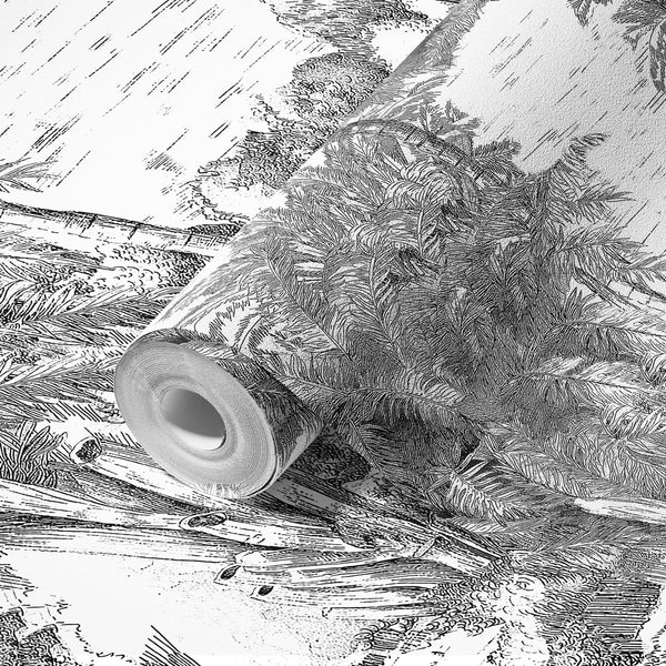 Black and White Palm Trees Drawing Wallpaper, Large Hand Drawn Wall Mural, Custom Size Wall Covering, Non-Woven, Non-Pasted, Washable, Removable