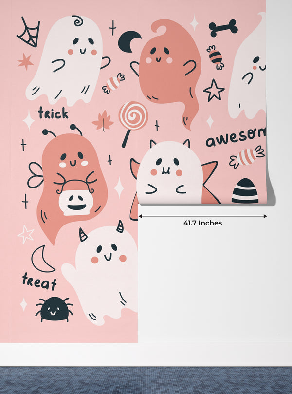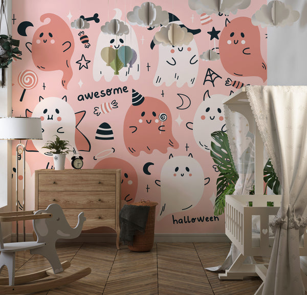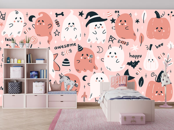 Cute Halloween Wallpaper, Seamless Pattern Mural, Oversized Custom Size Wall Art, Non-Woven, Non-Adhesive, Modern Wall Paper, Removable