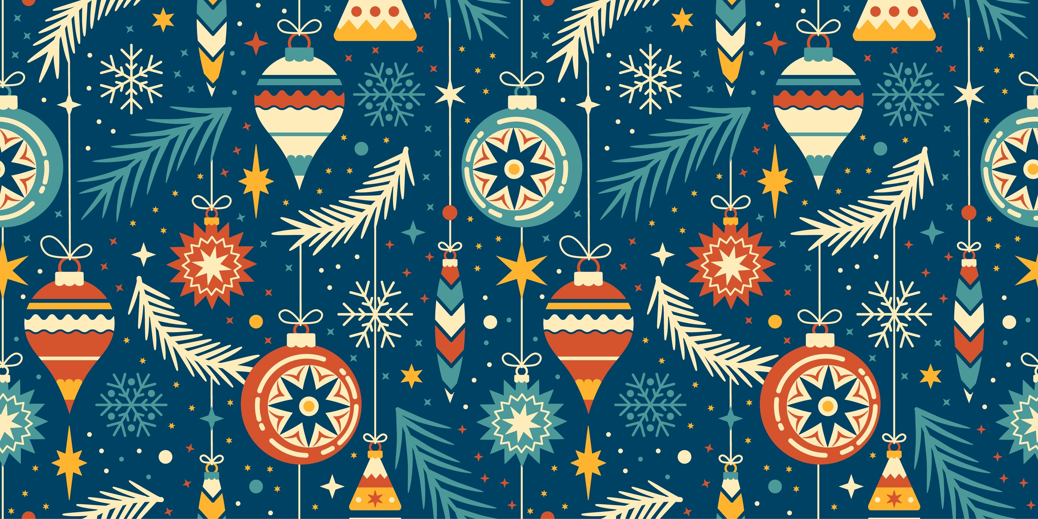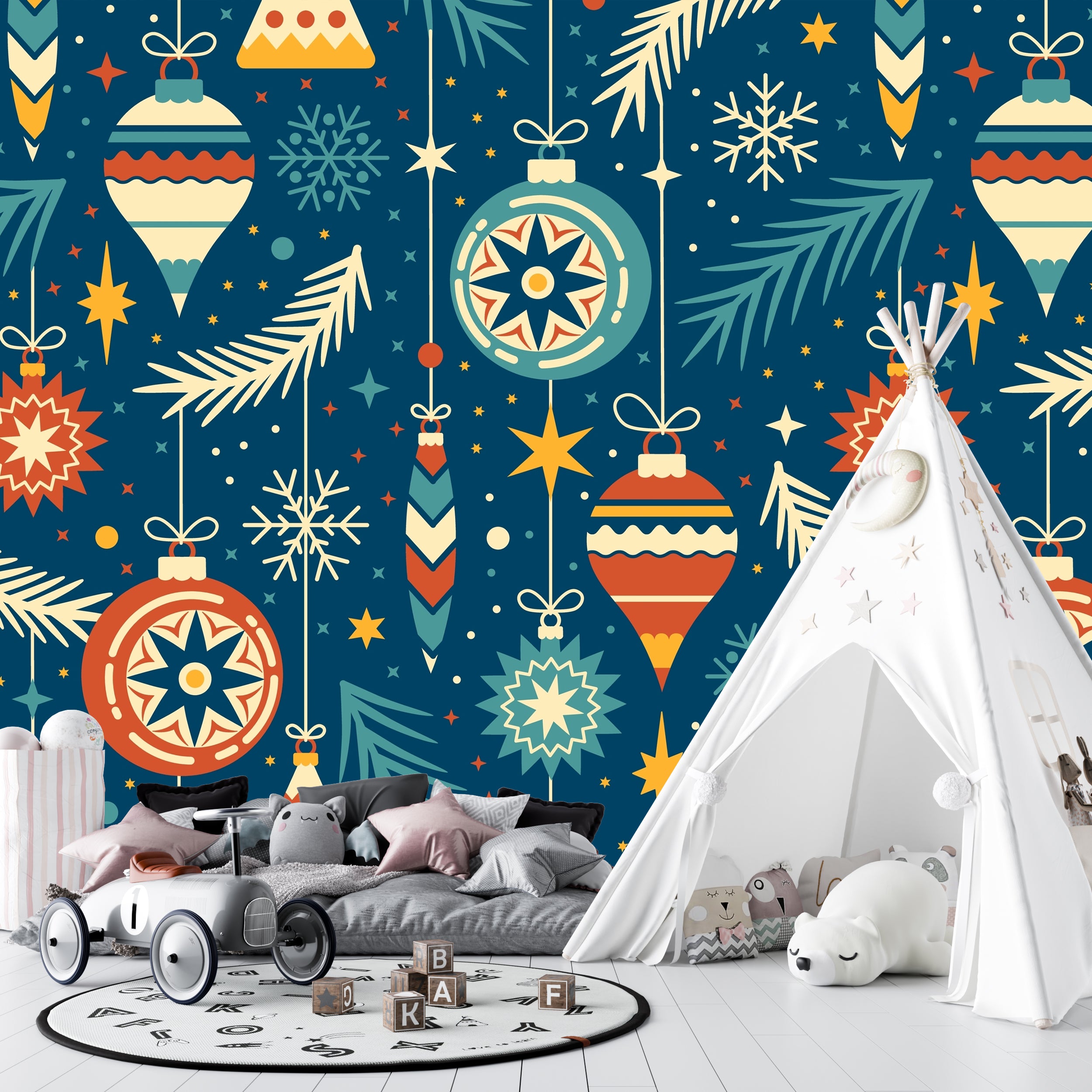 Vintage Christmas Decorations Wallpaper, Seamless Pattern Mural, Oversized Custom Size Wall Art, Non-Woven, Non-Adhesive, Modern Wall Paper, Removable