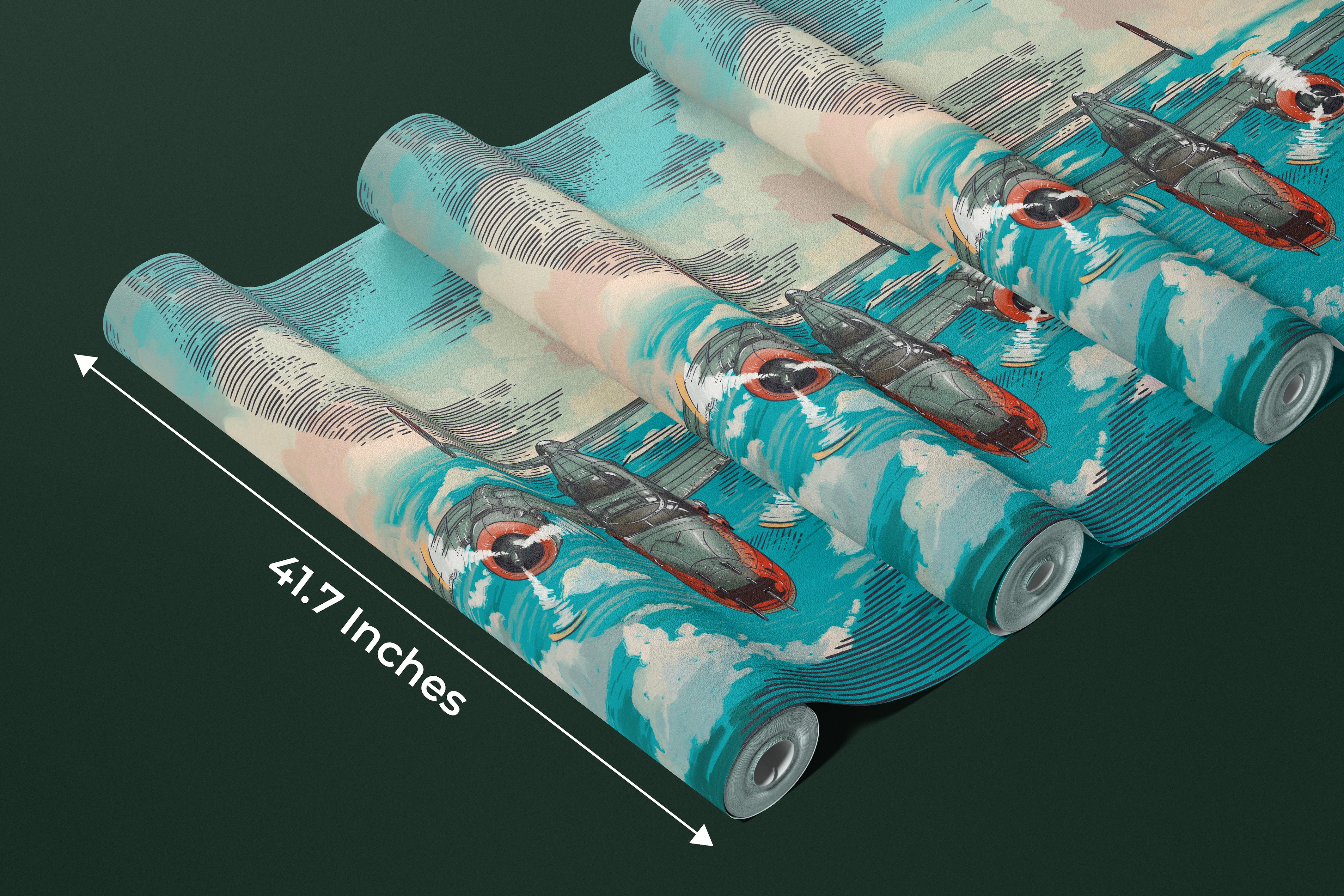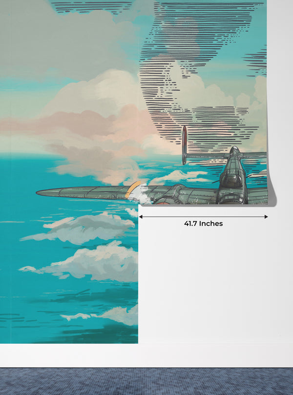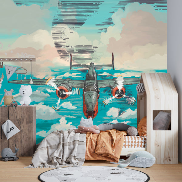 Plane in the Sky Wallpaper, Over the Sea Mural, Oversized Custom Size Wall Art, Non-Woven, Non-Adhesive, Modern Wall Paper, Removable