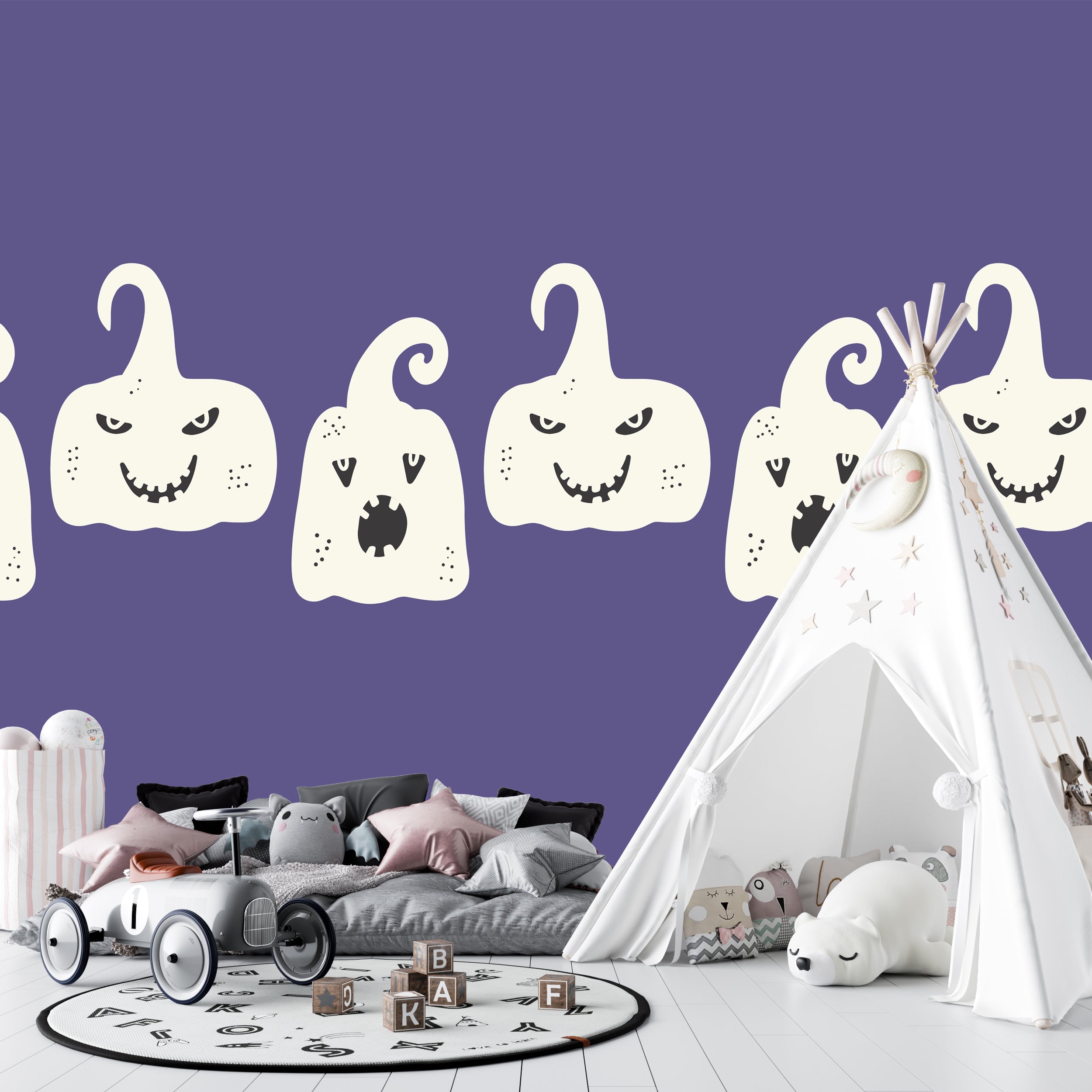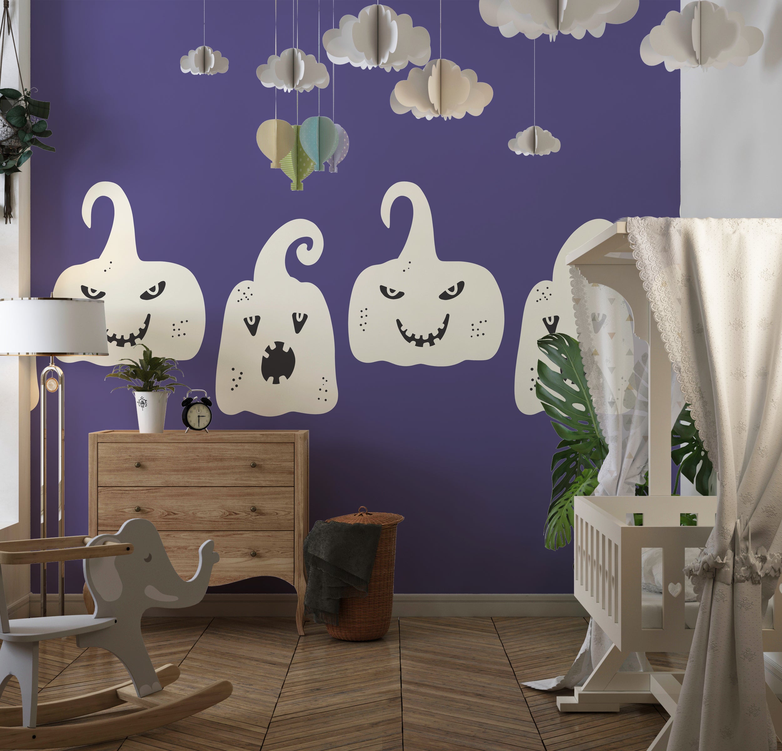 Ghosts, Purple Background Wallpaper, Seamless Pattern Mural, Oversized Custom Size Wall Art, Non-Woven, Non-Adhesive, Modern Wall Paper, Removable