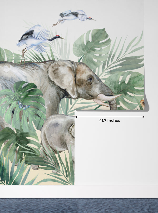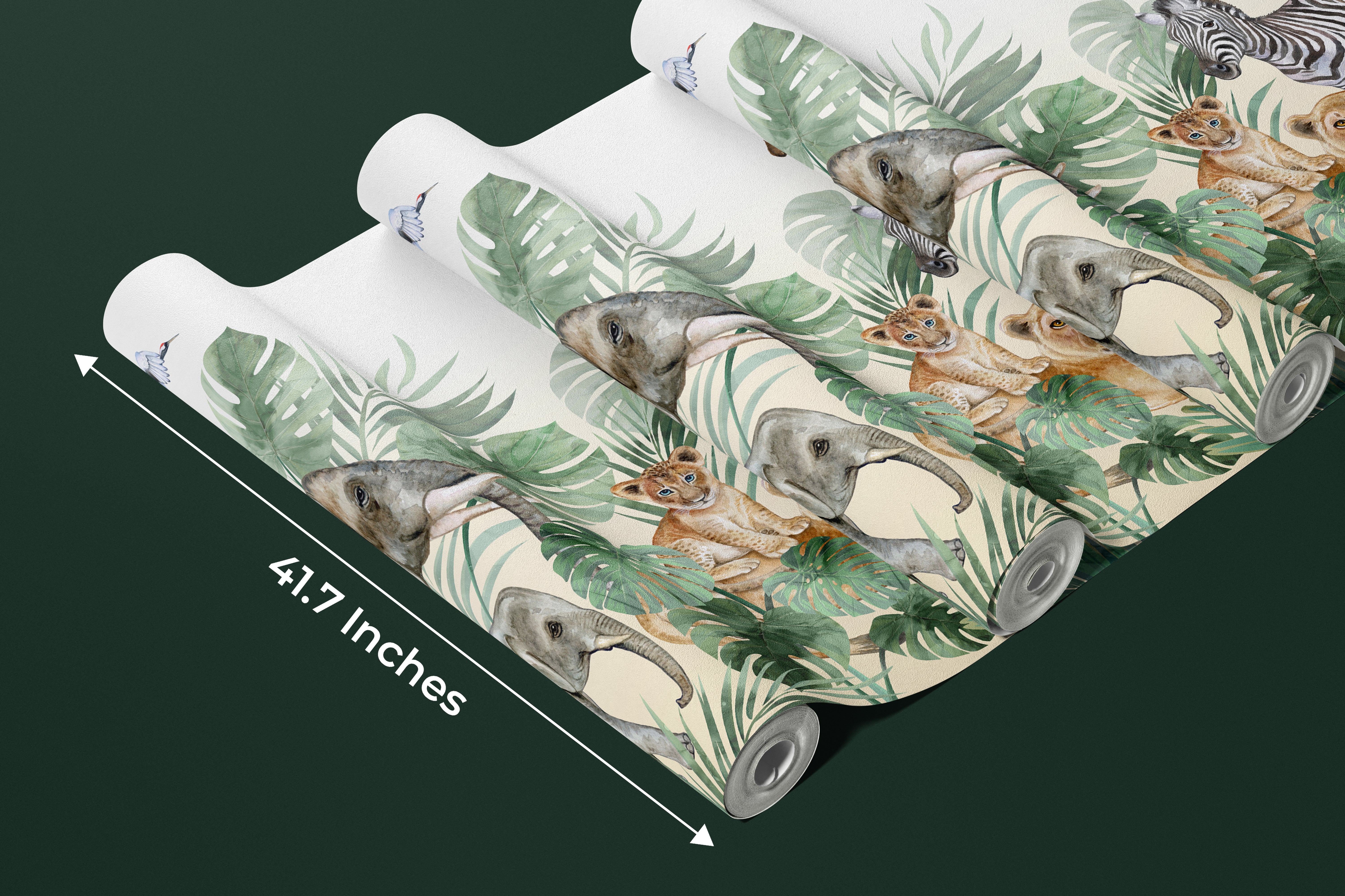 Watercolor Safari Wallpaper, Animals Mural, Oversized Custom Size Wall Art, Non-Woven, Non-Adhesive, Modern Wall Paper, Removable