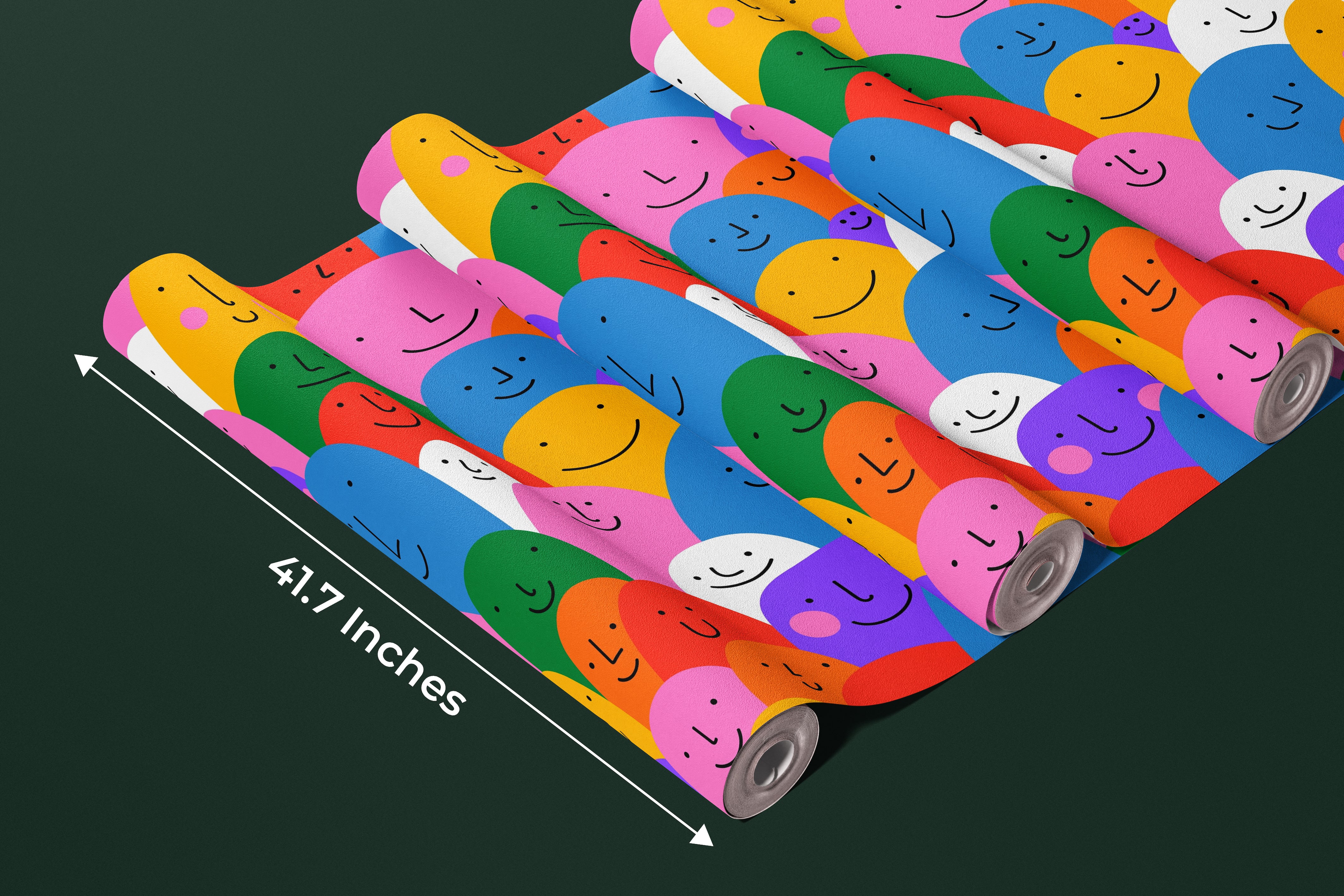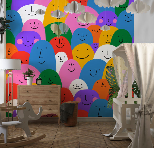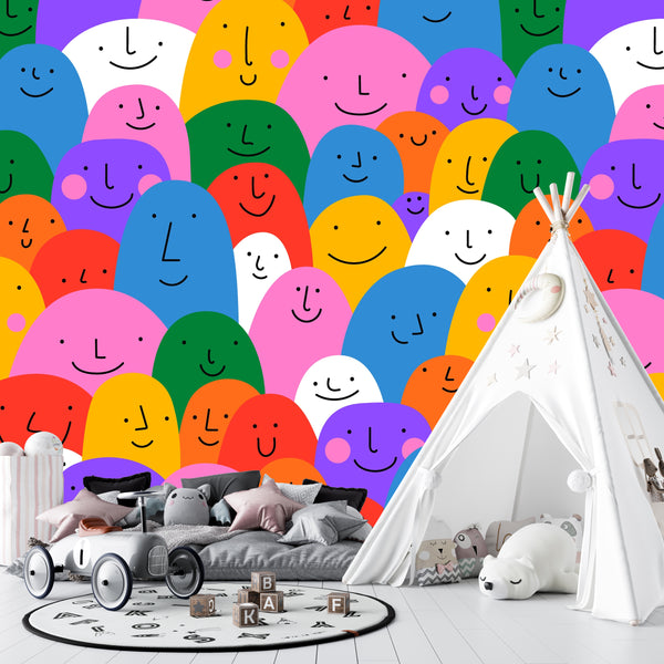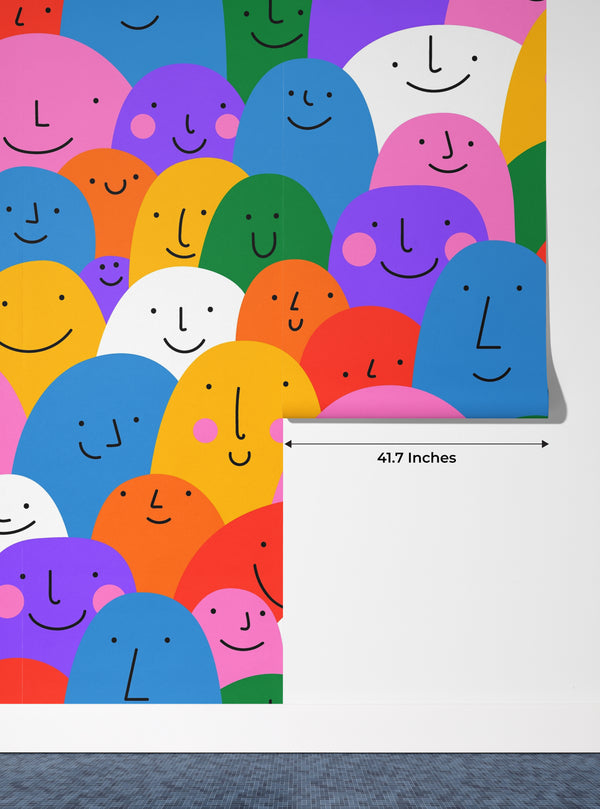 Colorful Cartoon People Wallpaper, Seamless Pattern Mural, Oversized Custom Size Wall Art, Non-Woven, Non-Adhesive, Modern Wall Paper, Removable