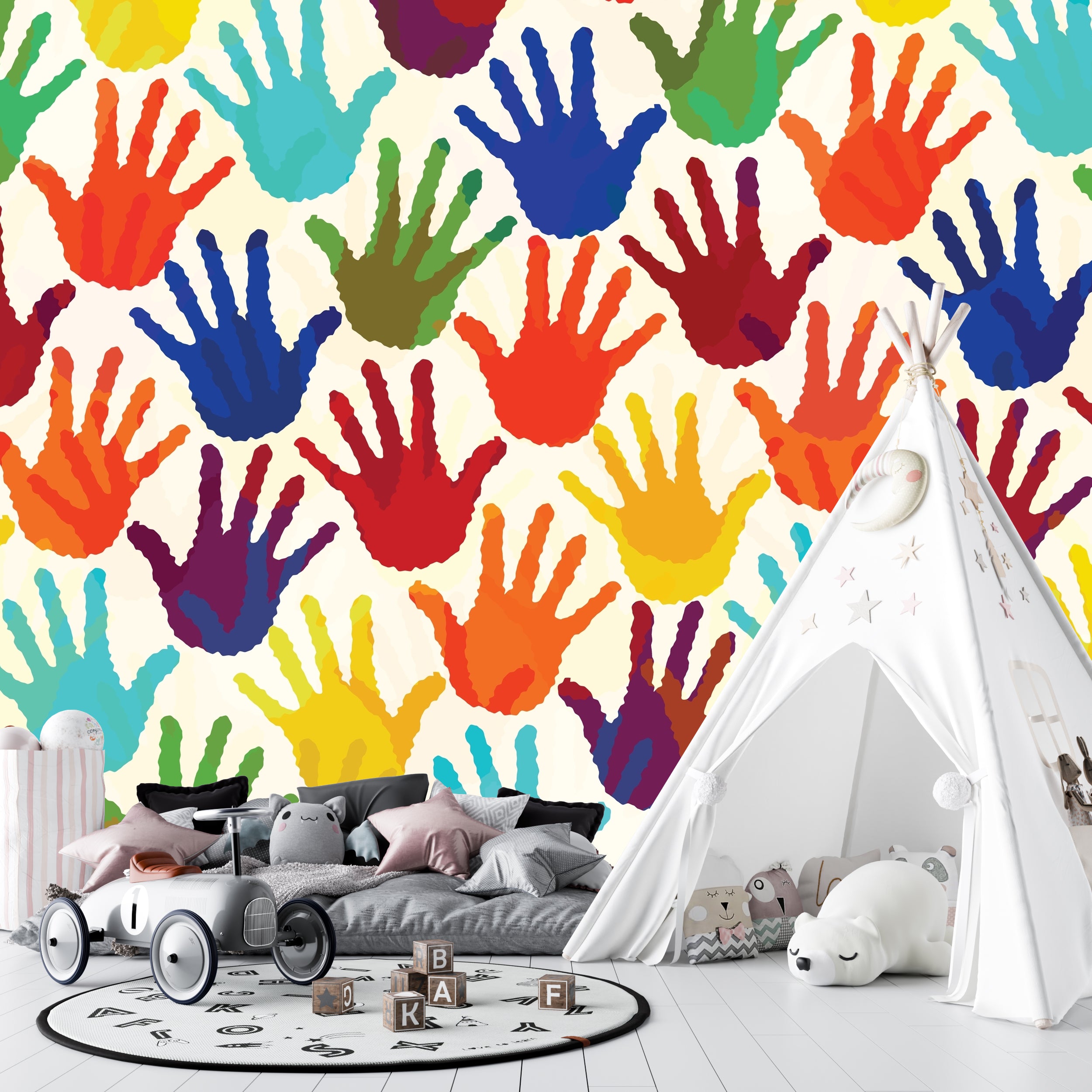 Colorful Hands Wallpaper, Seamless Mural, Oversized Custom Size Wall Art, Non-Woven, Non-Adhesive, Modern Wall Paper, Removable