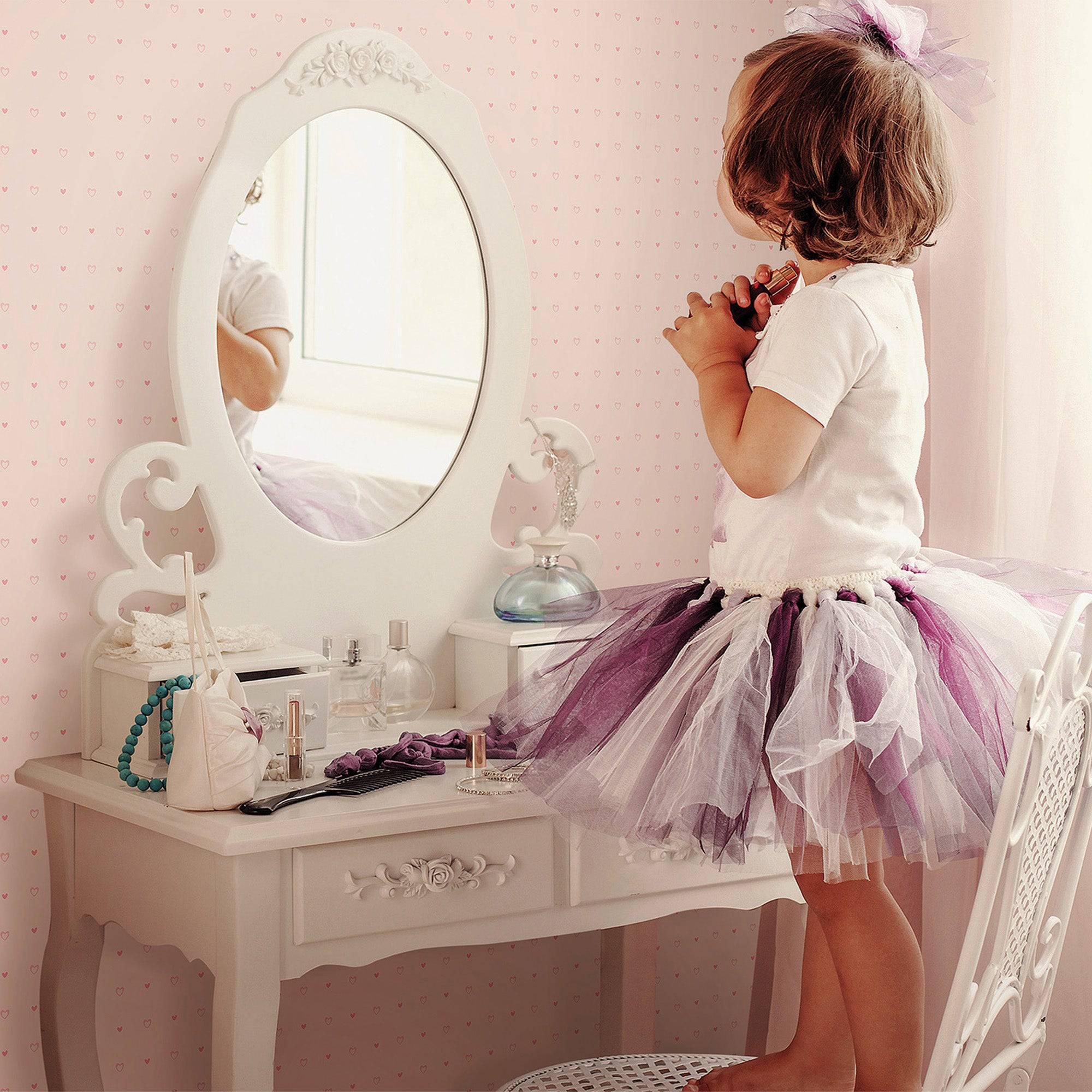 Hearts Girls' Room Textured Wallpaper, Light Pink , Girls Bedroom Wallpaper, Nursery Wallpaper, 114 sq ft, Kids Bathroom Wallpaper, Washable