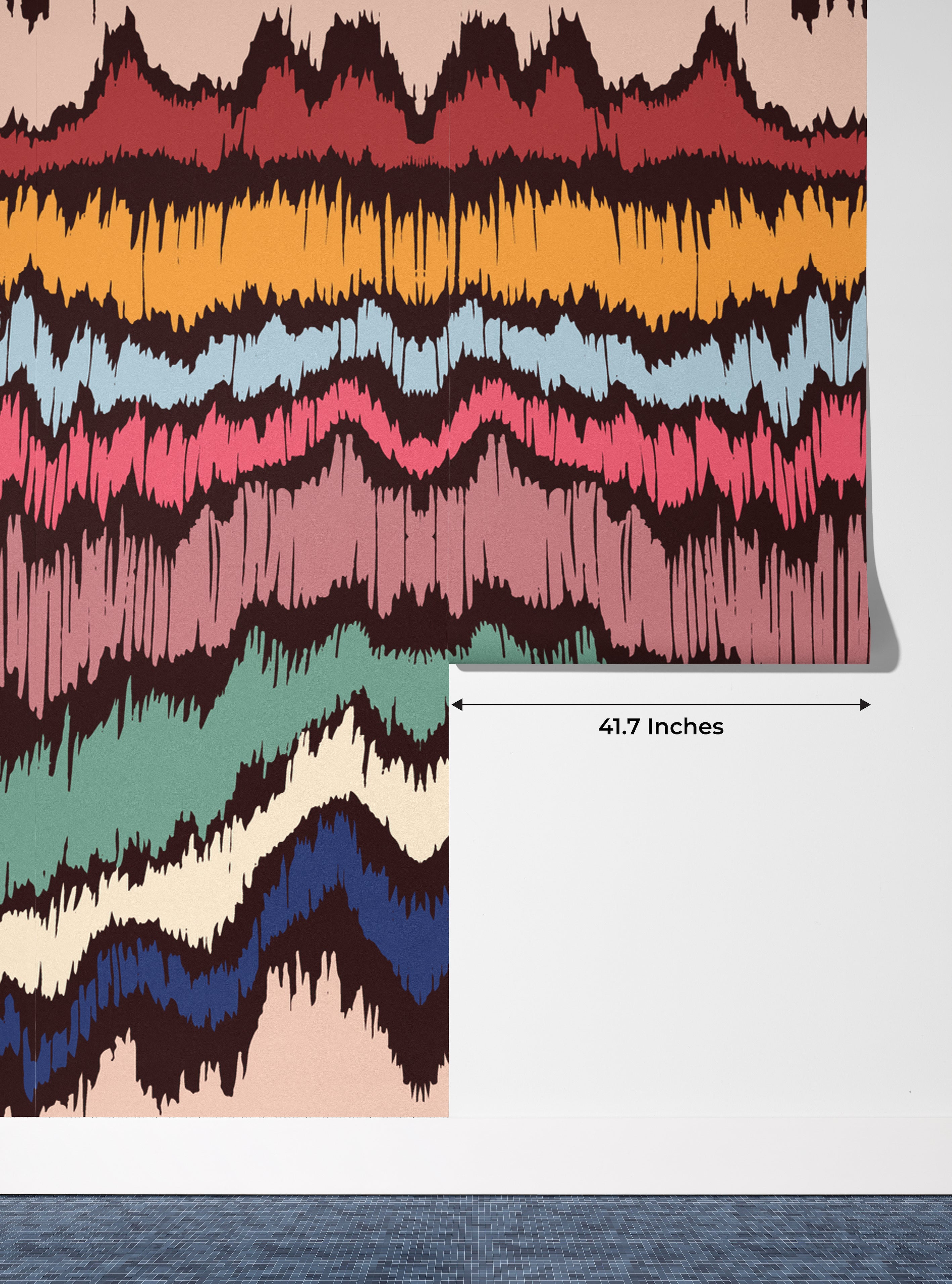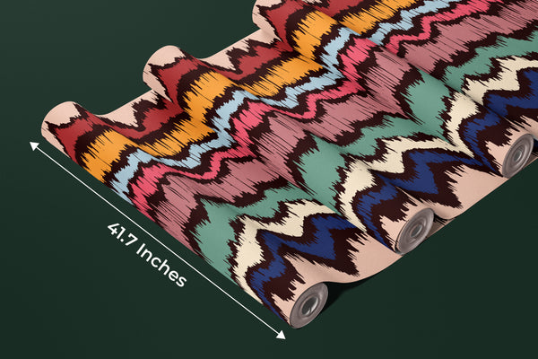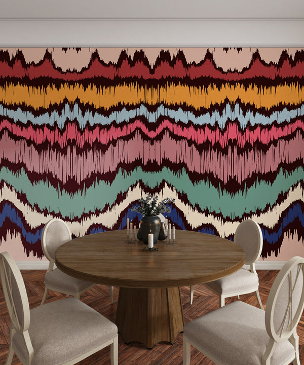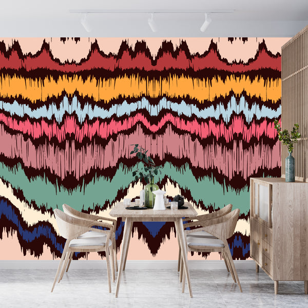 Colorful Wave Ikat Wallpaper, Seamless Pattern Mural, Oversized Custom Size Wall Art, Non-Woven, Non-Adhesive, Modern Wall Paper, Removable