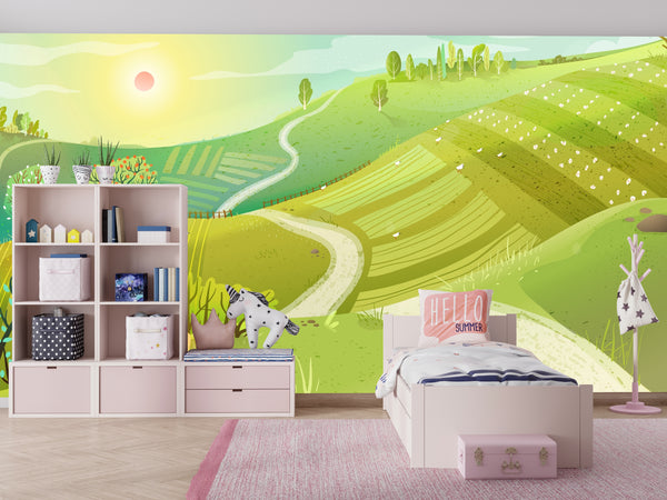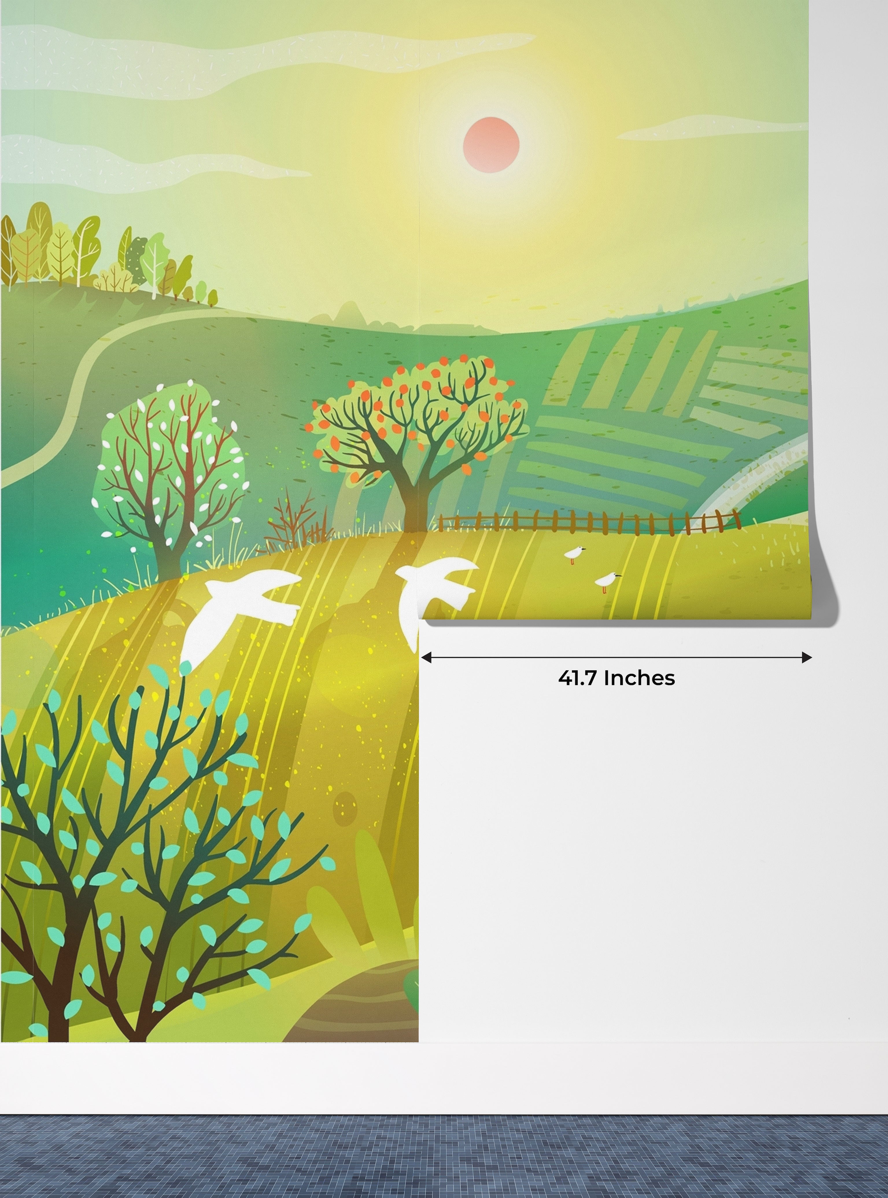 Countryside Wallpaper, Bright Nature Mural, Oversized Custom Size Wall Art, Non-Woven, Non-Adhesive, Modern Wall Paper, Removable