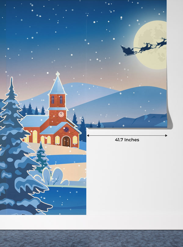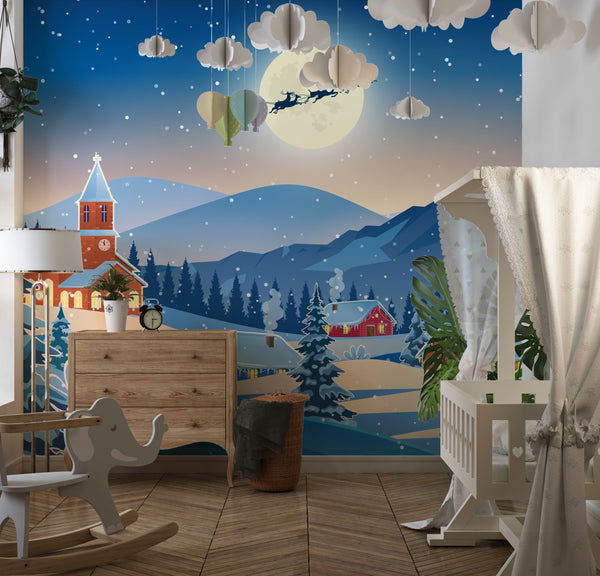 Christmas Wallpaper, Winter Landscape Mural, Oversized Custom Size Wall Art, Non-Woven, Non-Adhesive, Modern Wall Paper, Removable
