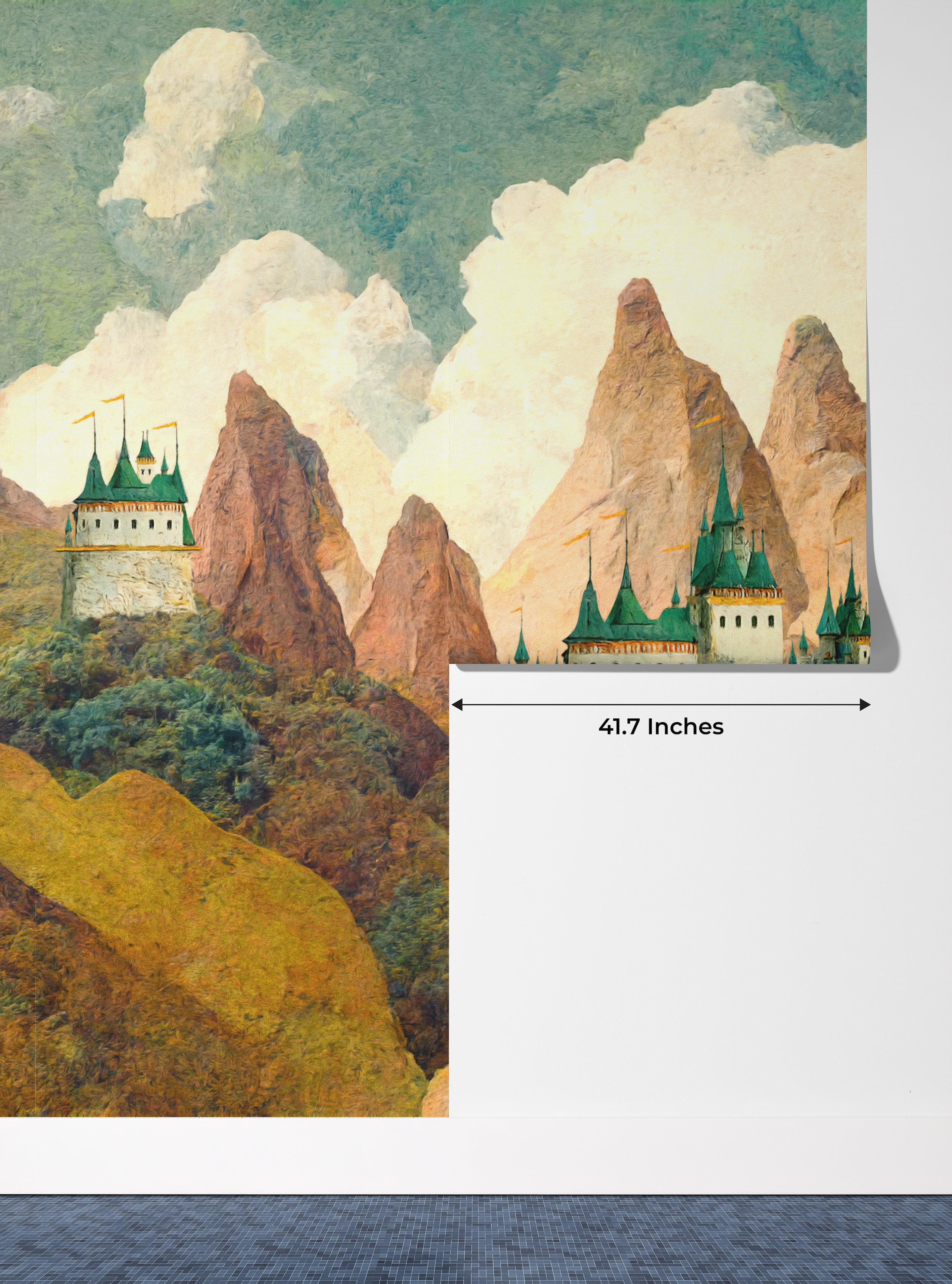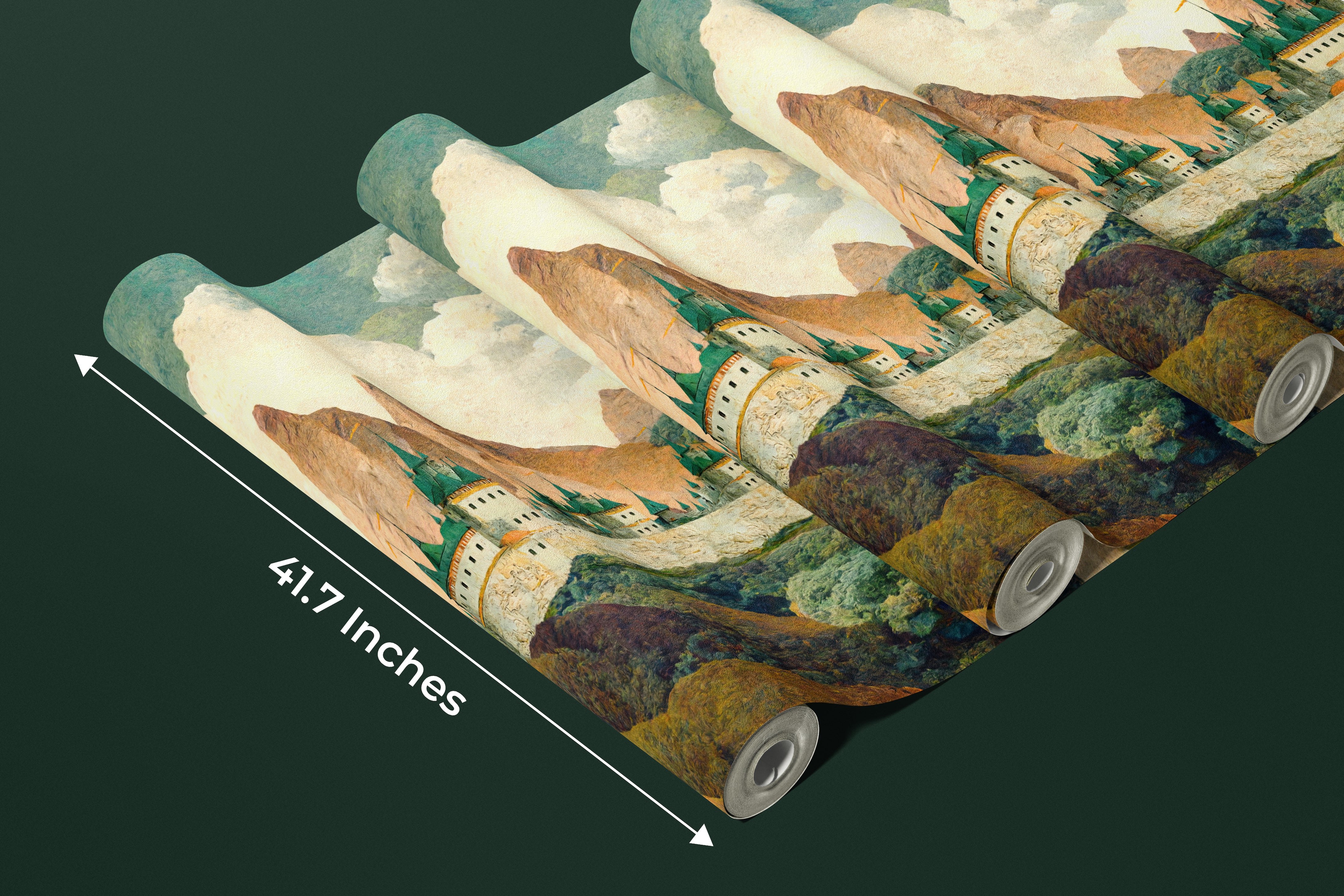 Castle Wallpaper, Mountain Landscape Mural, Oversized Custom Size Wall Art, Non-Woven, Non-Adhesive, Modern Wall Paper, Removable