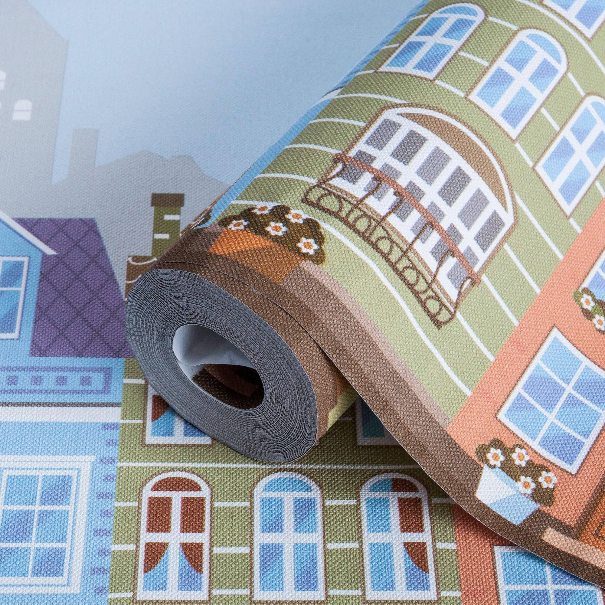 Kids Room Wallpaper, Textured Wallpaper, Apartments Cityscape Theme Boys Girls Bedroom Wall Paper, Nursery Wallcovering, 114 sq ft, Unisex