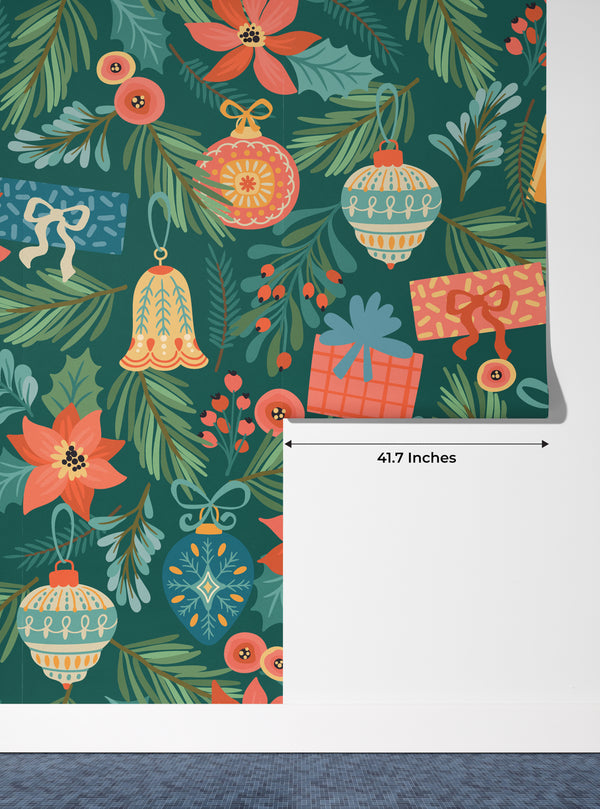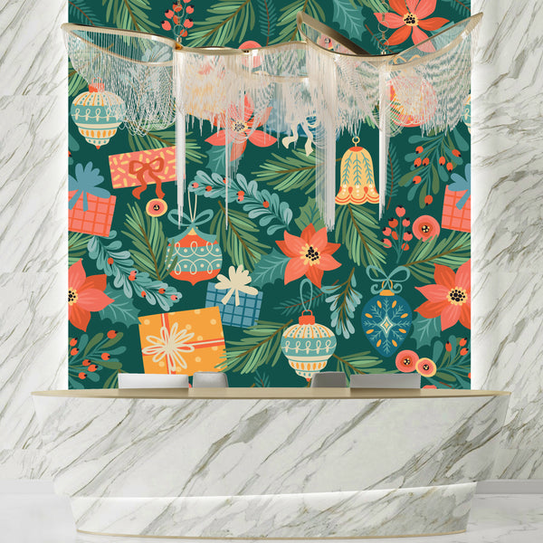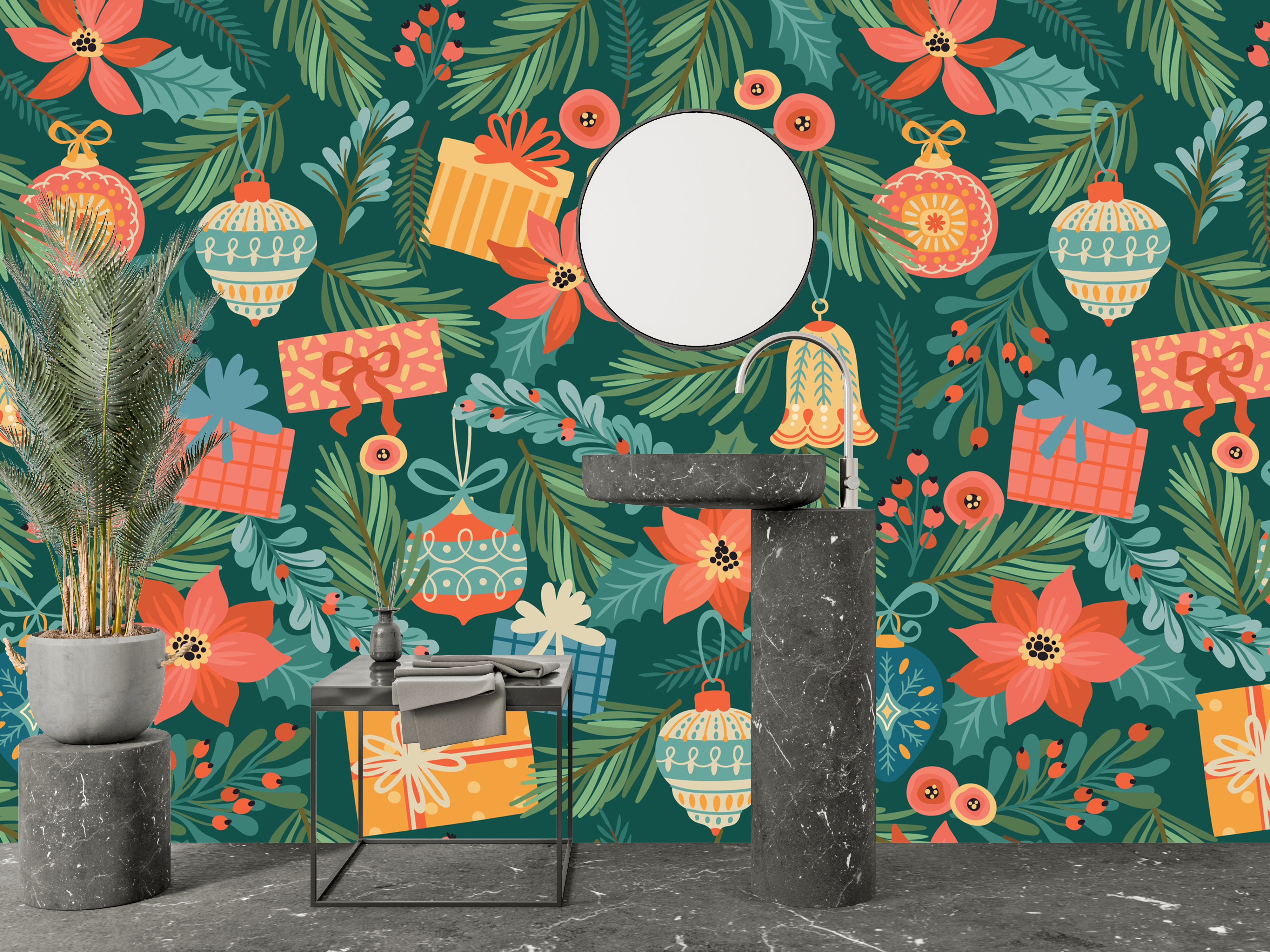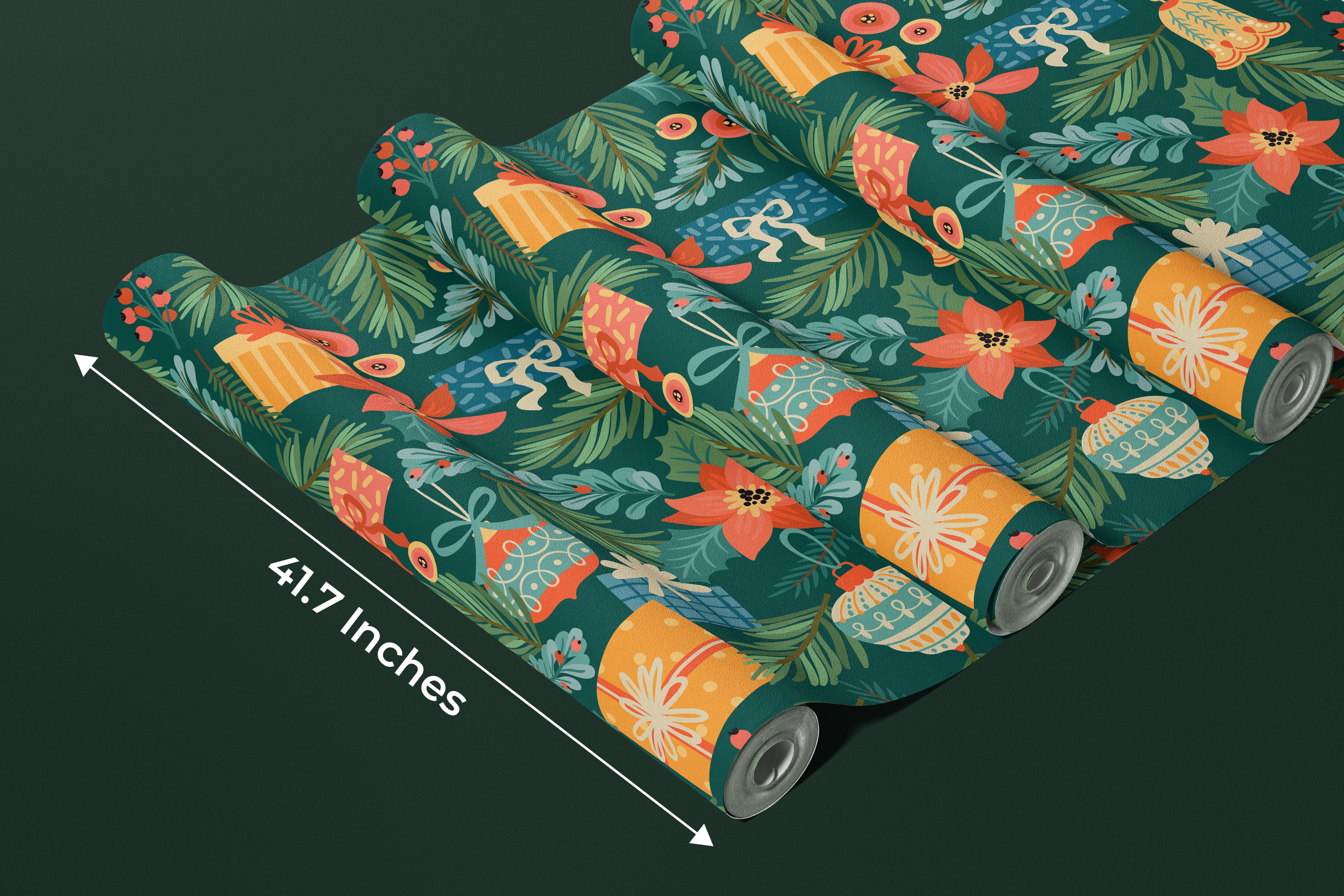 Noel Presents Wallpaper, Seamless Pattern Mural, Oversized Custom Size Wall Art, Non-Woven, Non-Adhesive, Modern Wall Paper, Removable