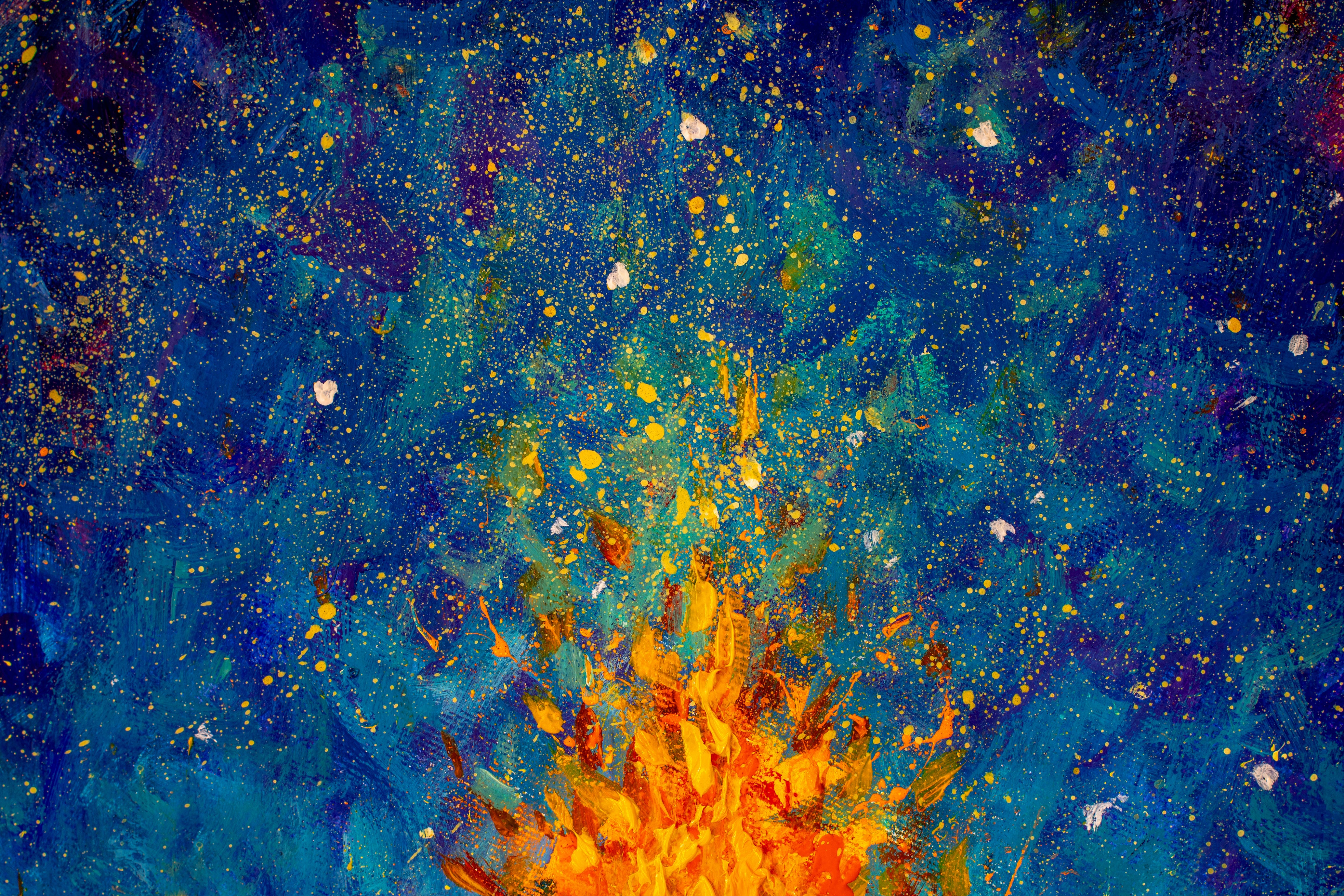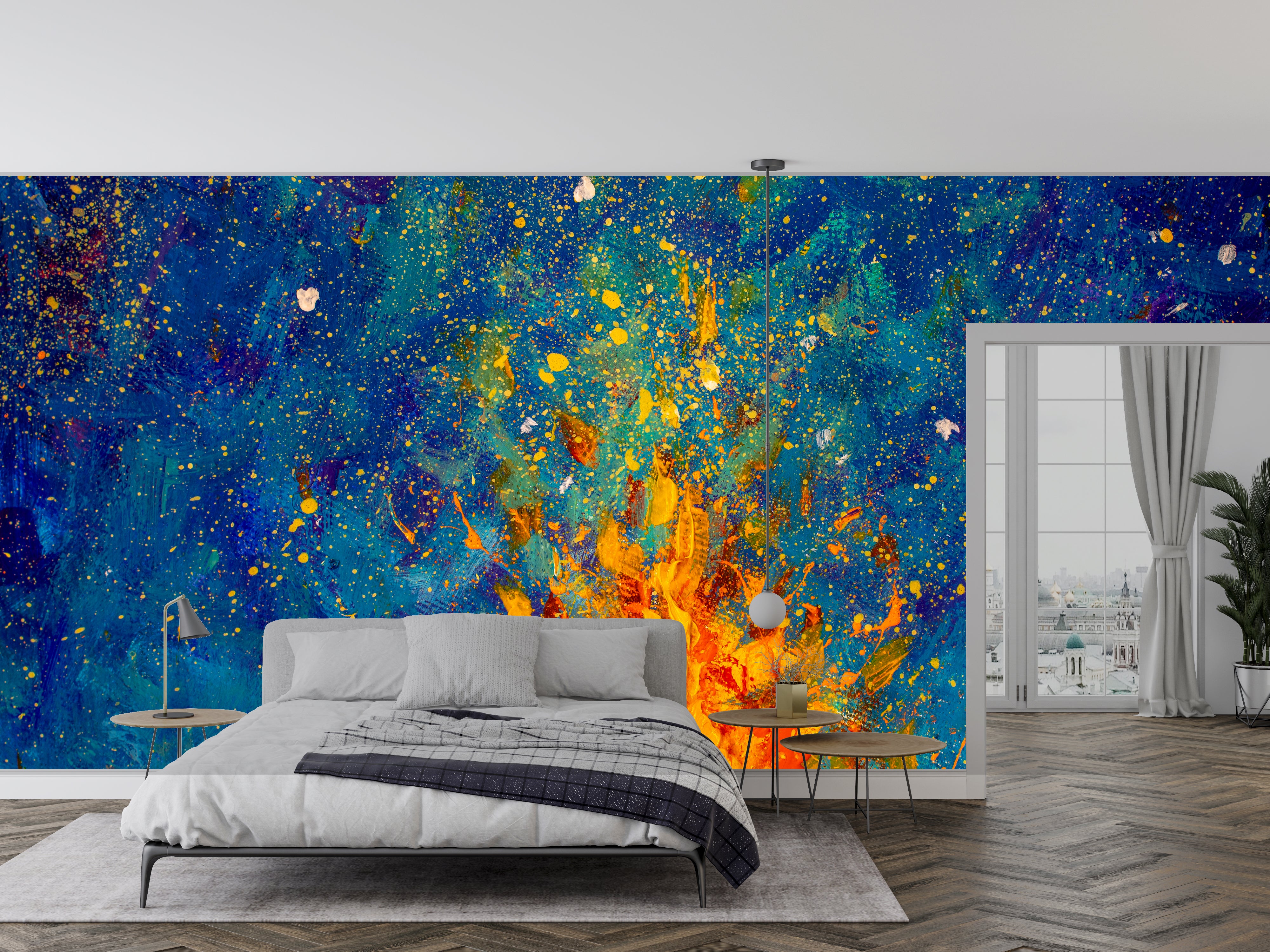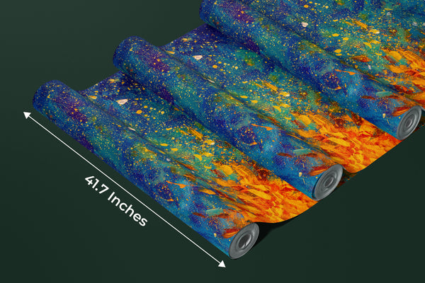 Flames of a Bonfire Wallpaper, Oil Painting Mural, Oversized Custom Size Wall Art, Non-Woven, Non-Adhesive, Modern Wall Paper, Removable
