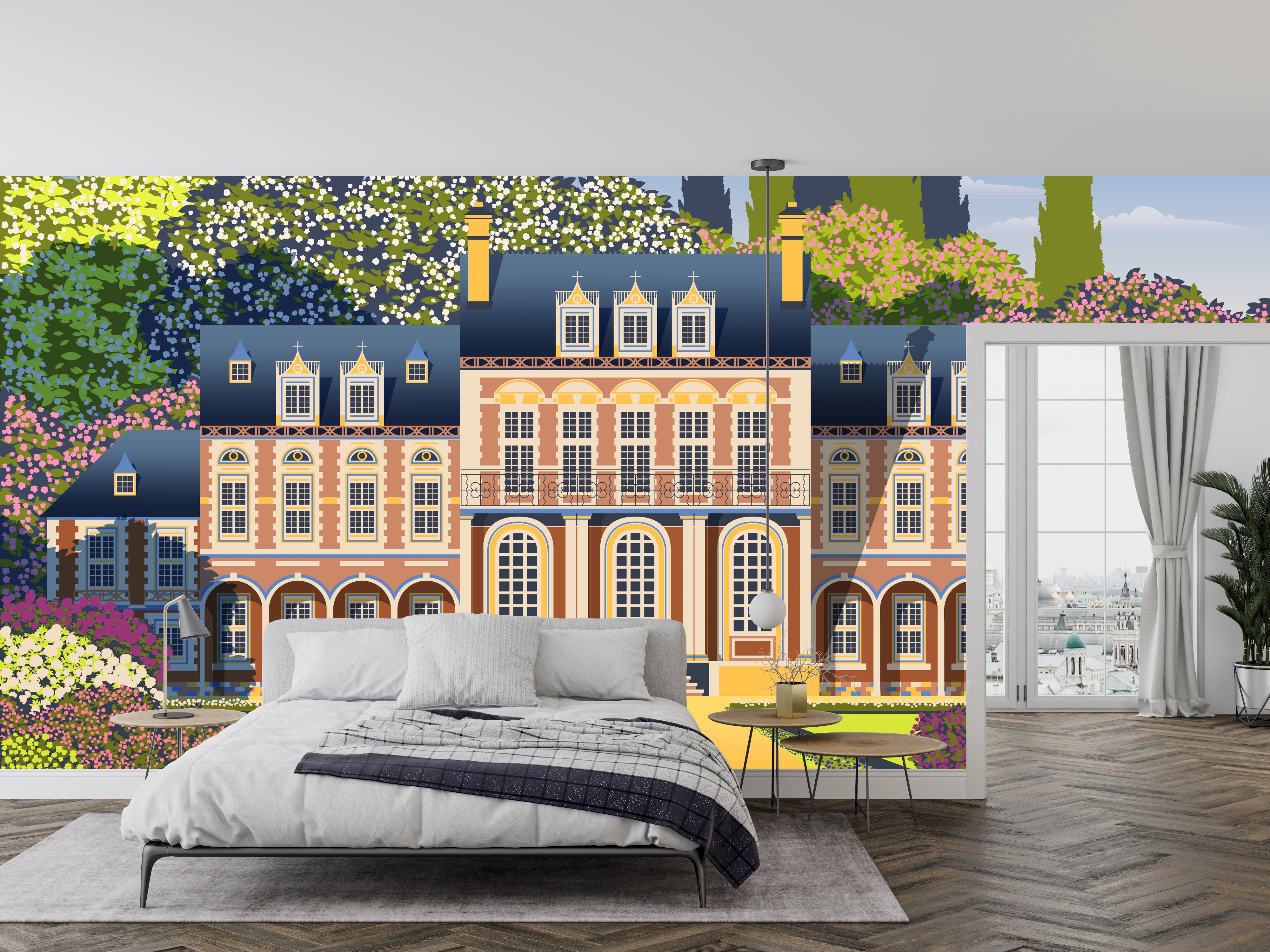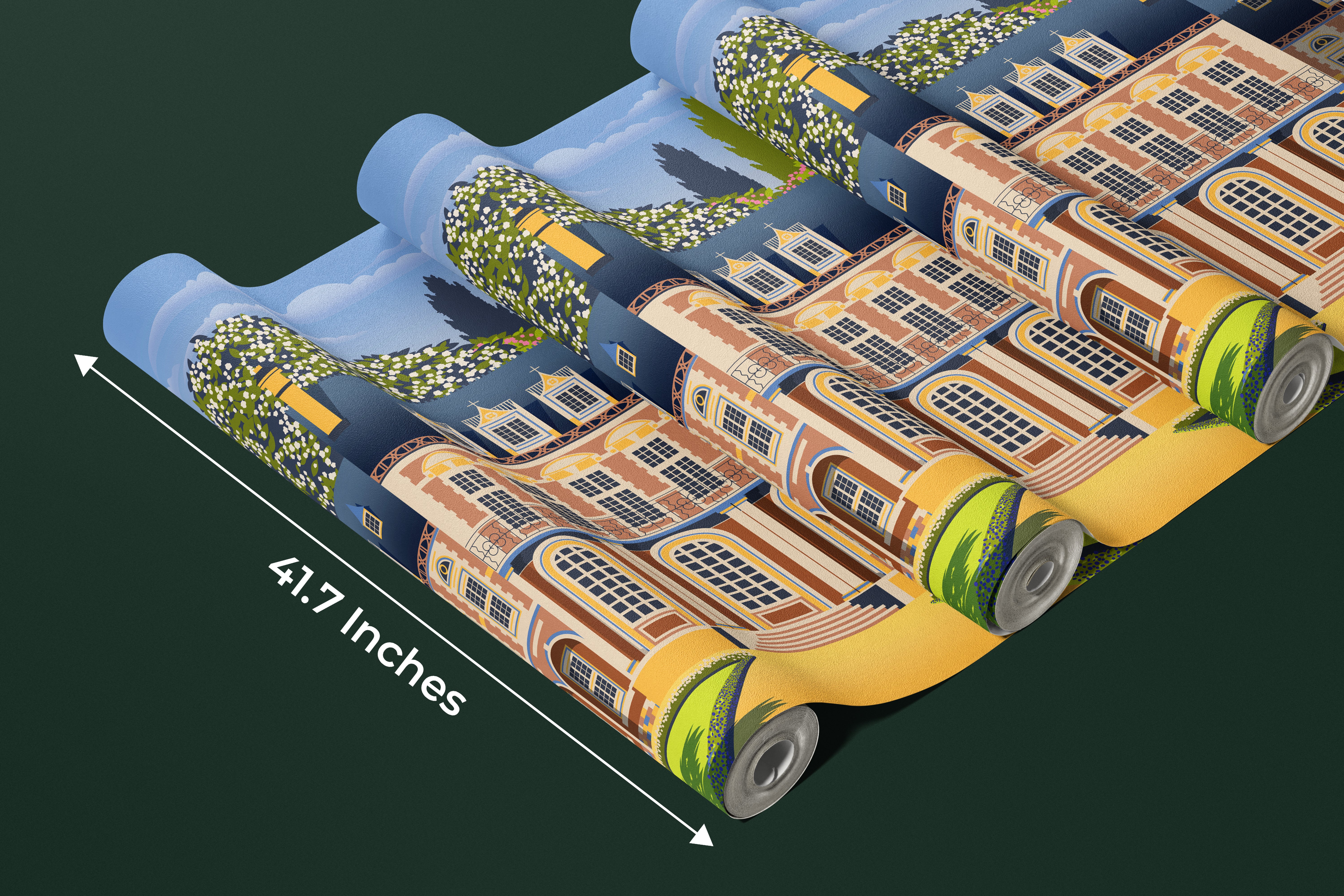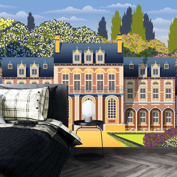Medieval Old Mansion Wallpaper, Garden Mural, Oversized Custom Size Wall Art, Non-Woven, Non-Adhesive, Modern Wall Paper, Removable