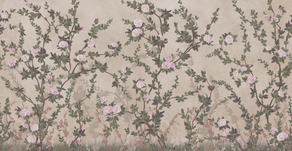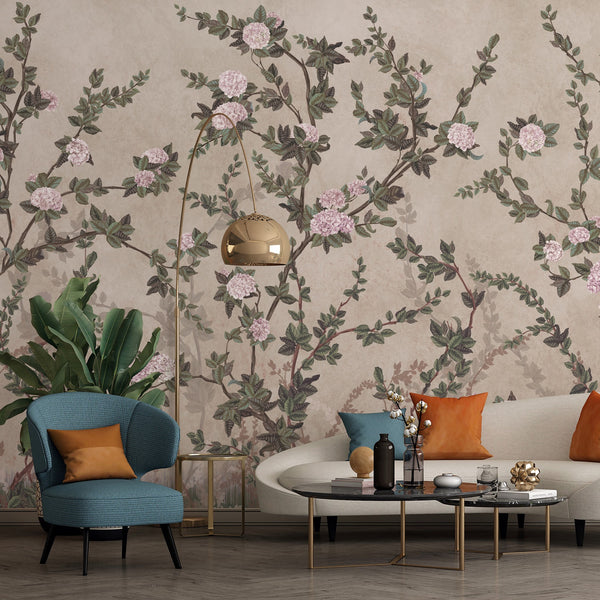 Peony Chinoiserie Blossom Wall Mural, Light Green Floral Bloom Wallpaper, Oversized Contemporary Custom Size Wall Art, Non-Woven, Non-Pasted, Removable