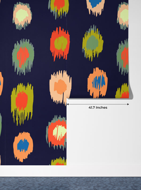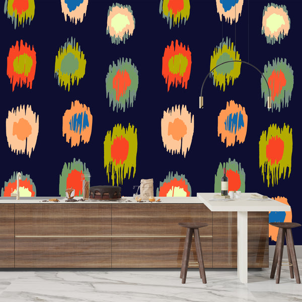 Ikat Polka Dot Wallpaper, Seamless Pattern Mural, Oversized Custom Size Wall Art, Non-Woven, Non-Adhesive, Modern Wall Paper, Removable