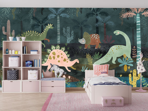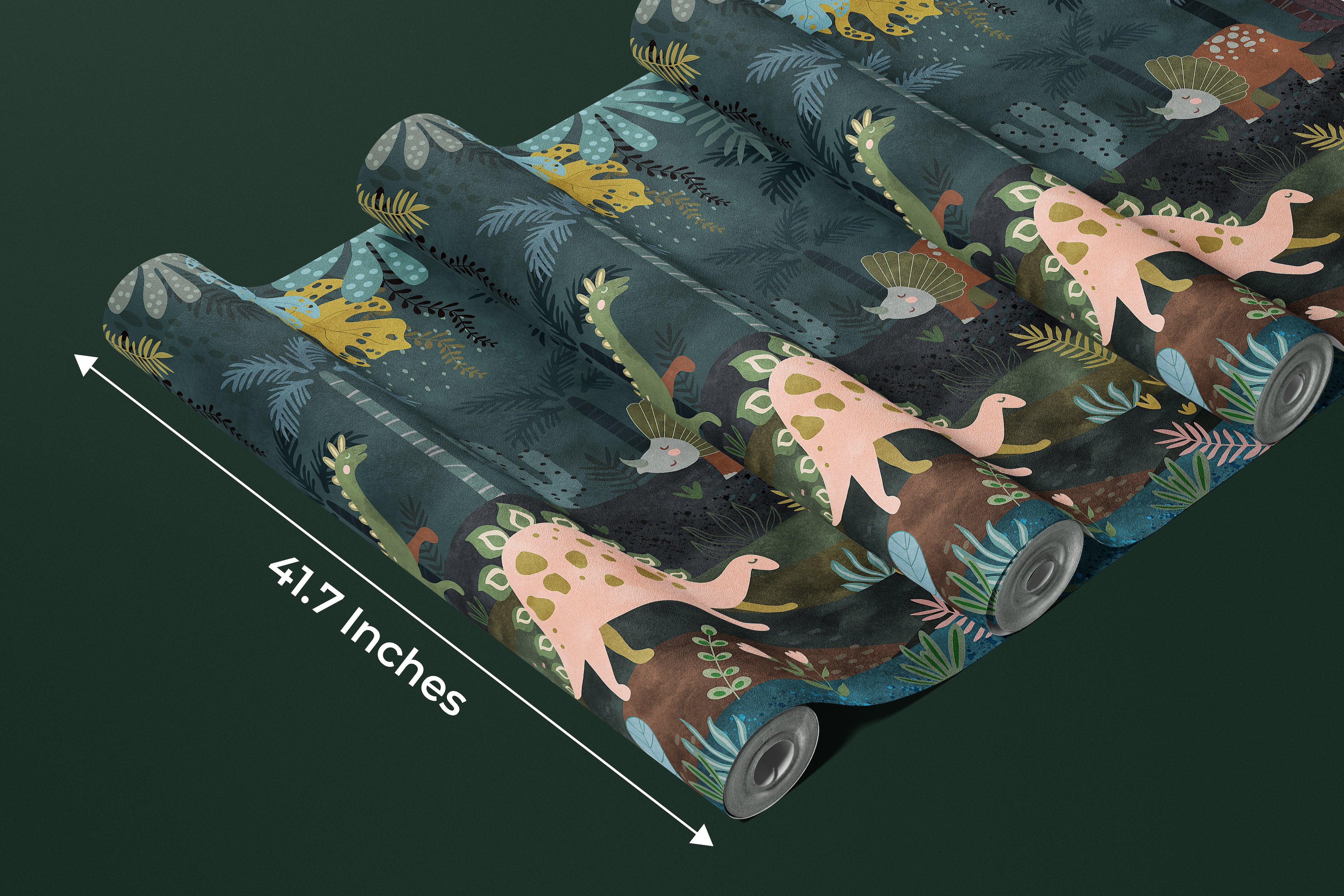 Dino World Wallpaper, Jungle Mural, Oversized Custom Size Wall Art, Non-Woven, Non-Adhesive, Modern Wall Paper, Removable
