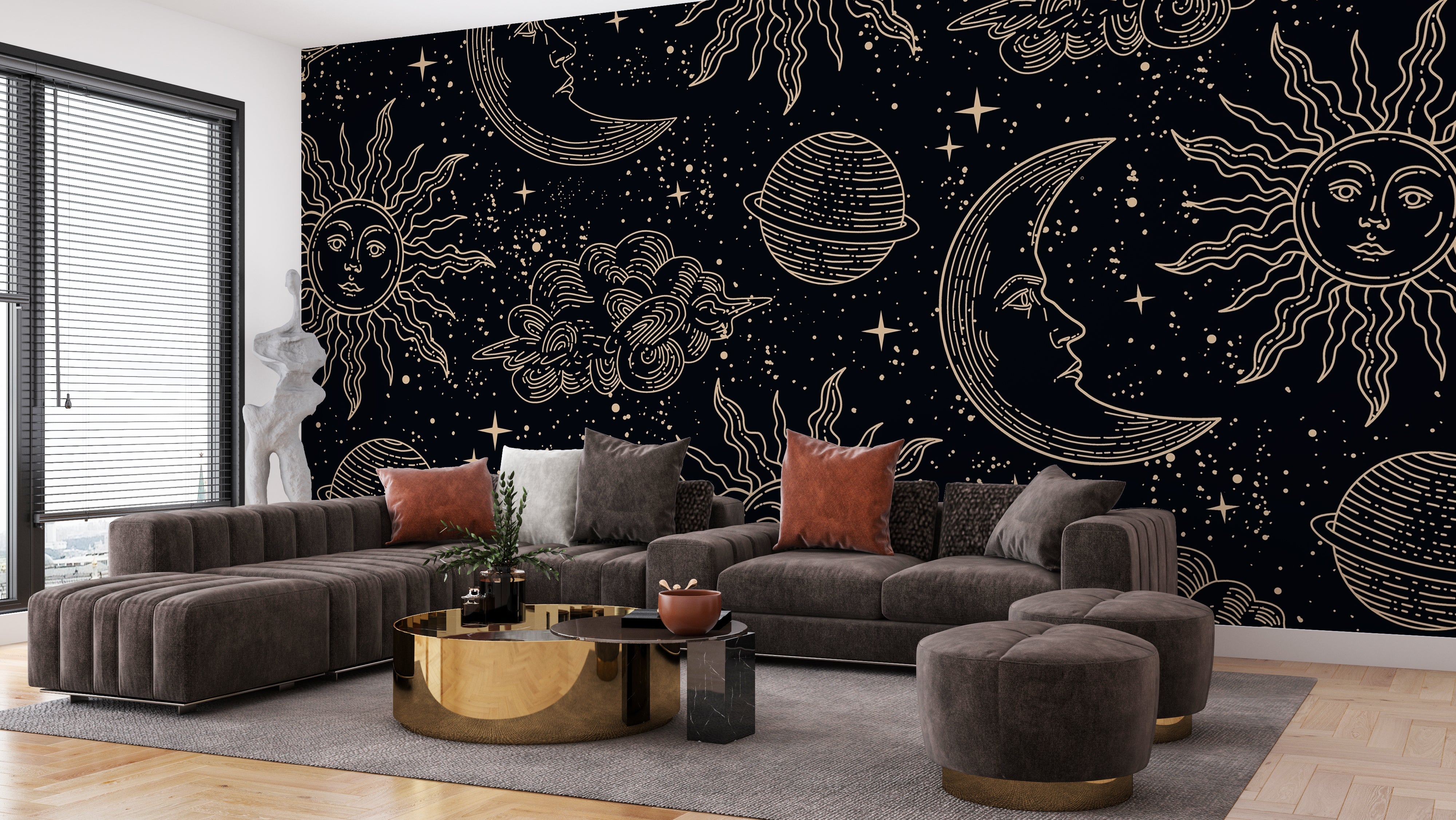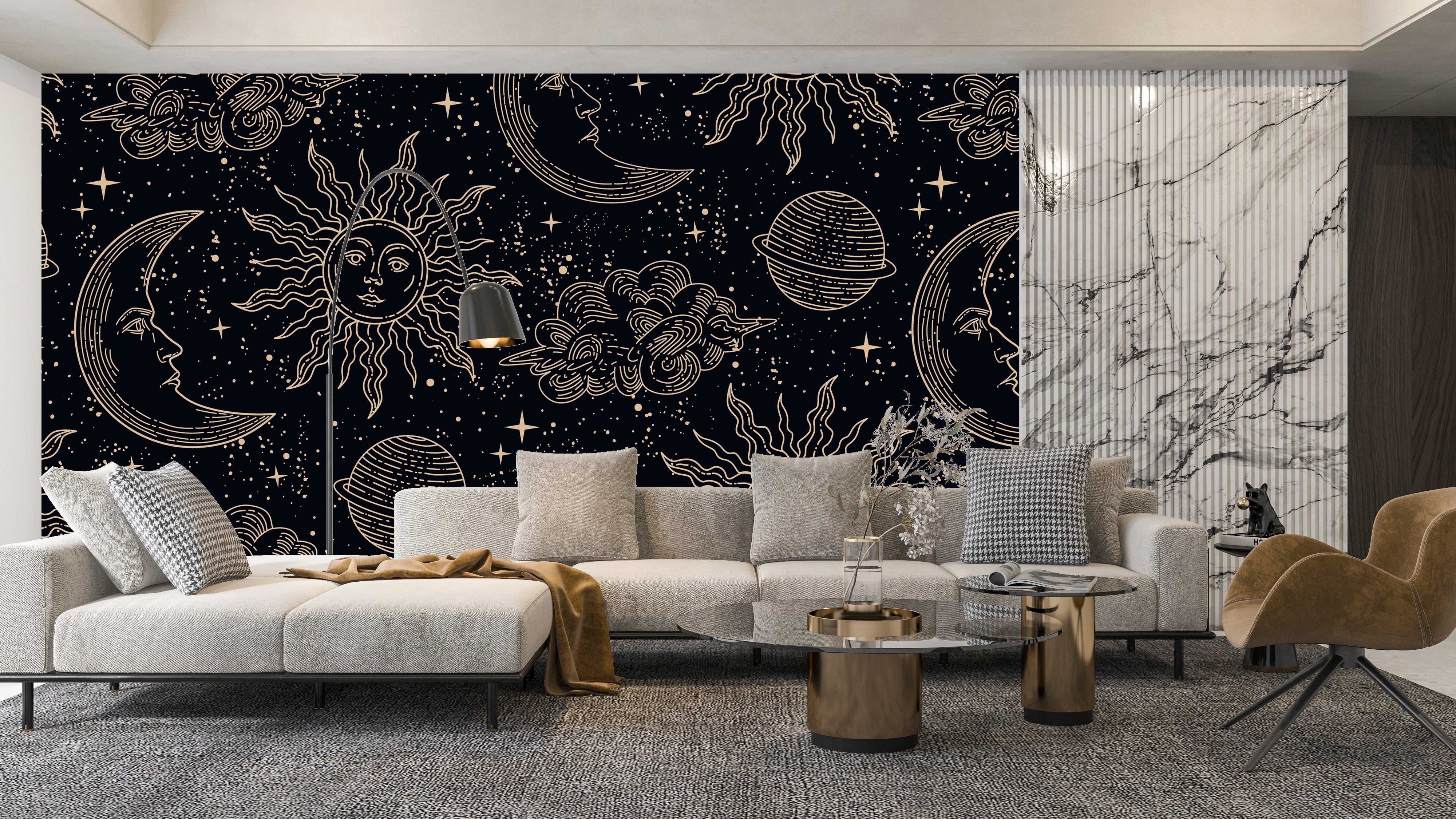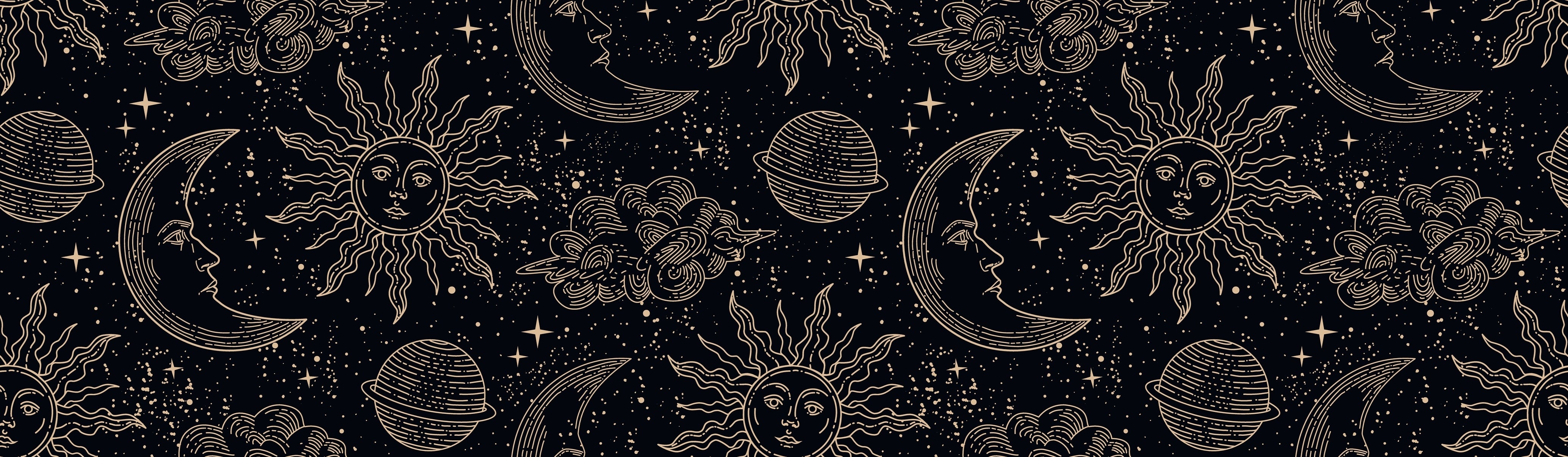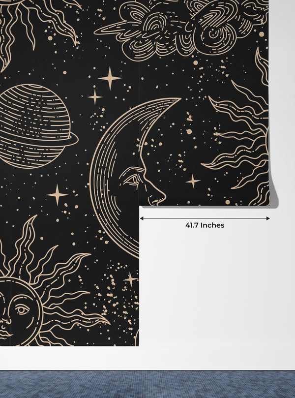 Magical Elements Wallpaper, Seamless Pattern Mural, Oversized Custom Size Wall Art, Non-Woven, Non-Adhesive, Modern Wall Paper, Removable
